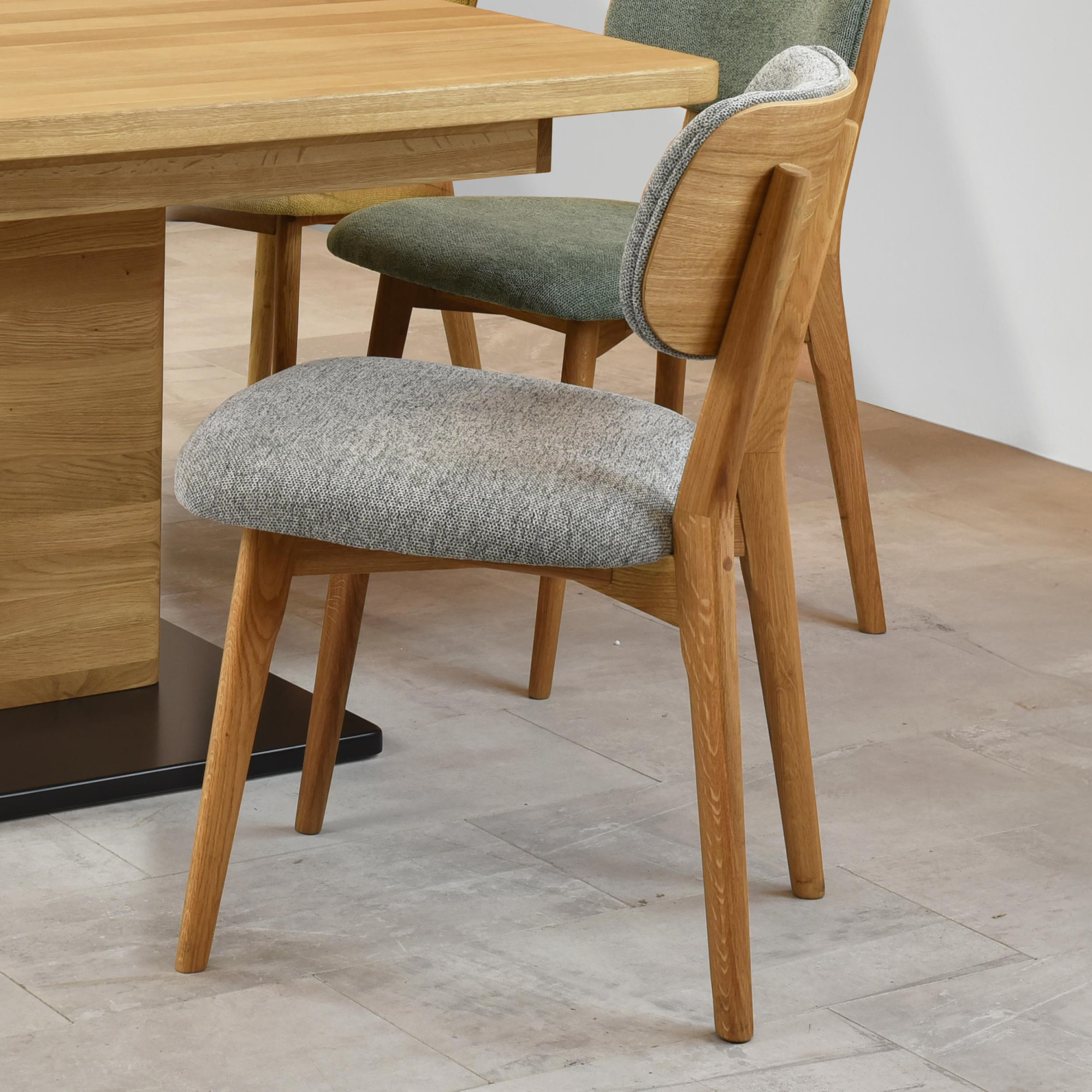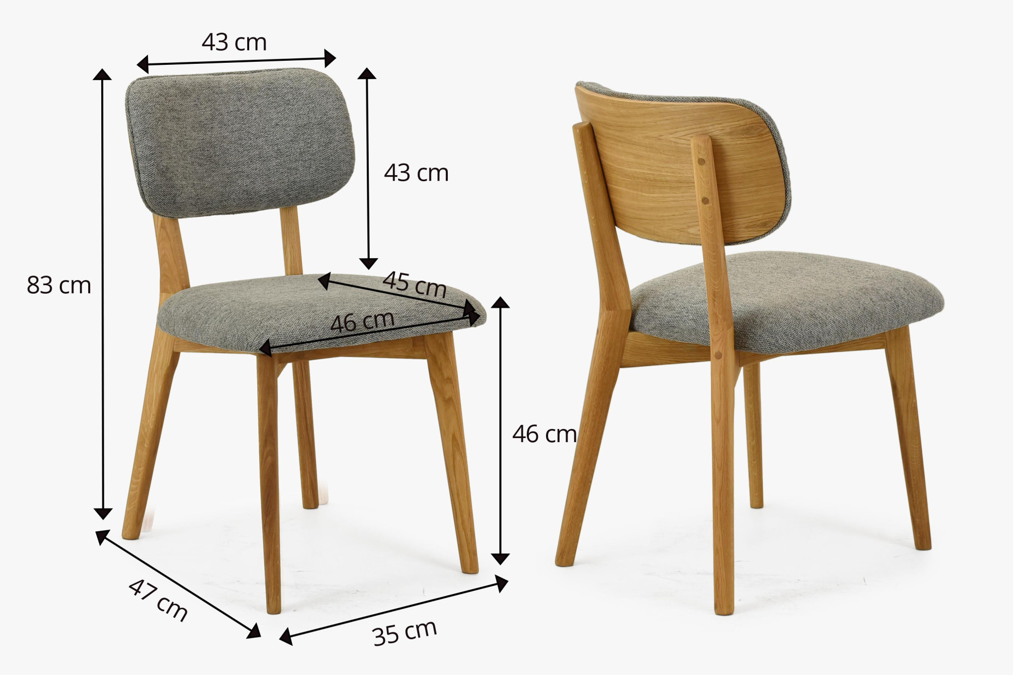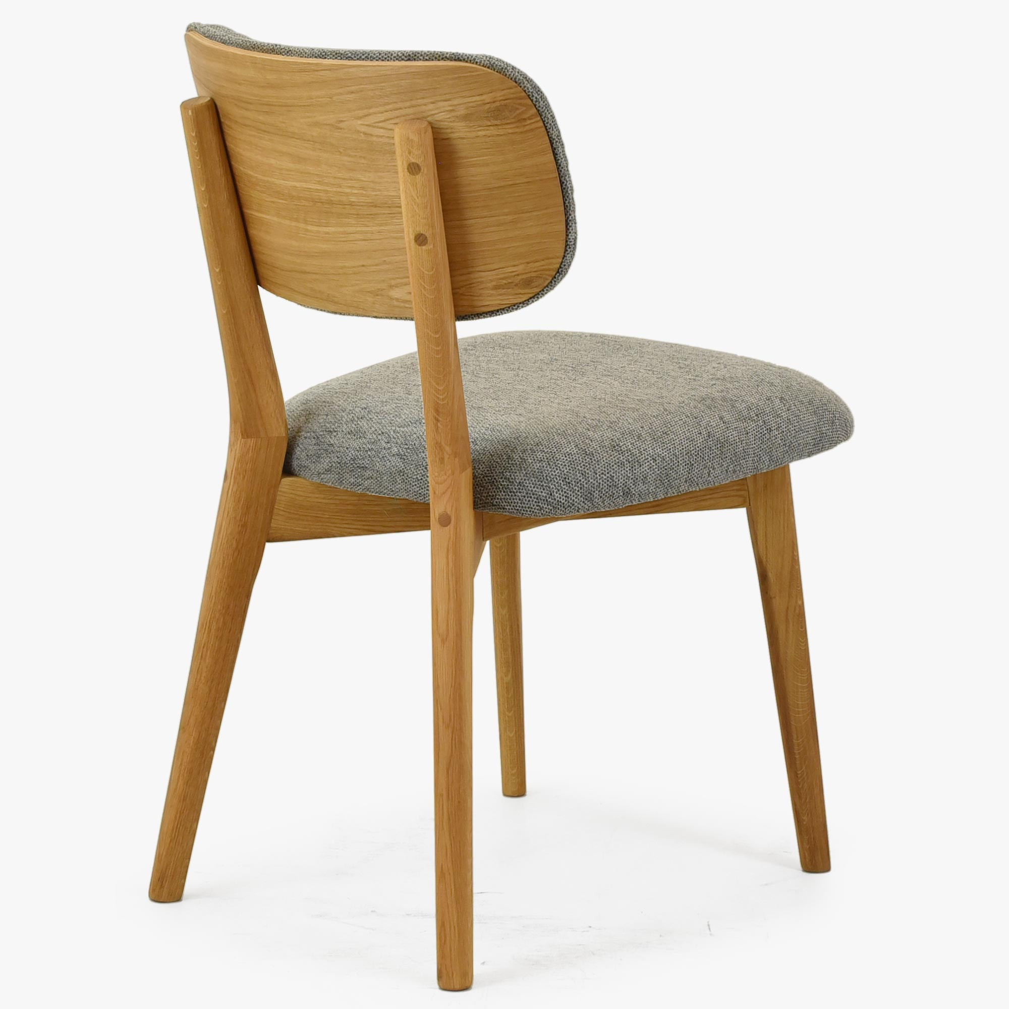 Eichen Polsterstuhl – Farbe Grau ist eine ausgezeichnete Wahl für Haushalte, die eine Kombination aus Komfort, Qualität und zeitlosem Design suchen. Dieser Stuhl ist aus massivem Eichenholz gefertigt, das für seine Widerstandsfähigkeit und lange Lebensdauer bekannt ist. Die elegante graue Polsterung, die Sitzfläche und Rückenlehne bedeckt, besteht aus hochwertigem Stoff mit der EasyClean-Funktion – die meisten Flecken lassen sich einfach nur mit Wasser entfernen, was diesen Stuhl besonders praktisch für den täglichen Gebrauch macht. Die Rückseite des Stuhls ist aus naturbelassenem Eichenholz gefertigt, das mit naturöl behandelt wurde, um dessen natürliche Textur und Schönheit hervorzuheben.
