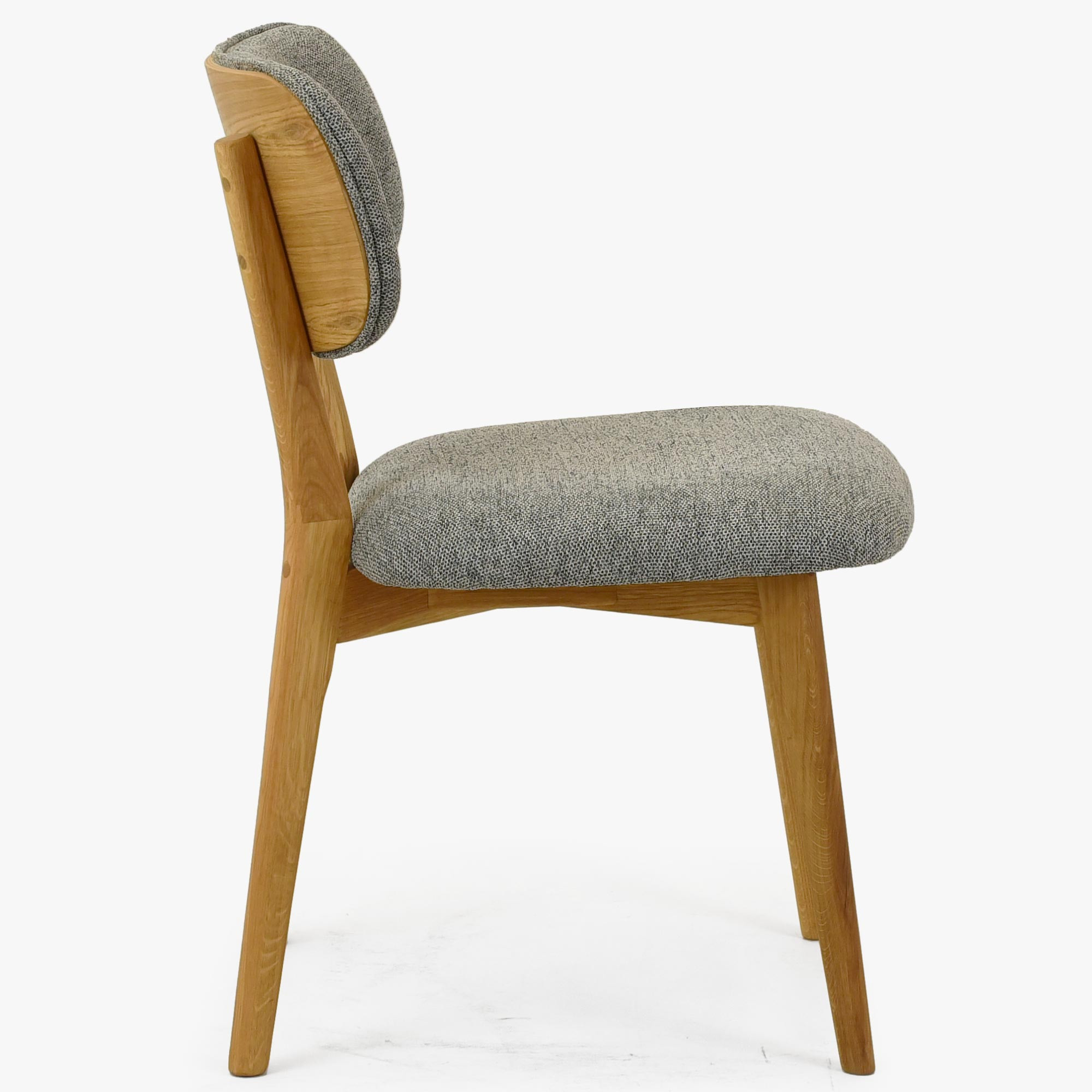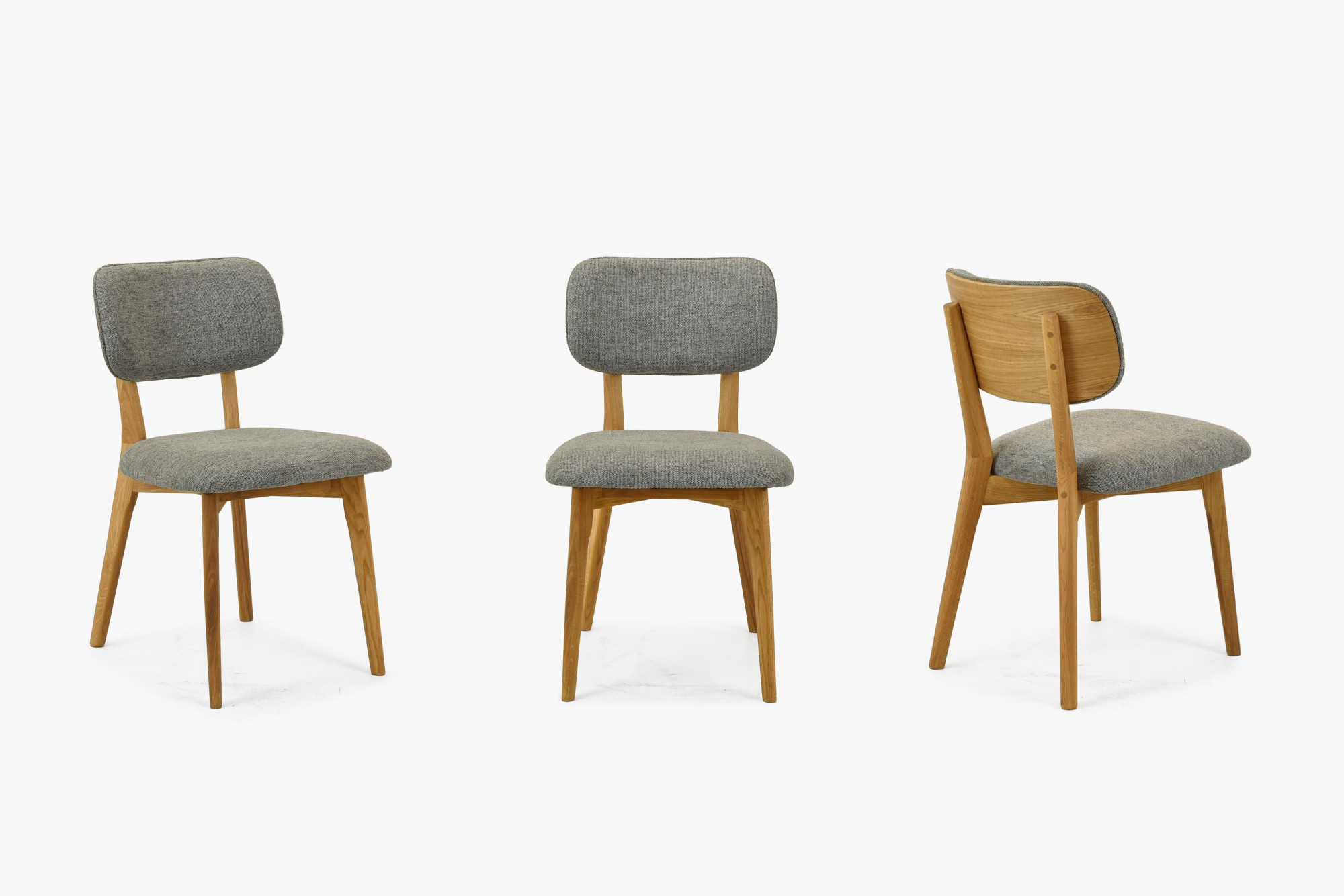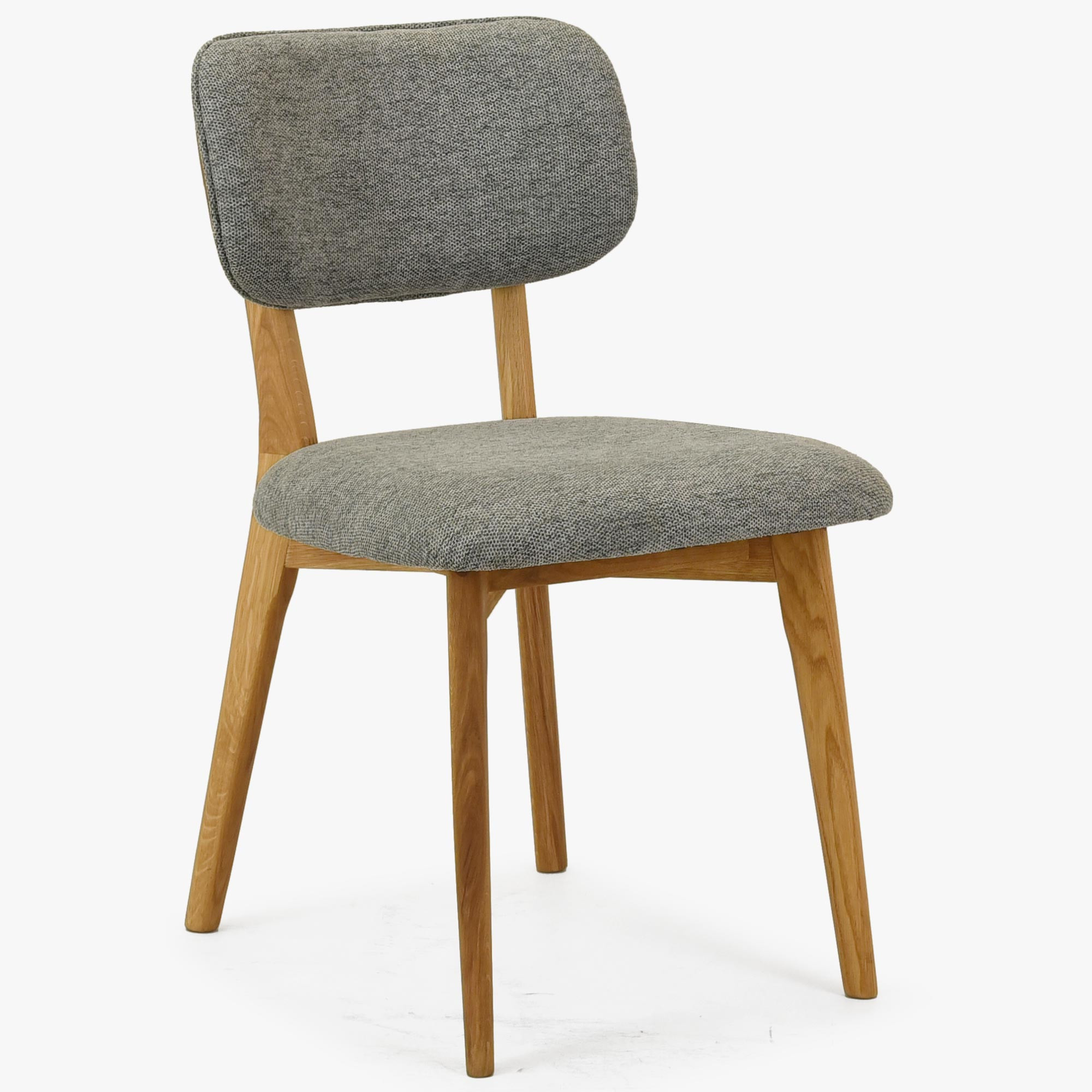 Eichen Polsterstuhl – Farbe Grau ist eine ausgezeichnete Wahl für Haushalte, die eine Kombination aus Komfort, Qualität und zeitlosem Design suchen. Dieser Stuhl ist aus massivem Eichenholz gefertigt, das für seine Widerstandsfähigkeit und lange Lebensdauer bekannt ist. Die elegante graue Polsterung, die Sitzfläche und Rückenlehne bedeckt, besteht aus hochwertigem Stoff mit der EasyClean-Funktion – die meisten Flecken lassen sich einfach nur mit Wasser entfernen, was diesen Stuhl besonders praktisch für den täglichen Gebrauch macht. Die Rückseite des Stuhls ist aus naturbelassenem Eichenholz gefertigt, das mit naturöl behandelt wurde, um dessen natürliche Textur und Schönheit hervorzuheben.