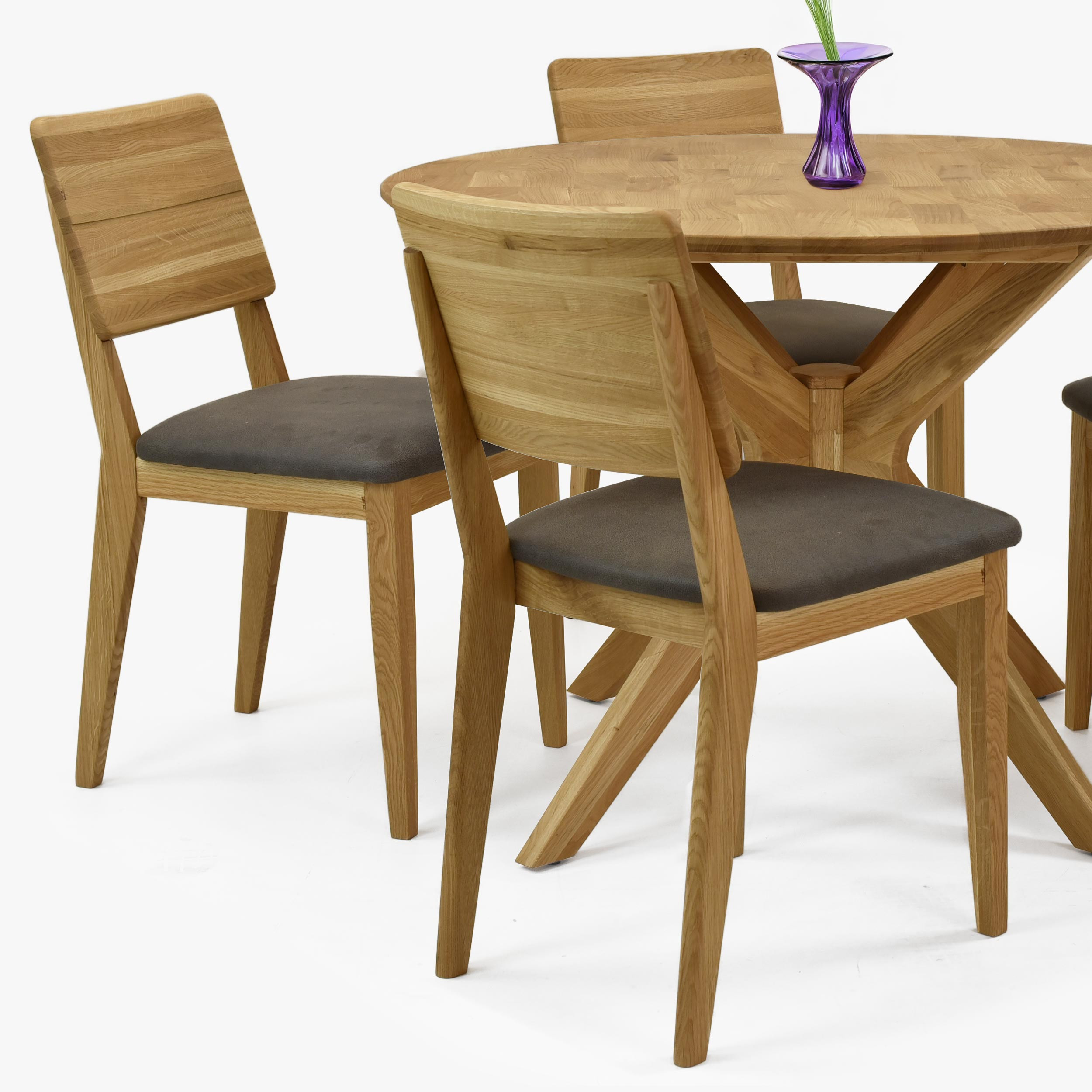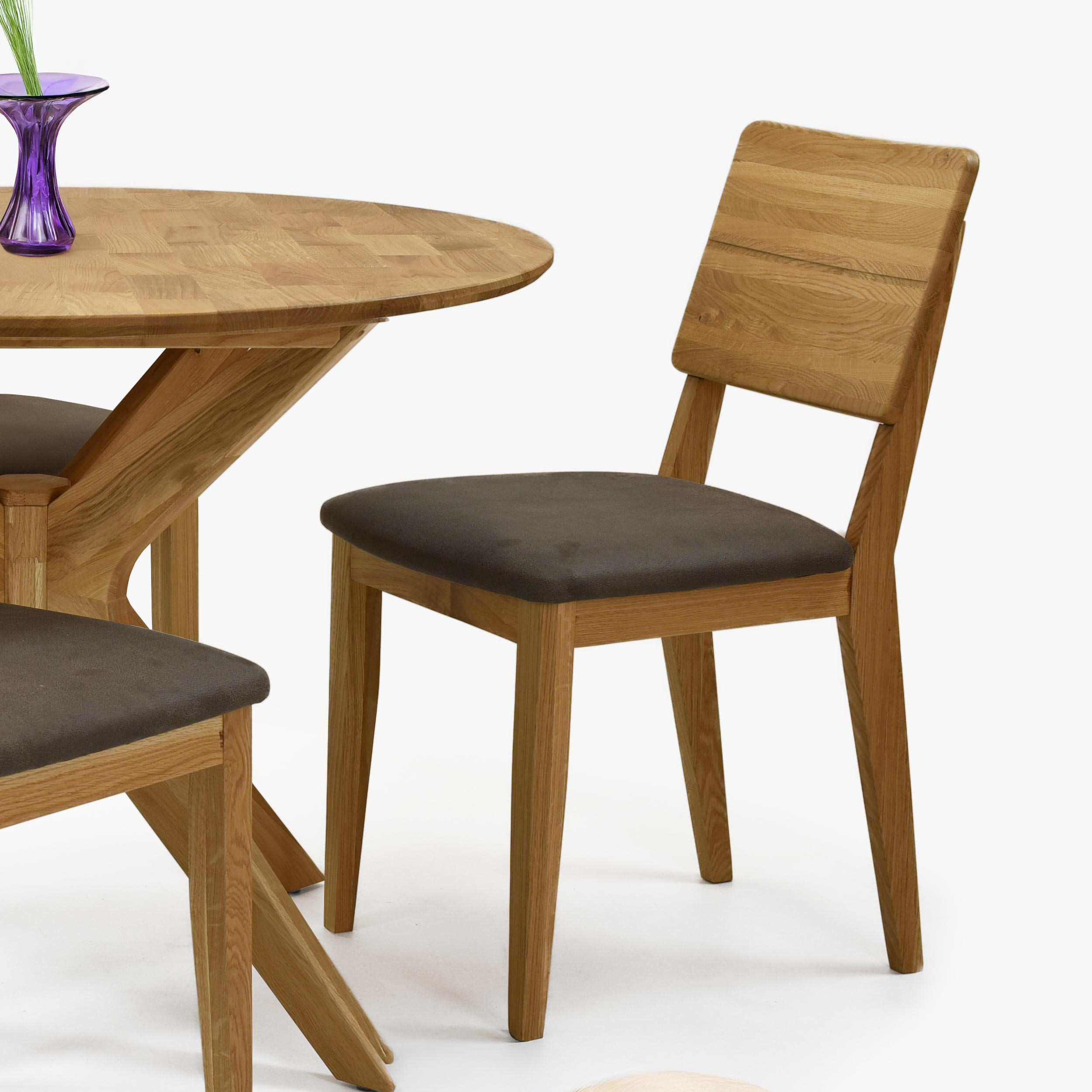 Eichen-Esstischstuhl mit gepolstertem Sitz in Braun-Grau