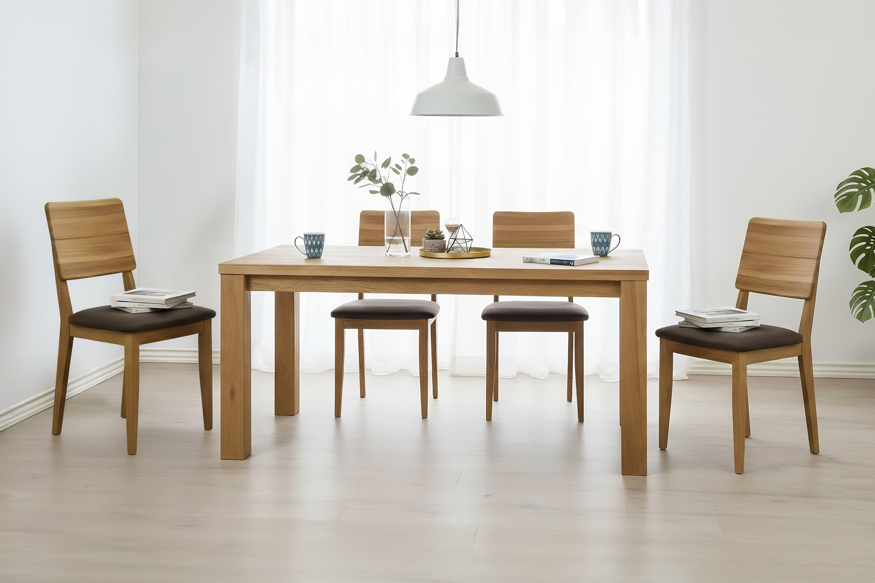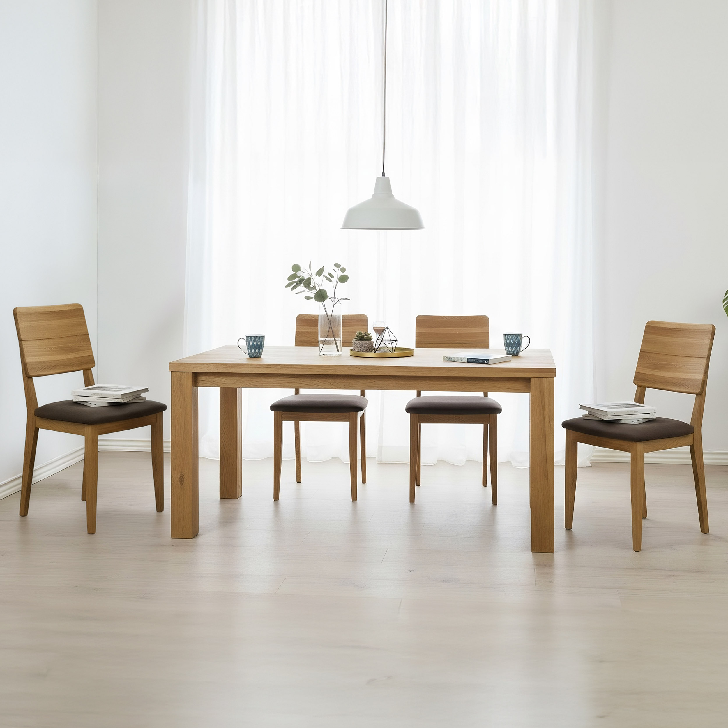 Dank des FSC-Zertifikats haben Sie die Sicherheit, dass das Holz aus verantwortungsvoll bewirtschafteten Wäldern stammt. Dieser Eichen-Esstischstuhl ist eine hervorragende Wahl für Haushalte, die preiswerten Möbel direkt vom Hersteller suchen und gleichzeitig die Vorteile natürlicher Materialien schätzen. Der Stuhl lässt sich leicht mit anderen Stücken aus Eichenholz für ein harmonisches Interieur kombinieren.