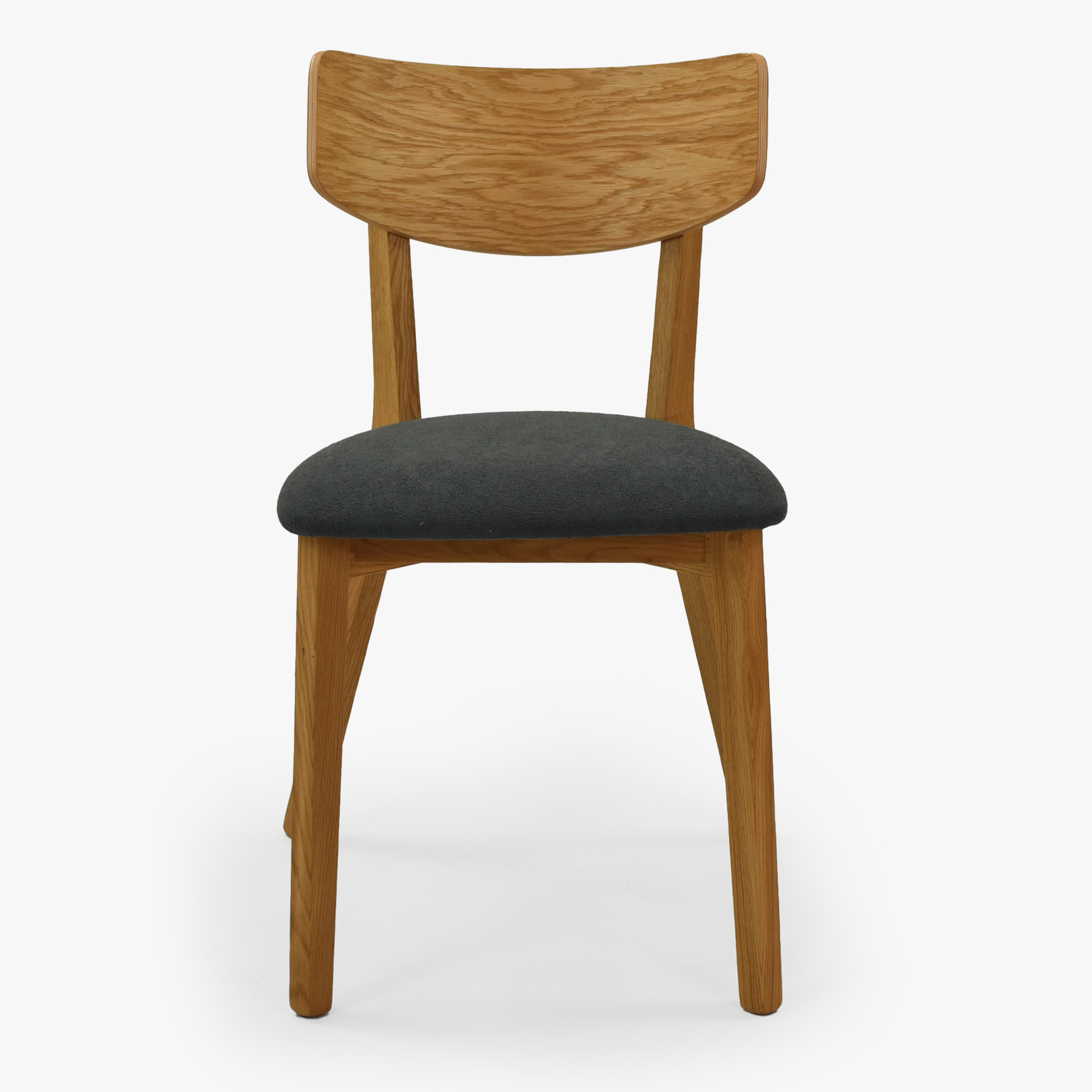 Eichenstuhl mit dunkelgrauer Bouclé Polsterung Naturholz