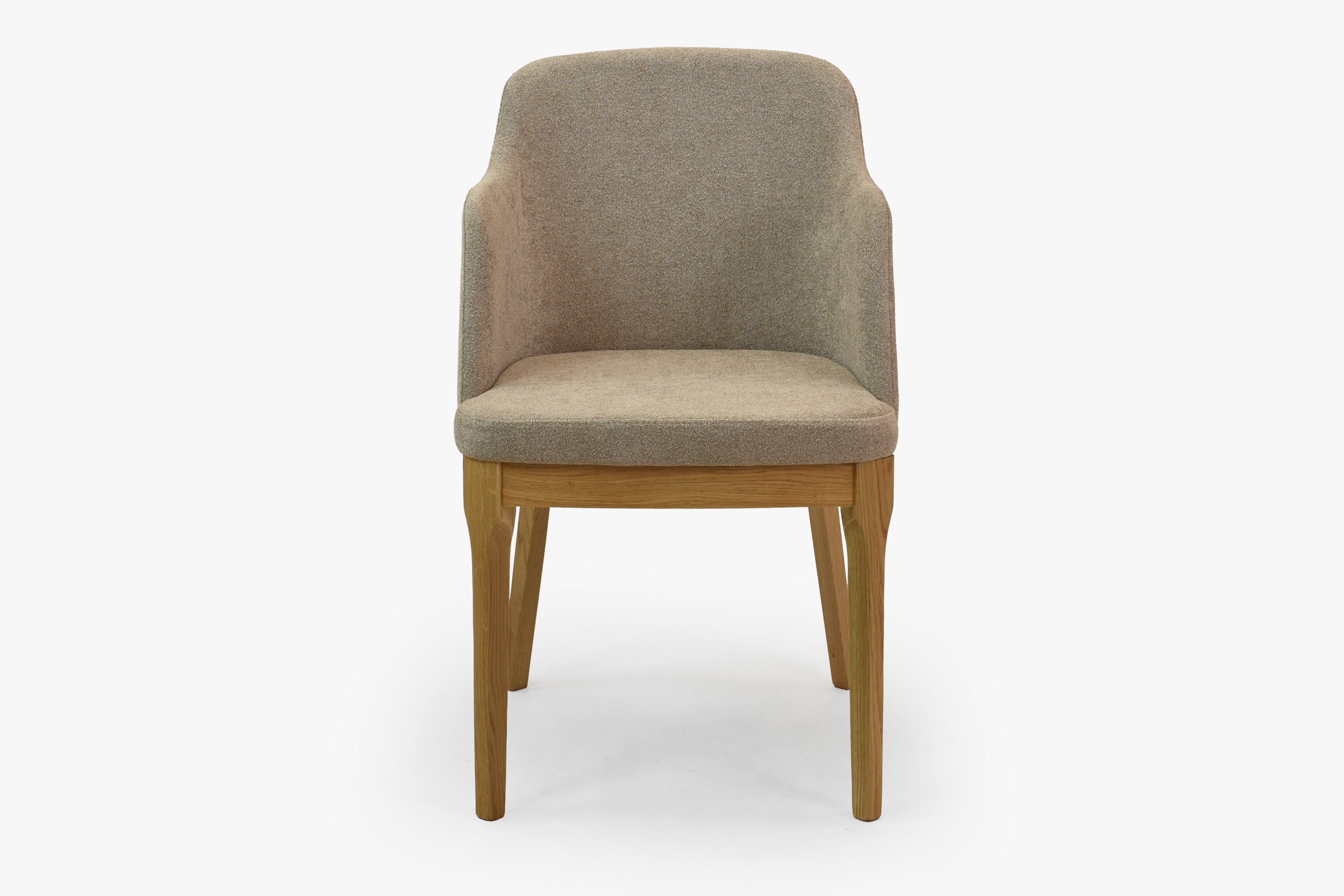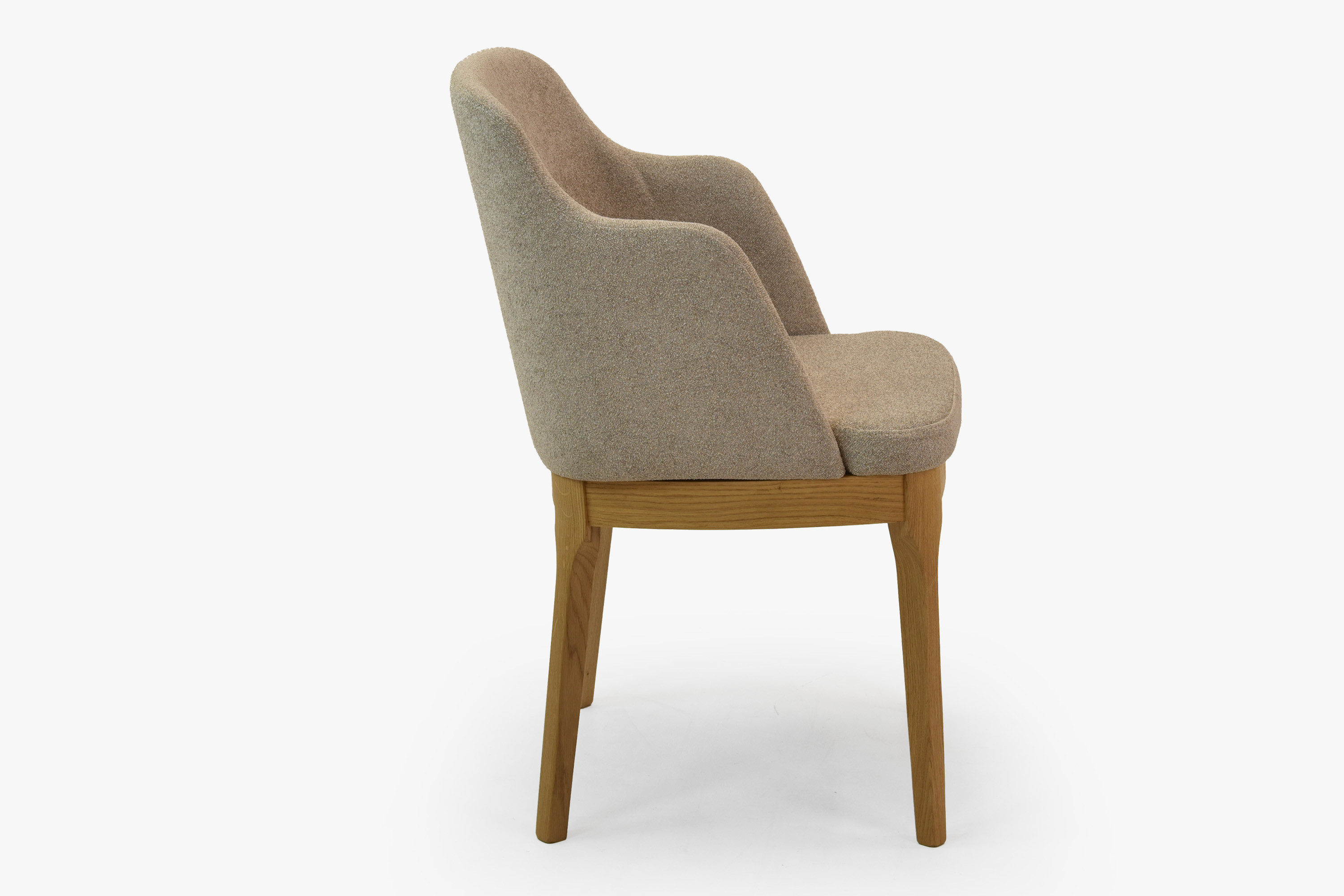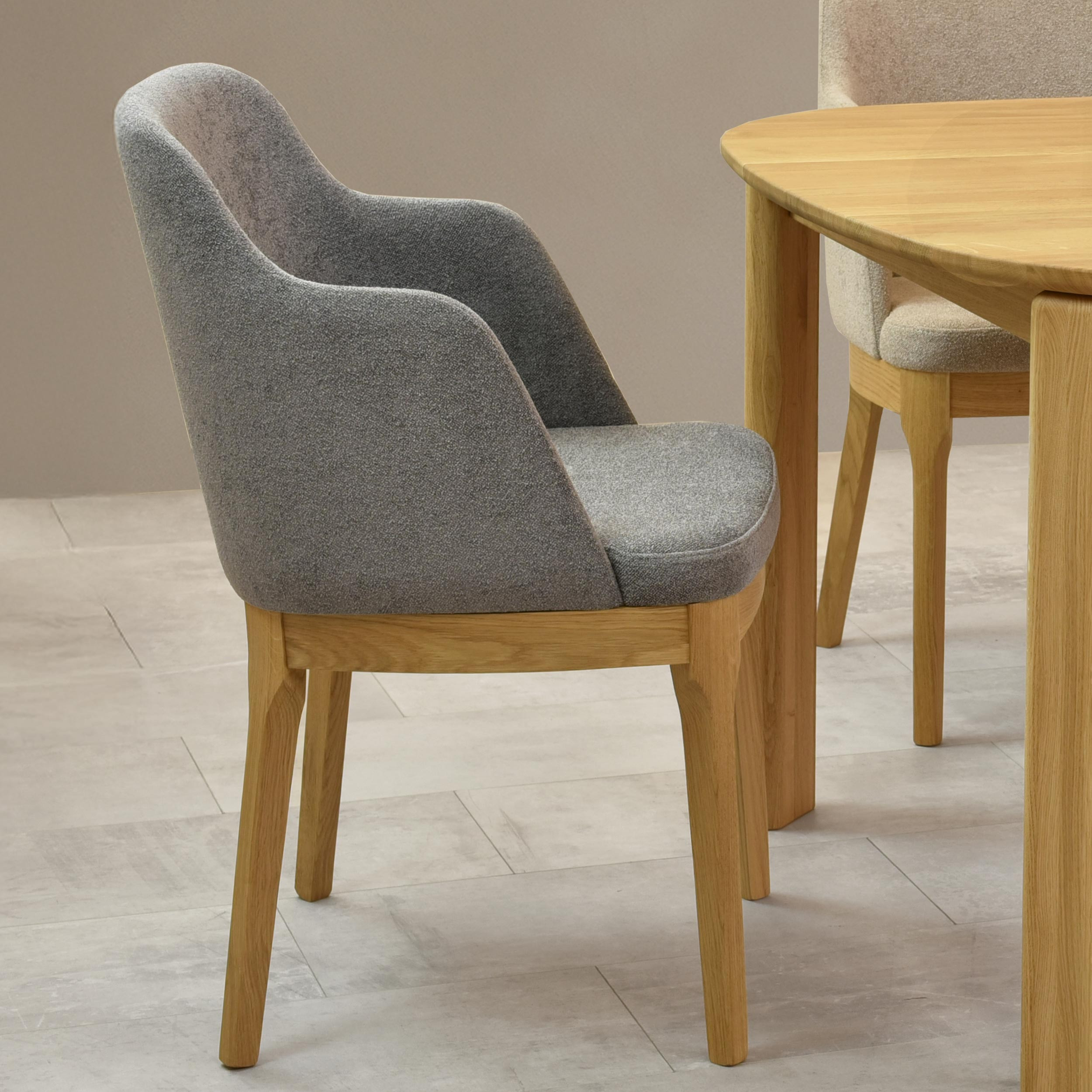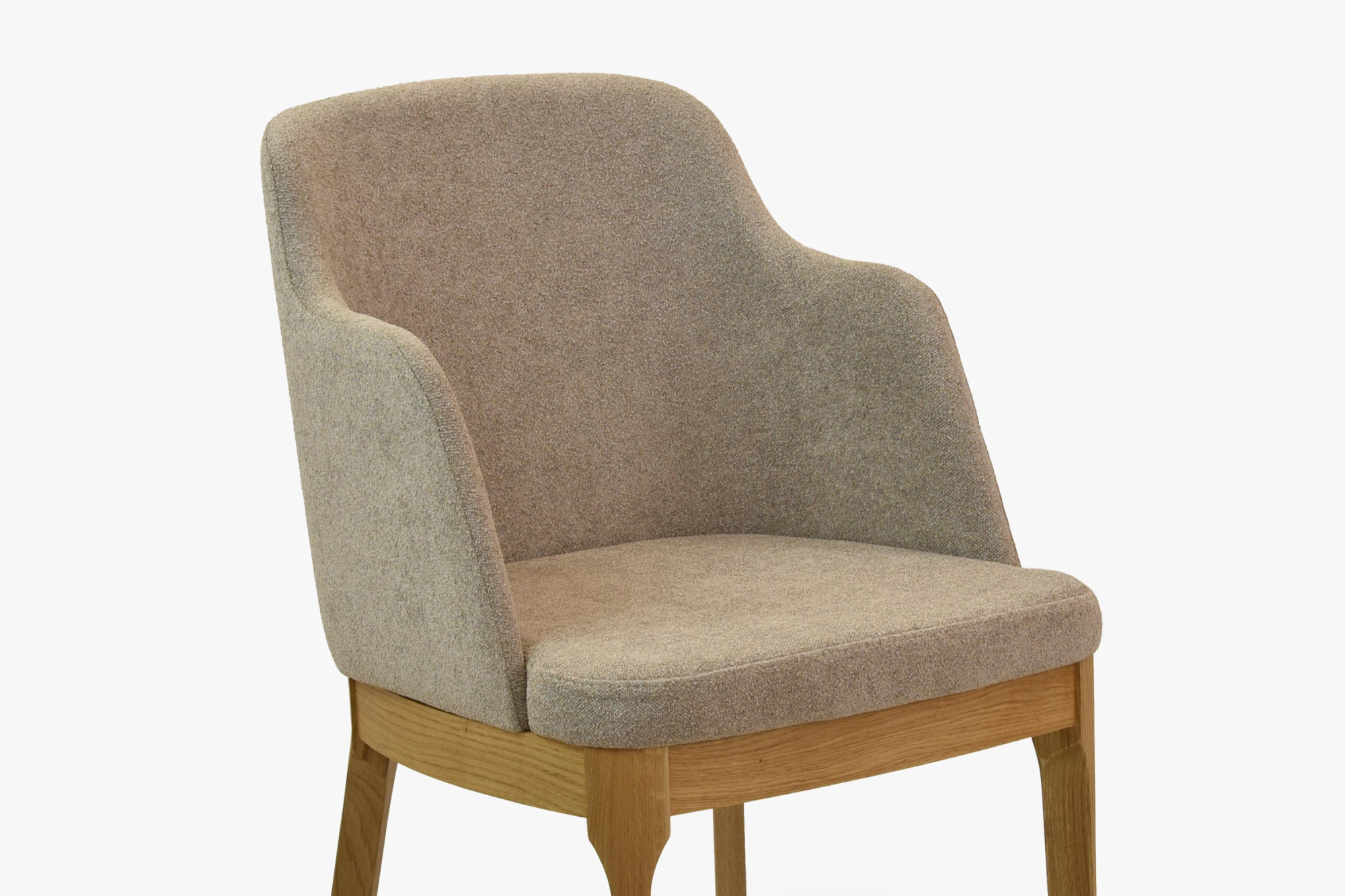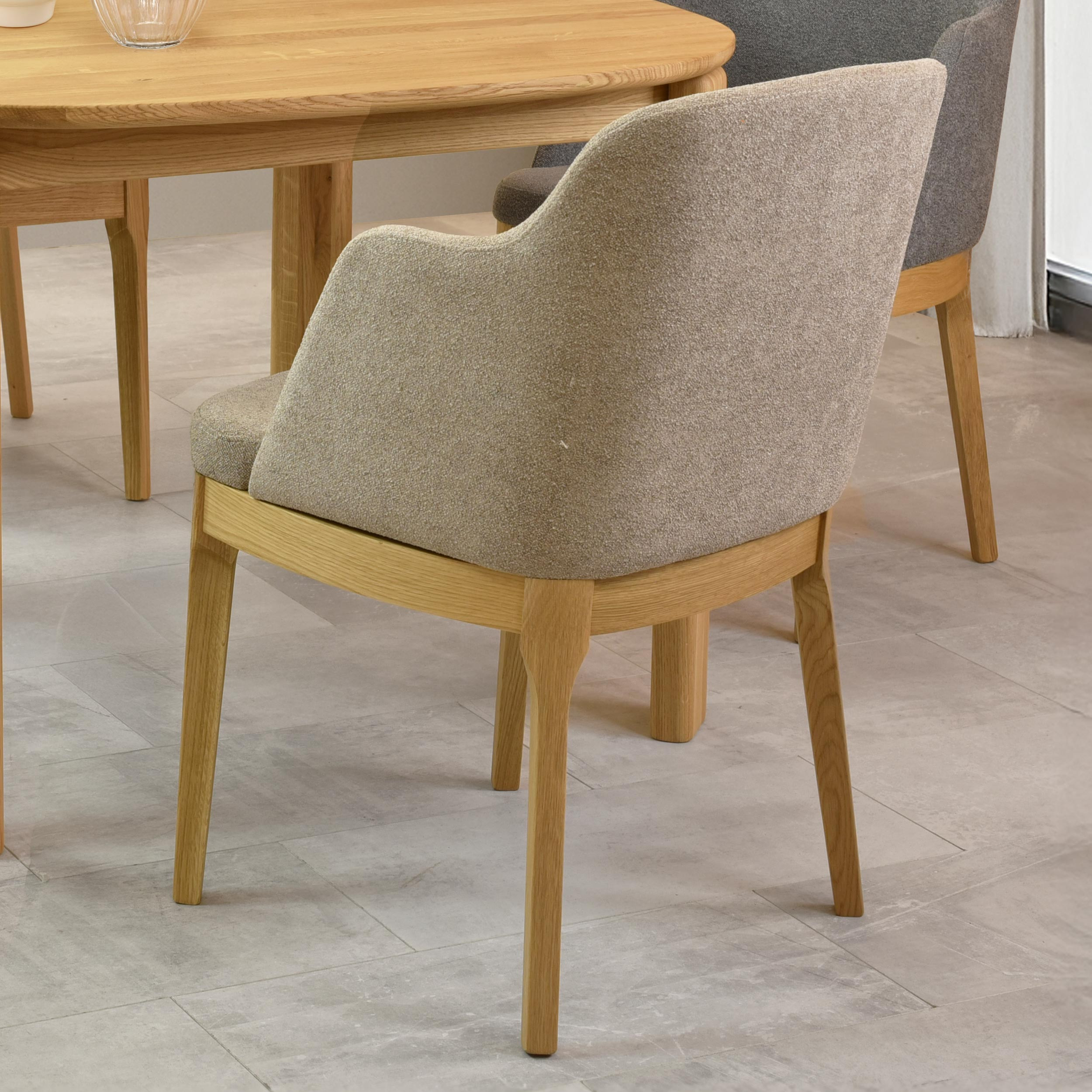 Luxuriöser eleganter Sessel für das Esszimmer in dunkelgrau-brauer Polsterung – Beine aus Eiche