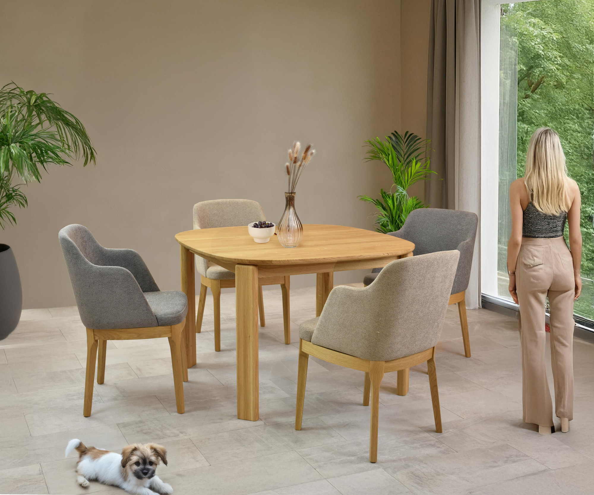 Die ergonomisch geformte Rückenlehne und der gepolsterte Sitz bieten außergewöhnlichen Sitzkomfort, dank dem Sie und Ihre Gäste lange Abendessen und Geschäftstreffen ohne Unbehagen genießen können. Das Material stammt aus Wäldern mit FSC-Zertifikat, sodass Ihr Kauf nachhaltig bewirtschaftete Ressourcen unterstützt. Der Eichenstuhl lässt sich leicht mit weiteren Möbeln aus Eiche kombinieren, sei es Tische, Kommoden oder Regale, was die Schaffung eines harmonischen und zeitlosen Interieurs erleichtert. Das strapazierfähige Bezugsgewebe ist zudem pflegeleicht – zur Reinigung reicht in der Regel das sanfte Absaugen oder Abwischen mit einem feuchten Tuch.