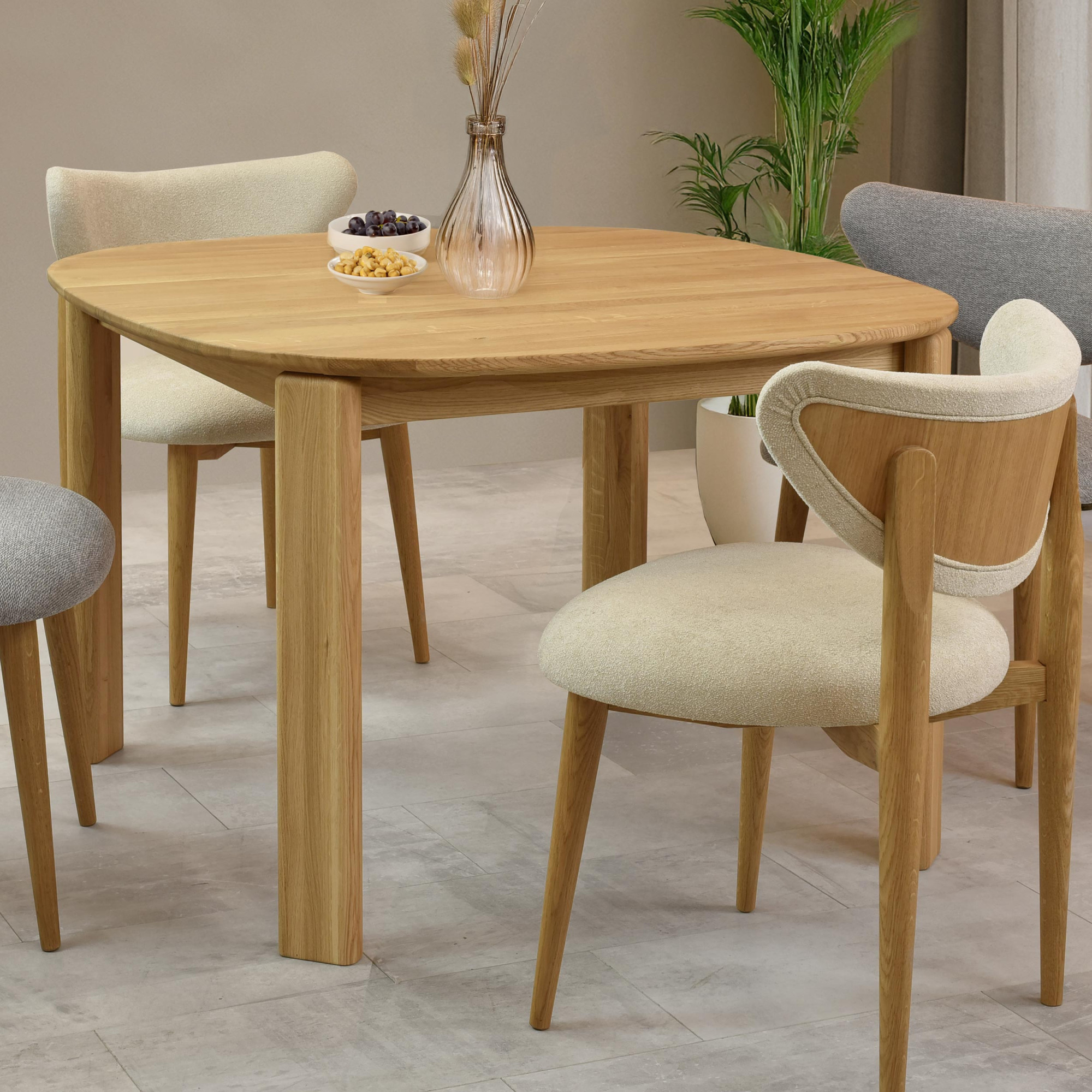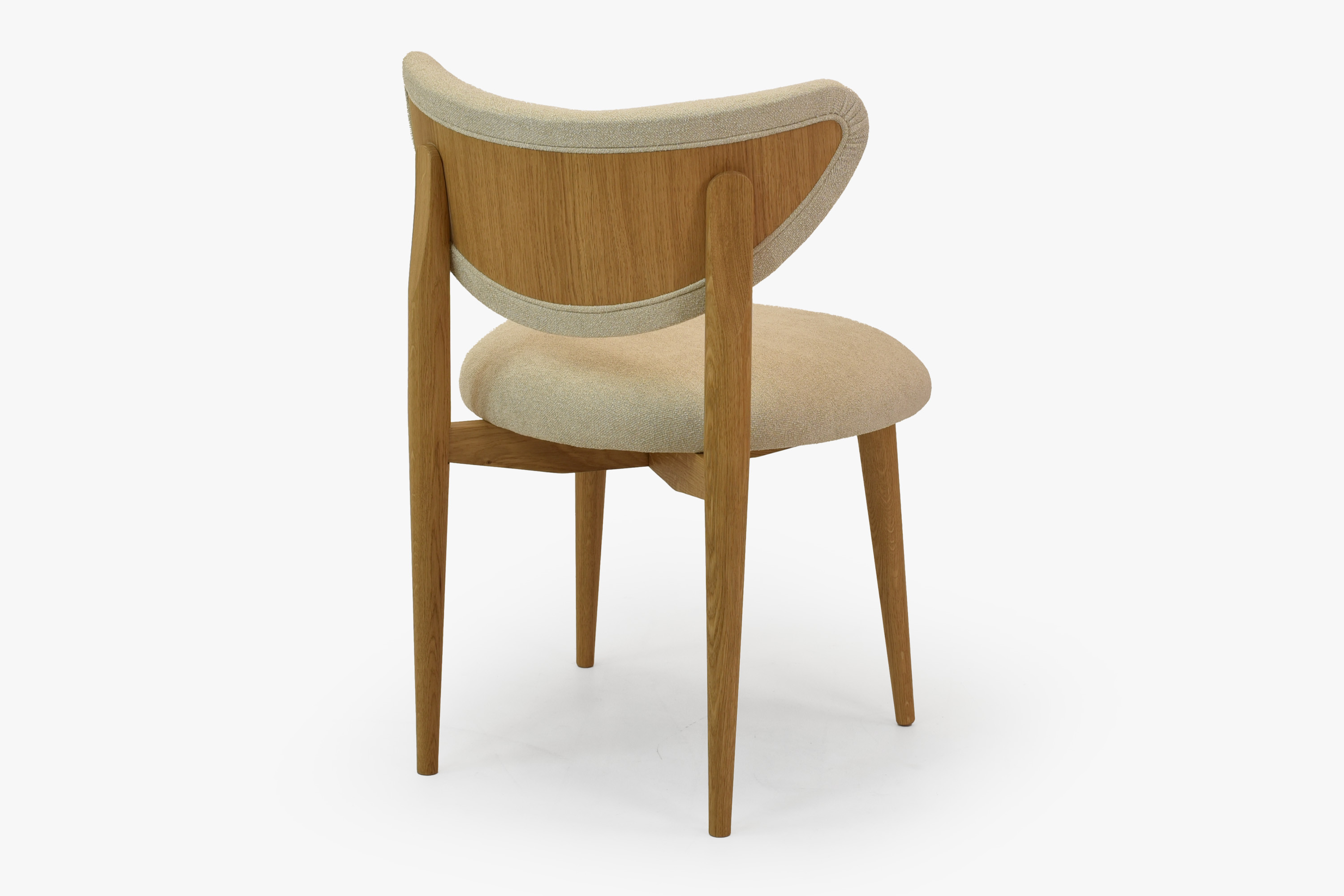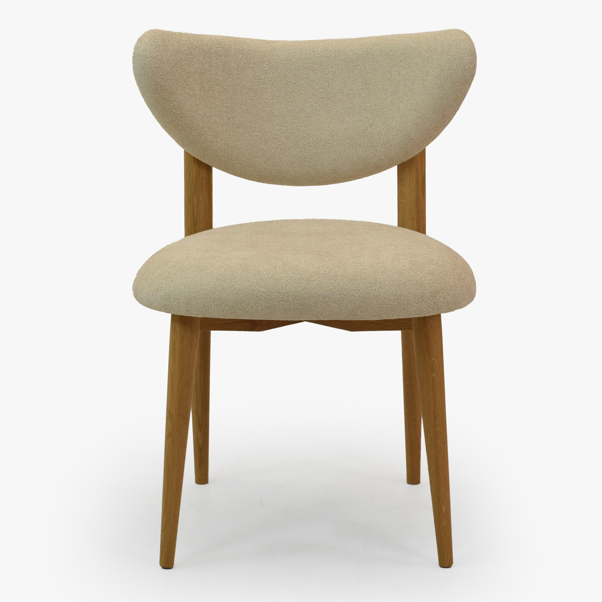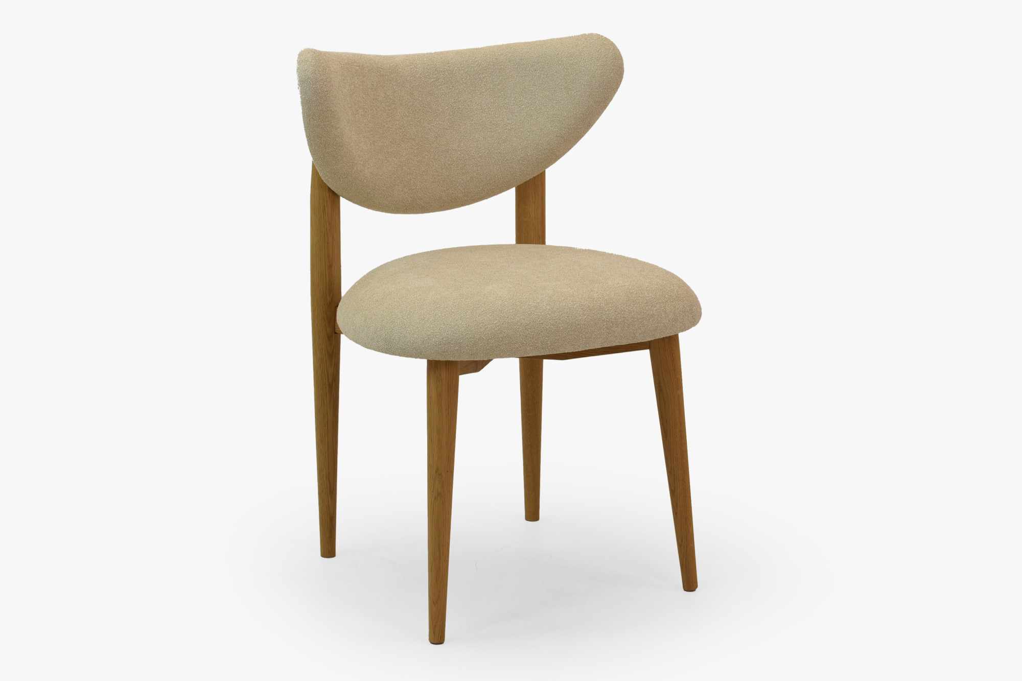 Die ergonomisch geformte Lehne garantiert Komfort auch bei langen Abendessen, während die Belastbarkeit von 120 kg die Robustheit des Eichenrahmens bestätigt. Der Stoff lässt sich leicht mit destilliertem Wasser und neutraler Seife reinigen, sodass sein Aussehen ohne aufwändige Pflege erhalten bleibt. Der Stuhl wird vollständig montiert geliefert, einfach auspacken und Platz nehmen. Dank neutraler Töne und natürlicher Eiche lässt er sich perfekt mit weiteren Eichenmöbeln – von Esstischen bis zu Kommoden – kombinieren und schafft ein stimmiges, zeitloses Interieur.