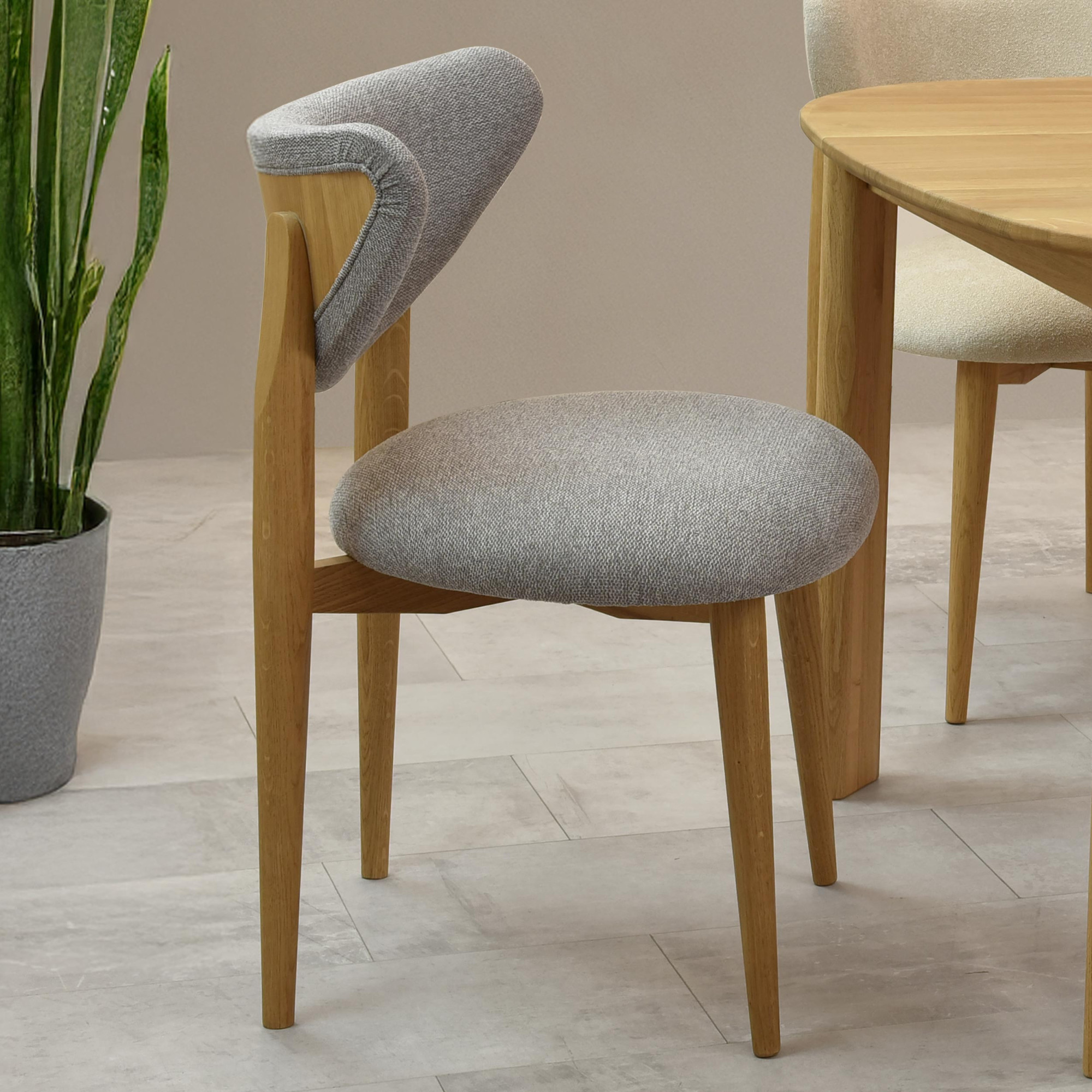 Luxuriöser Esszimmerstuhl Moon repräsentiert die Harmonie von modernem Design und handwerklicher Qualität. Massives Eichenholz mit FSC-Zertifikat bildet die stabile Konstruktion, und natürliches Öl betont seine einzigartige Maserung ohne Einsatz von Chemikalien. Der gepolsterte Sitz und die Lehne in zwei eleganten Farbtönen – Grau und Ecru – stammen aus der Werkstatt des italienischen Designteams, das mit diesem Modell auf der Mailänder Möbelmesse ausgezeichnet wurde. Der luxuriöse Esszimmerstuhl wirkt anspruchsvoll, bleibt jedoch dank Direktkauf beim Hersteller preislich attraktiv.