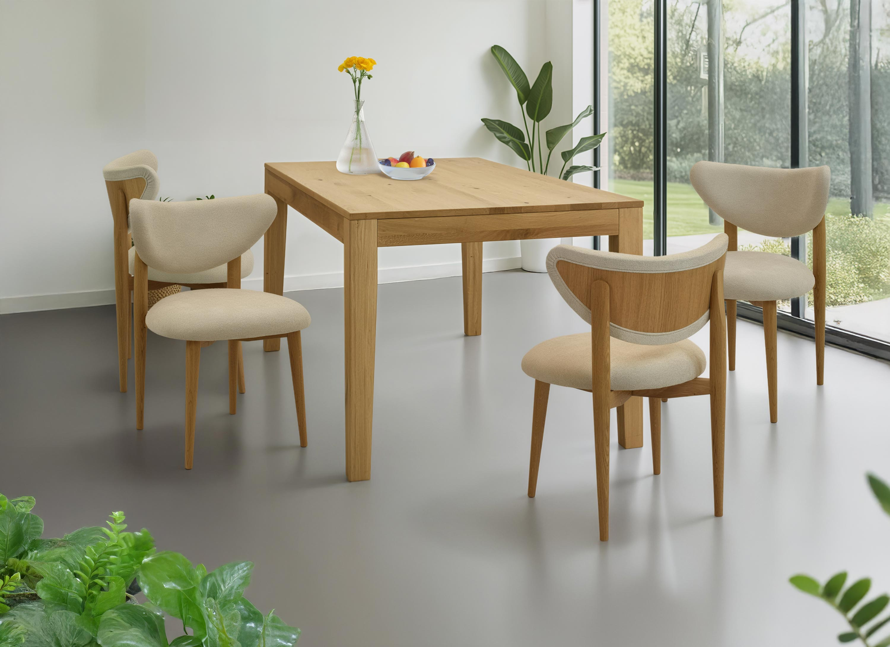 Luxuriöser Esszimmerstuhl Eiche mit ecrufarbenem Polster