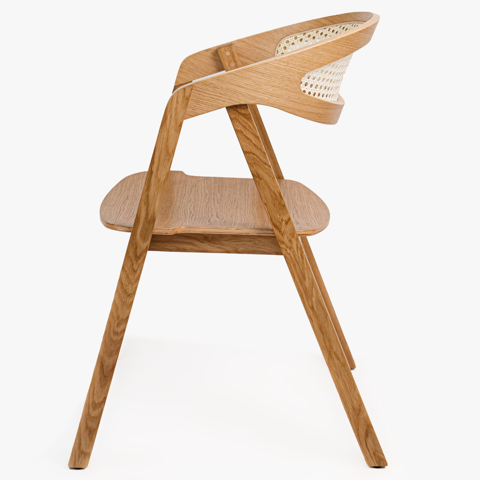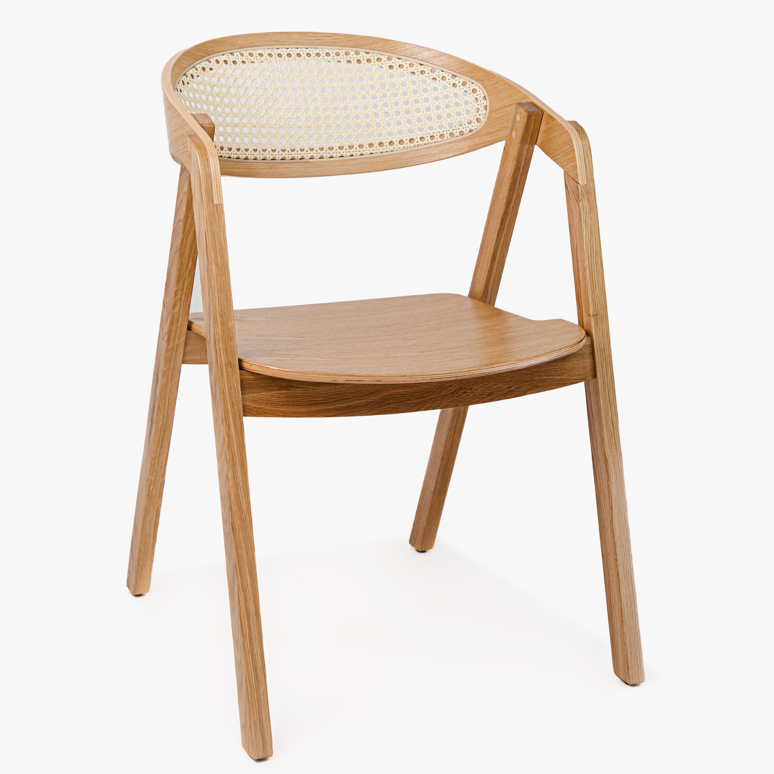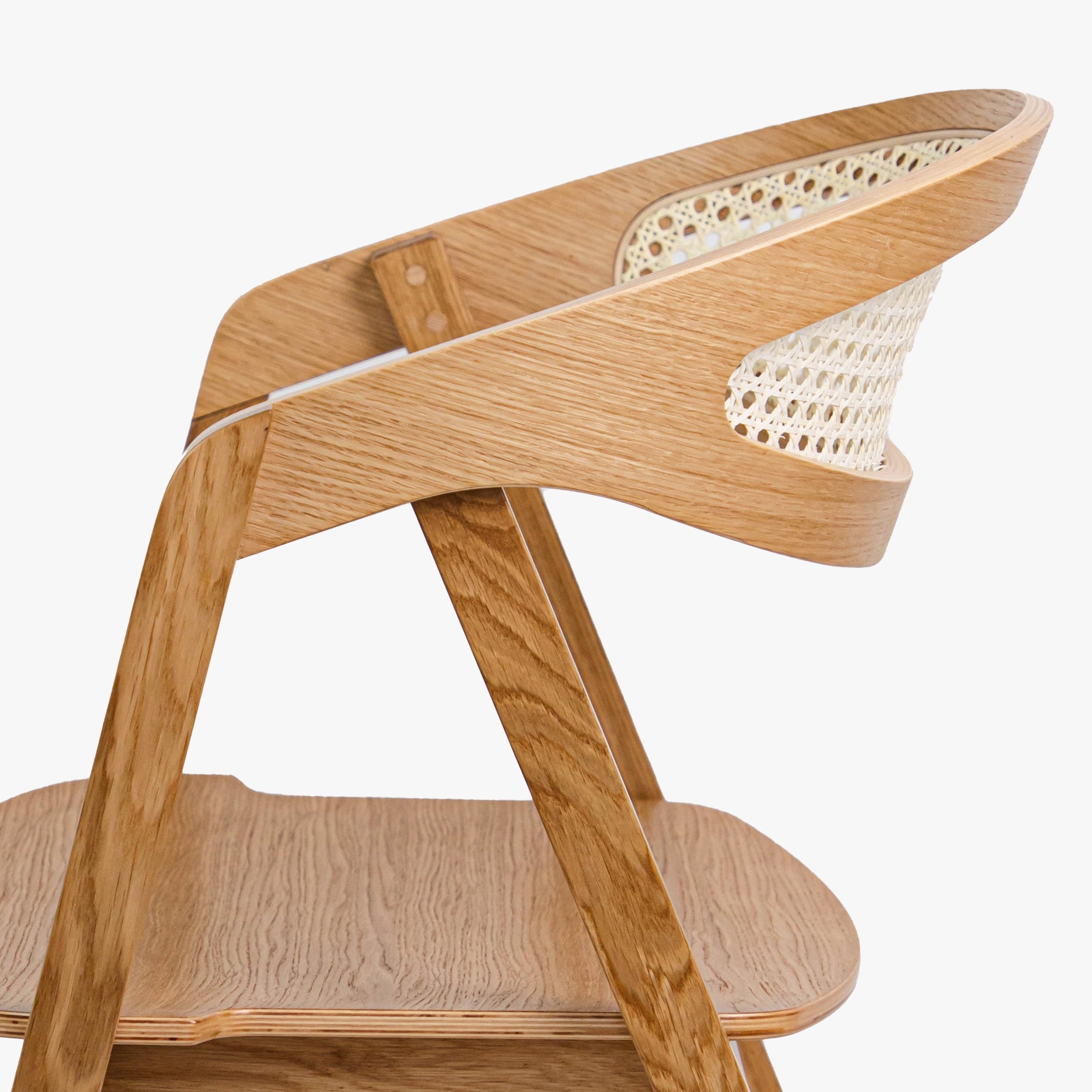 Stapelbarer Eichenstuhl mit Rattan, natur, modern