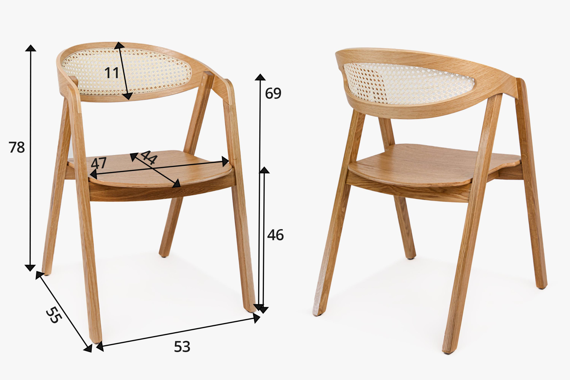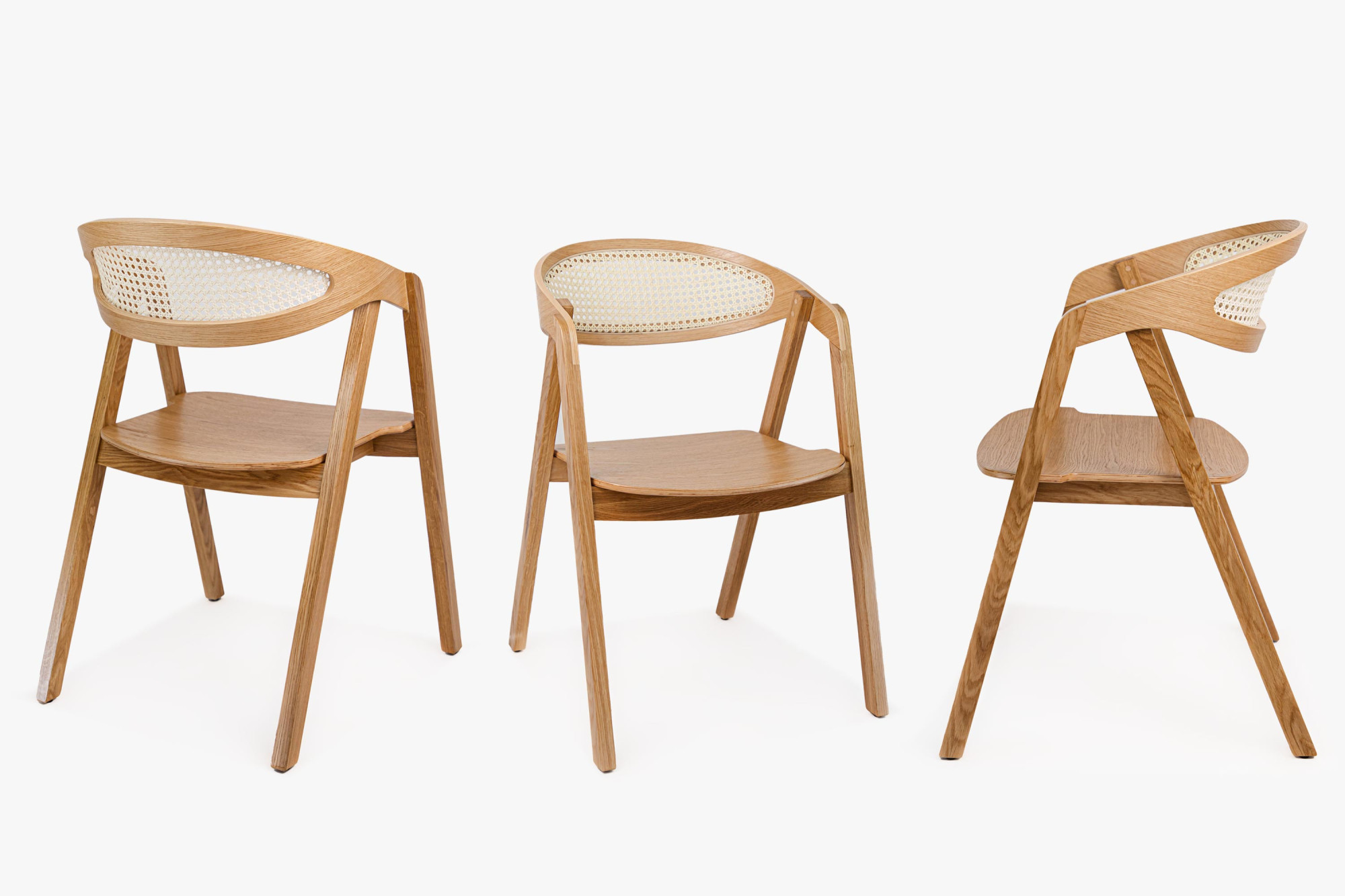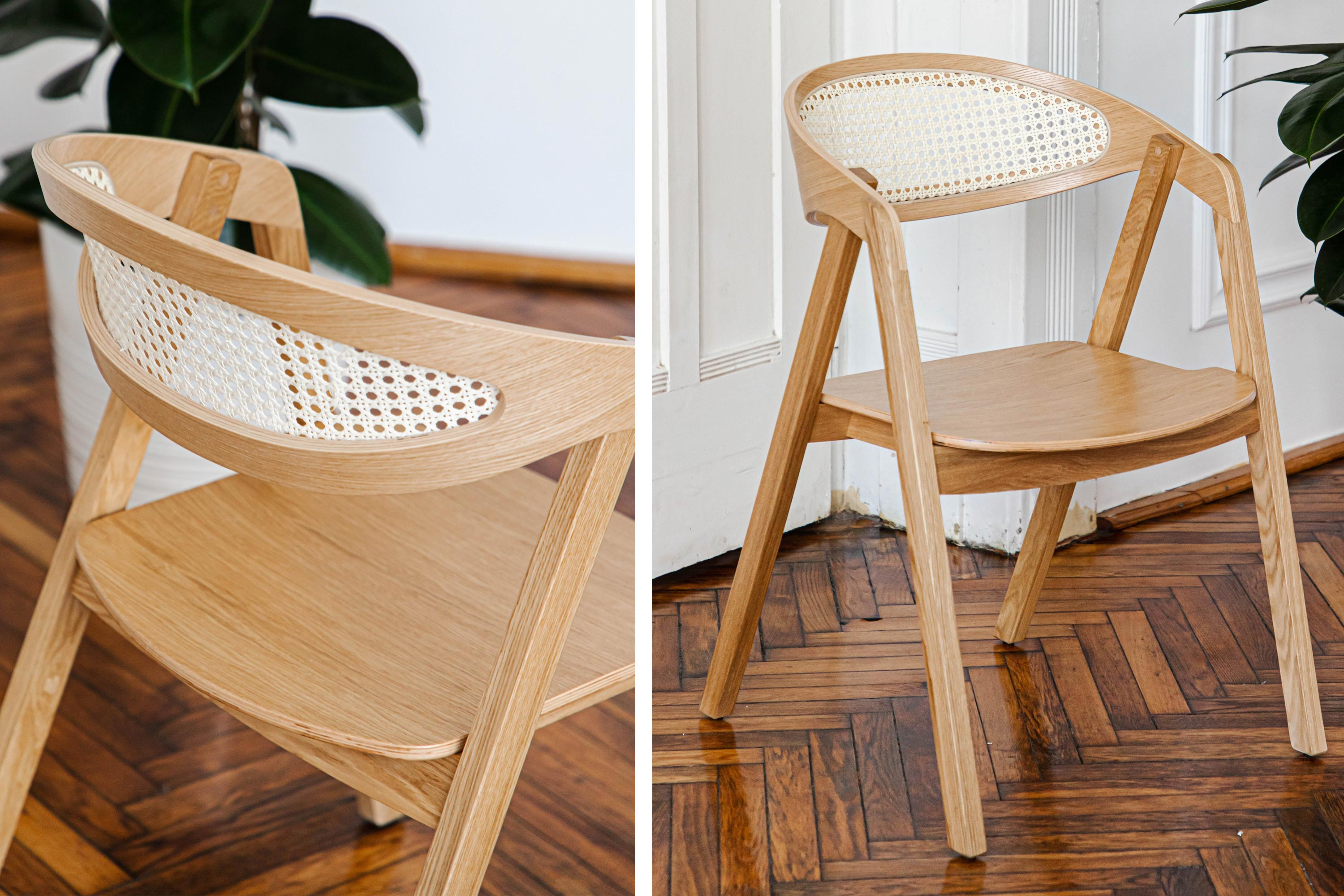 Stapelbarer Eichenstuhl mit Rattan, natur, modern