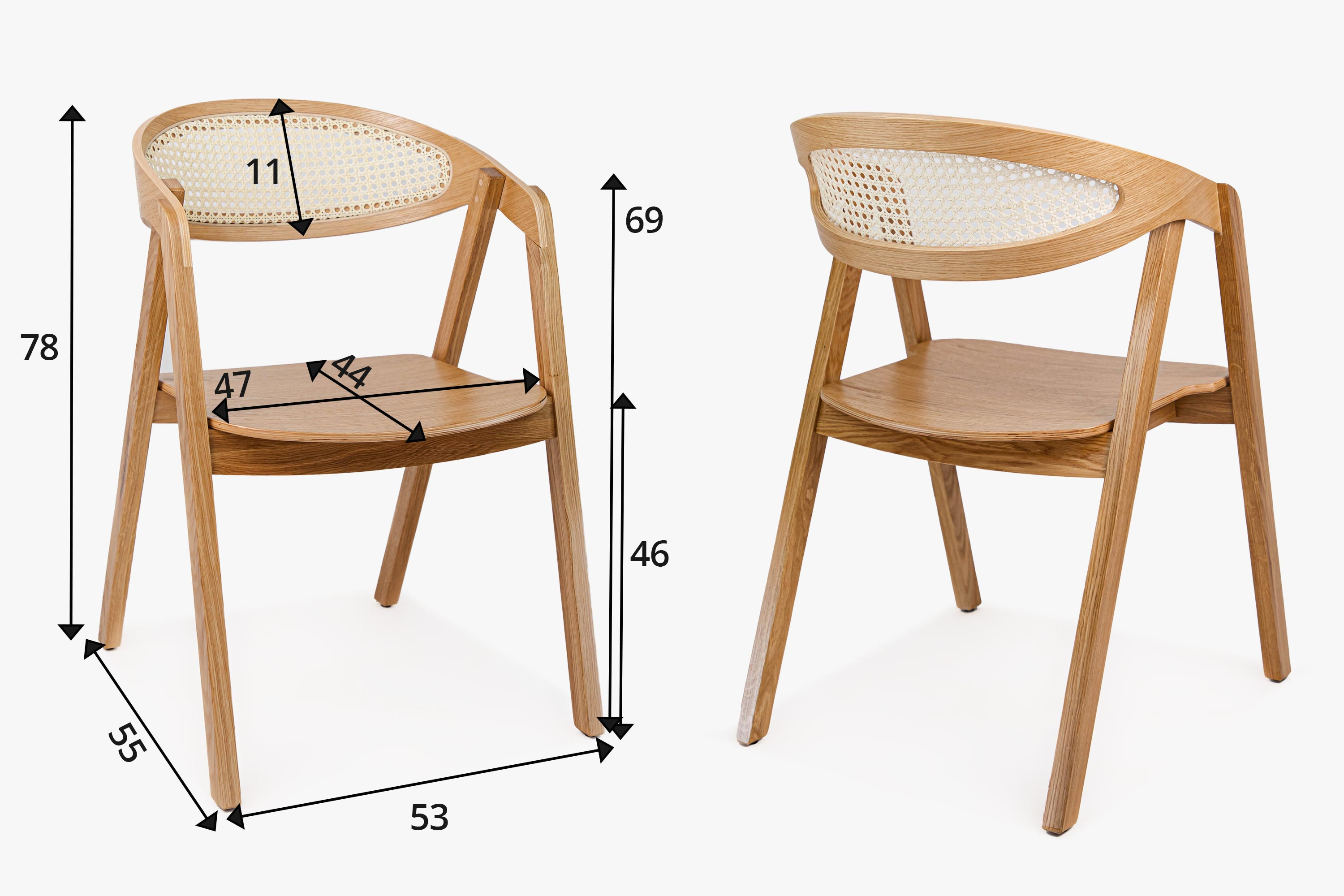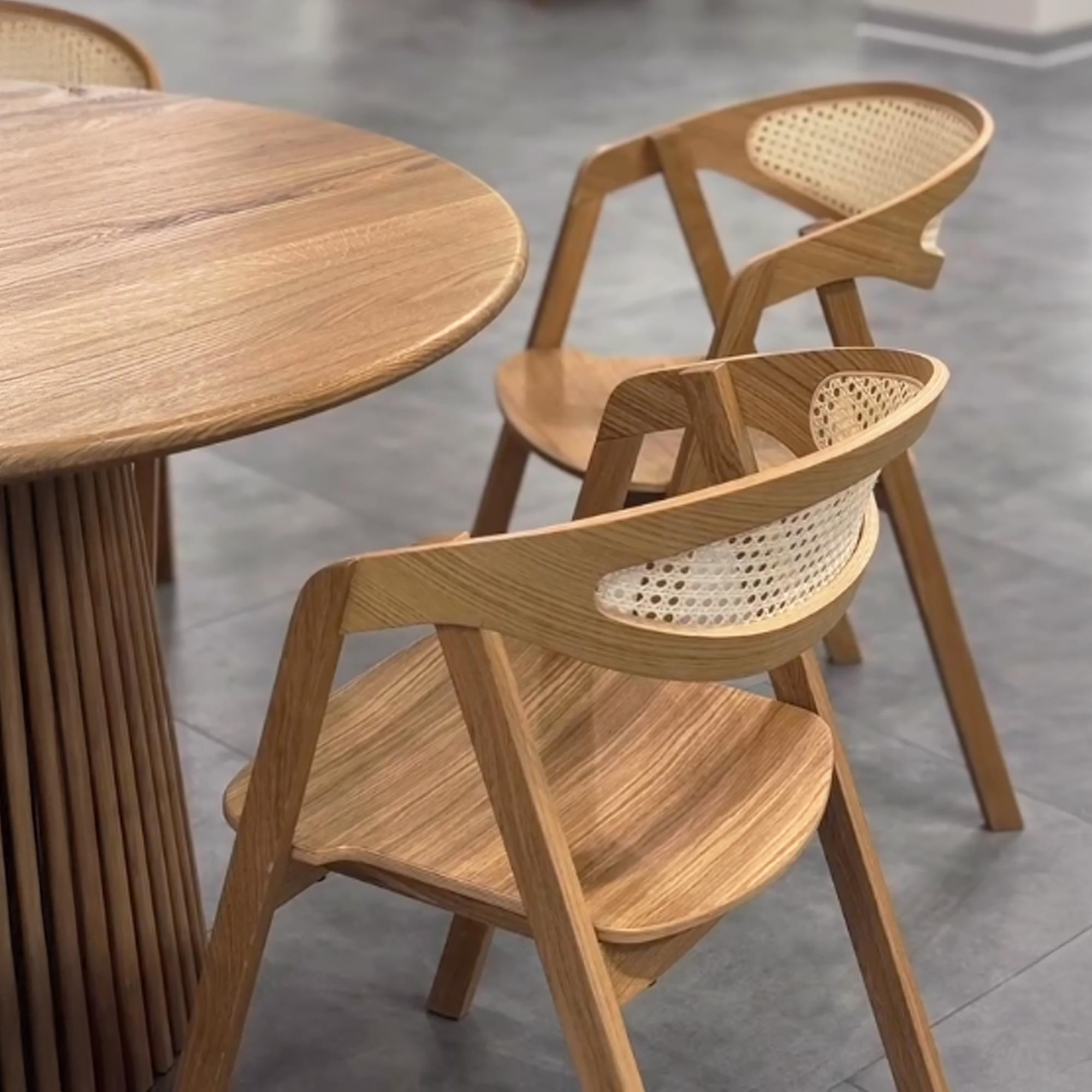 Die robuste Konstruktion bei einem Gewicht von nur 7 kg bietet eine Tragfähigkeit von bis zu 120 kg, was sowohl Haushalte als auch Gastro-Betriebe schätzen. Der Stuhl ist außerdem stapelbar, wodurch beim Lagern oder Aufräumen Platz gespart wird. Er wird komplett montiert geliefert, einfach auspacken und sofort verwenden. Die Pflege ist äußerst unkompliziert – Staub lässt sich mit einem trockenen Tuch abwischen und eventuelle Flecken mit einem feuchten Tuch und neutraler Seife entfernen. Durch die robuste Eiche, das flexible Rattan und die sorgfältige handwerkliche Verarbeitung wird er zu einem langlebigen Begleiter für Ihren täglichen Essbereich.