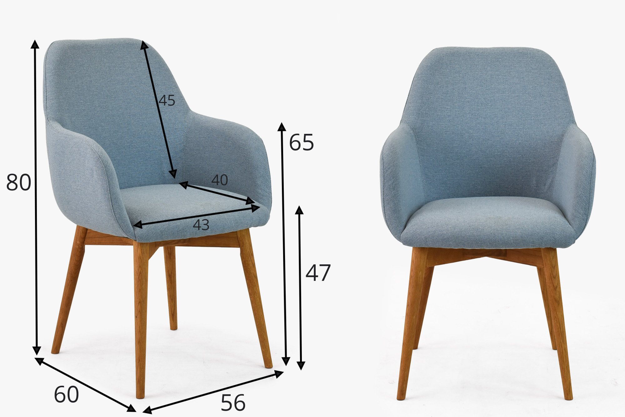 Esszimmerstuhl Sky mit Armlehnen - türkis mit Eichenbeinen
