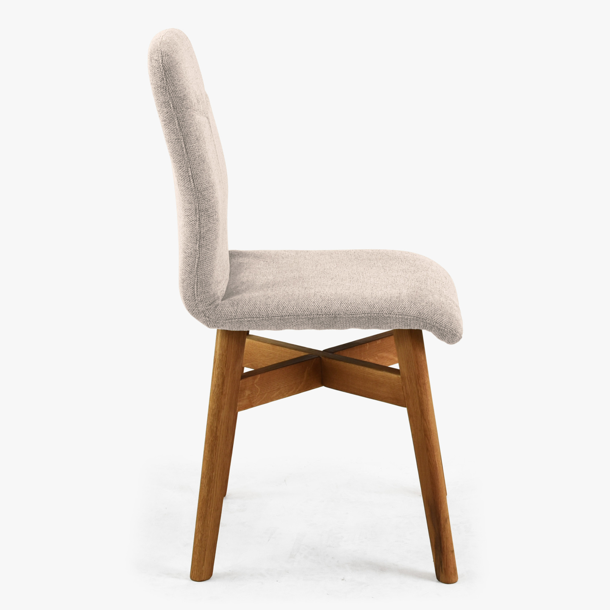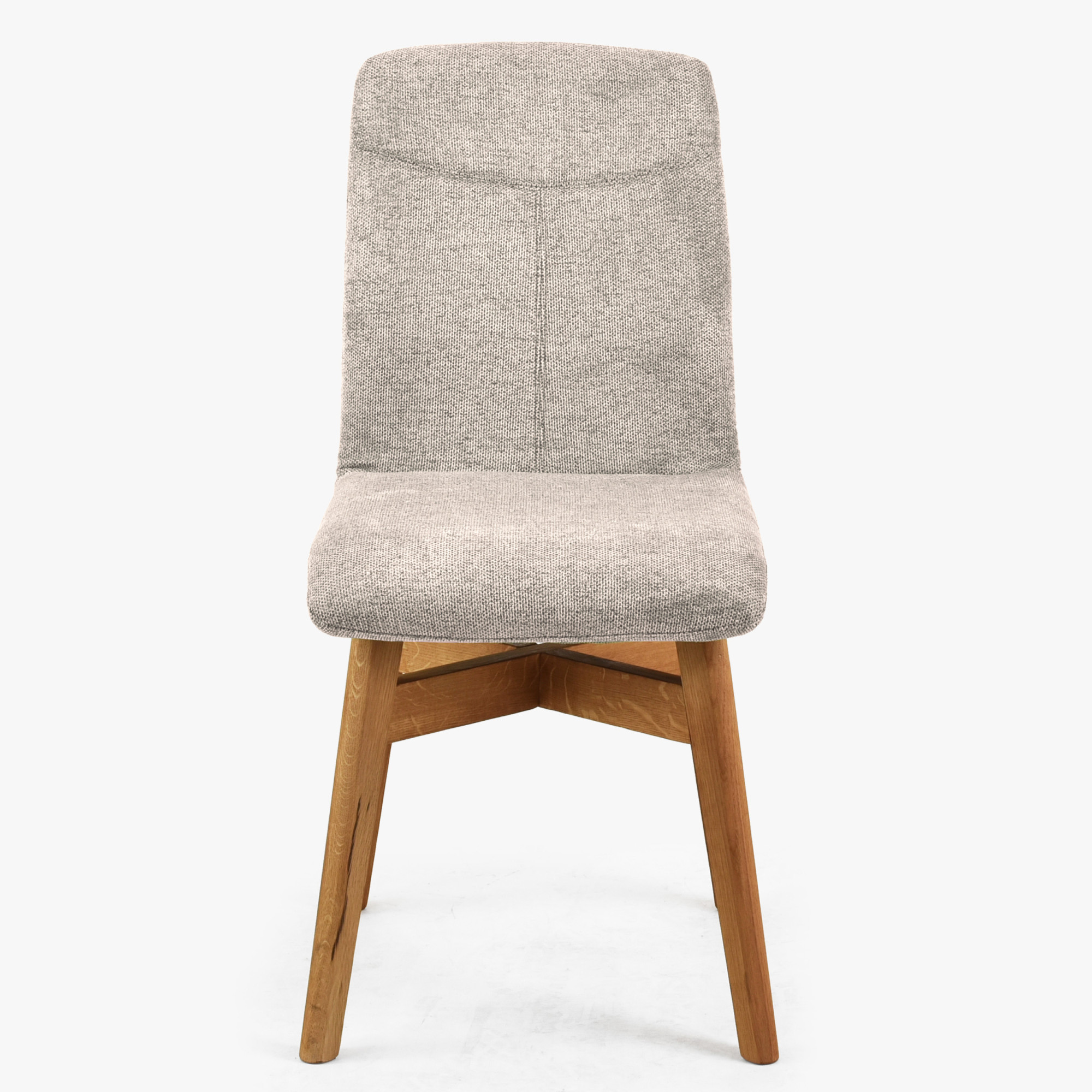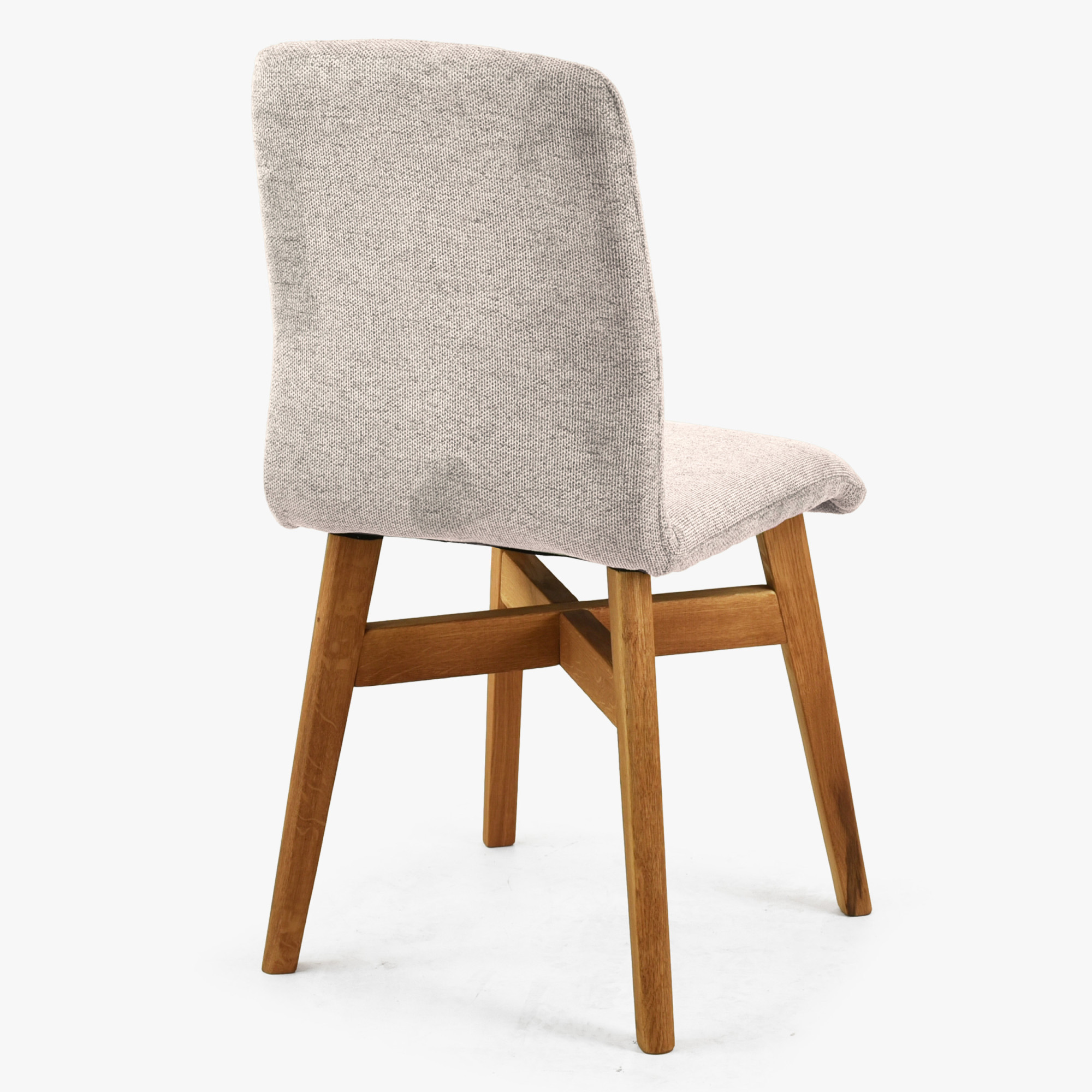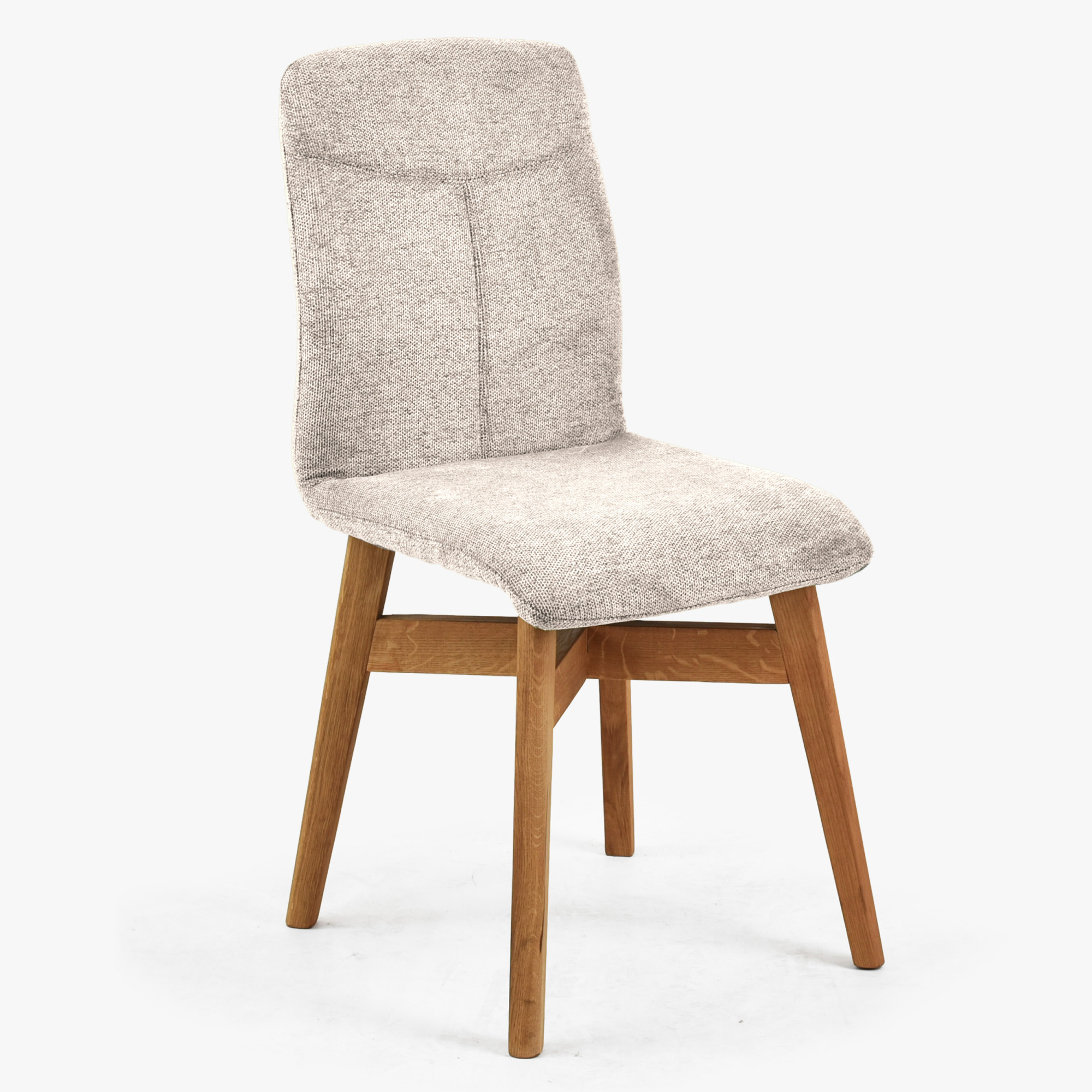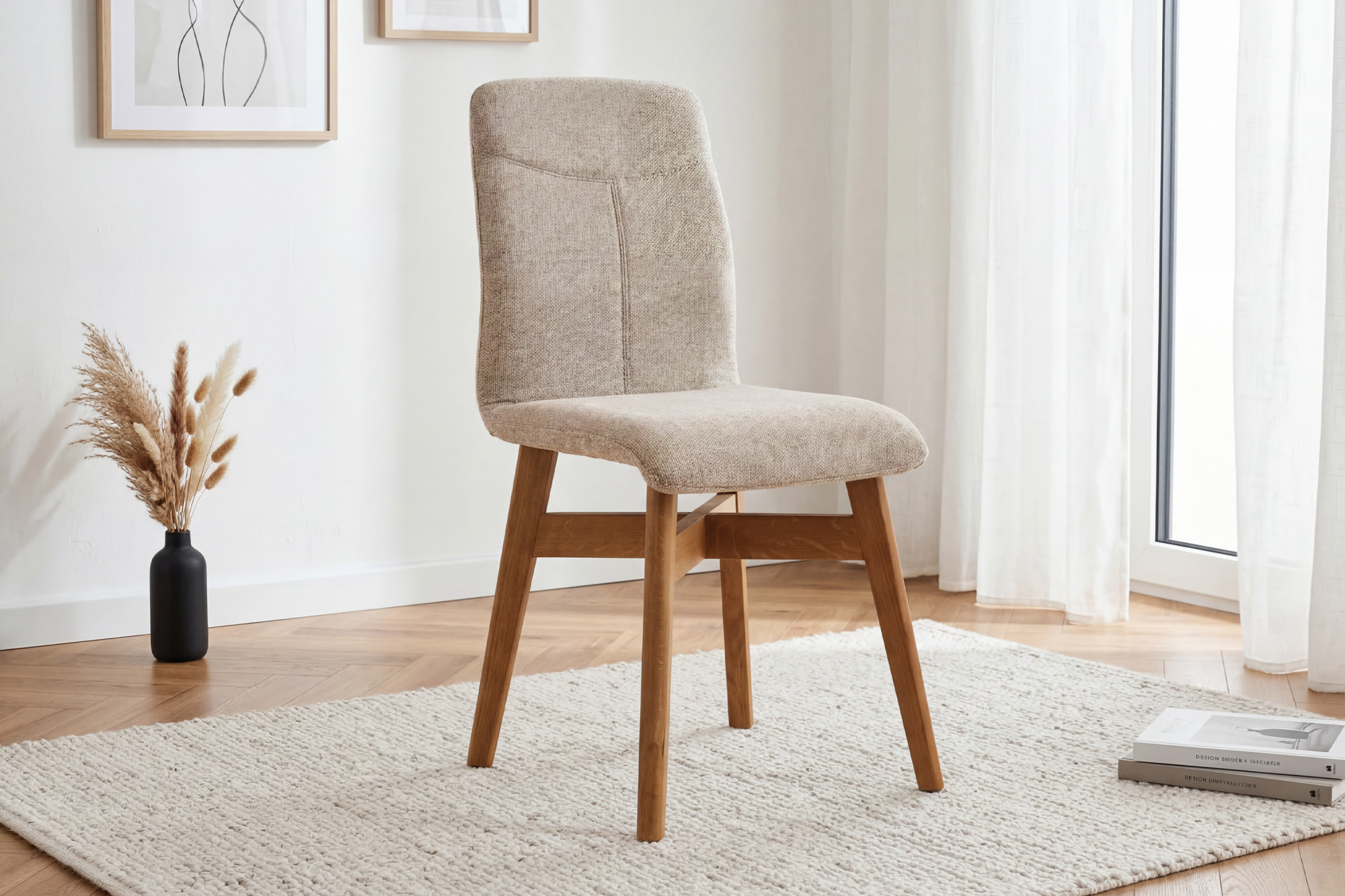 Der Sitz des Stuhls ist mit hoch elastischem Schaum gefüllt, der maximalen Komfort auch bei langem Sitzen garantiert. Eichenbeine in Naturfarbe sind mit transparentem Öl behandelt, das die natürliche Schönheit des Holzes betont. Ein besonderer Vorteil ist der easy clean Bezug, der die Entfernung von 99 % der Flecken nur mit Wasser ermöglicht. Der Stuhl wird bereits professionell montiert geliefert und ist dank eines Gewichts von nur 8 kg leicht zu versetzen. Die ergonomische Form des Sitzes mit Armlehnen sorgt für Komfort den ganzen Abend über, während eine Belastbarkeit von bis zu 120 kg und die Scheuerfestigkeit des Stoffes von 50.000 Zyklen eine lange Lebensdauer des Produkts garantieren.