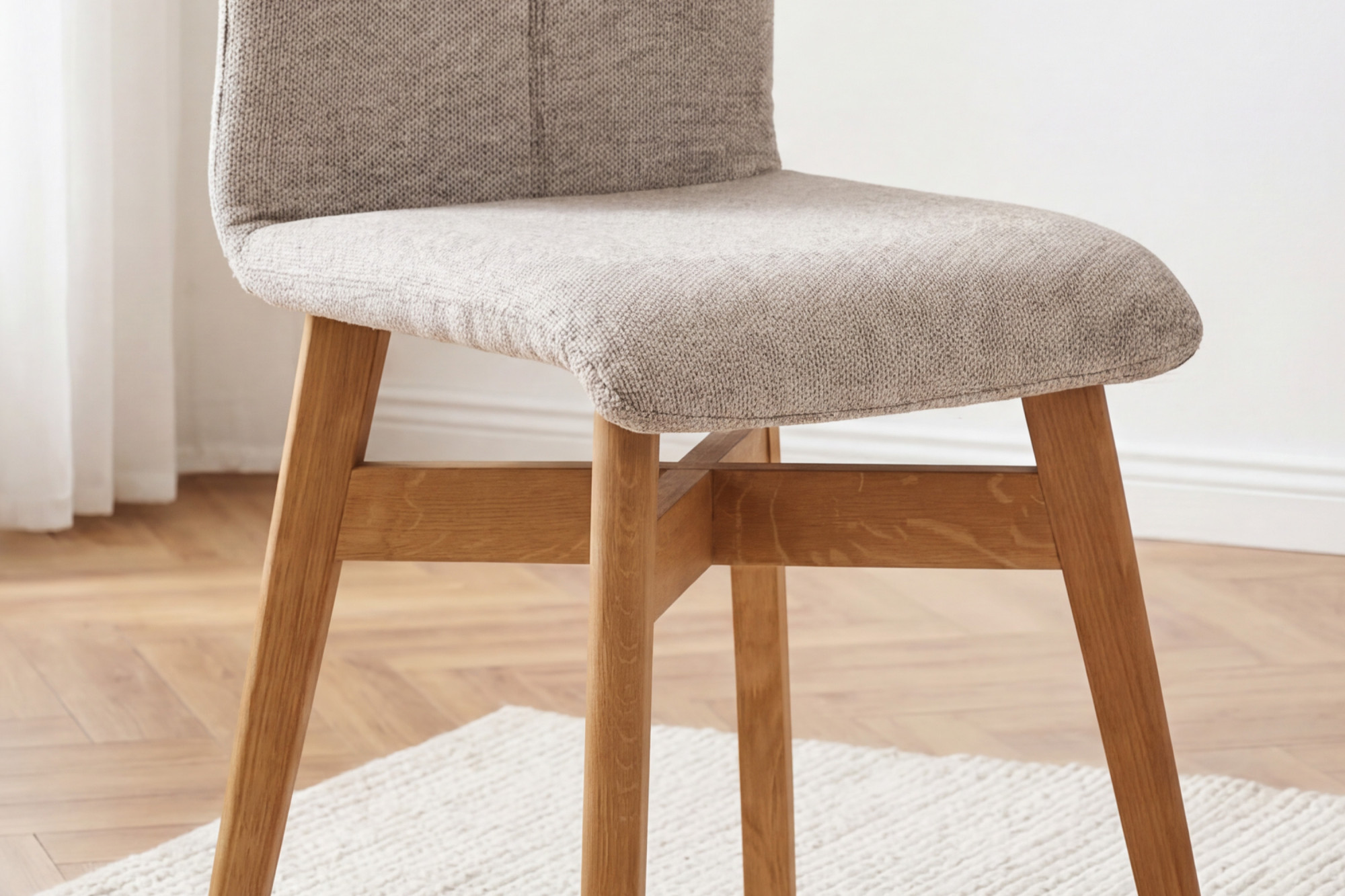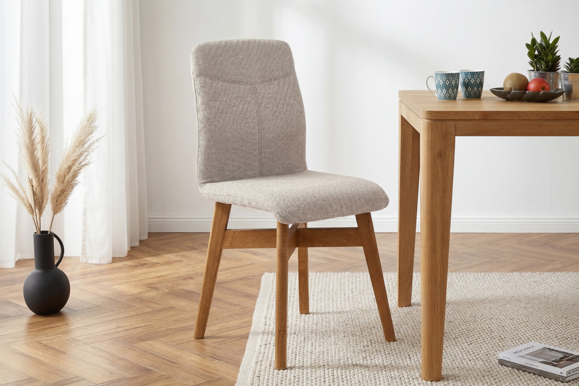 Esszimmerstuhl York ist die perfekte Kombination aus modernem Design und natürlichen Materialien. Dieser gepolsterte Stuhl mit Eichenbeinen ist die ideale Wahl für jeden Haushalt, der hochwertige Massivholzmöbel zu einem erschwinglichen Preis direkt vom Hersteller sucht. Der Stuhl York setzt das erfolgreiche Modell fort, das von mehr als 10.000 Kunden geschätzt wird, und bietet verbesserte Materialien sowie noch mehr Komfort. Die filigranen Maße machen diesen modernen Esszimmerstuhl zur perfekten Lösung sowohl für kleinere Küchen als auch für großzügige Speisezimmer.
