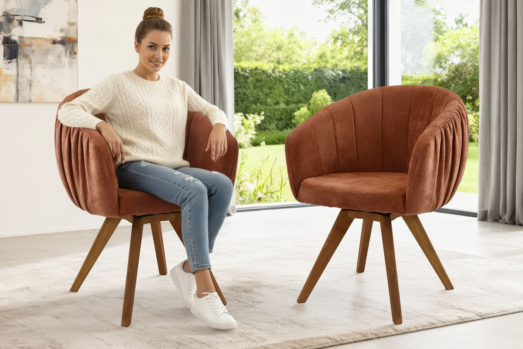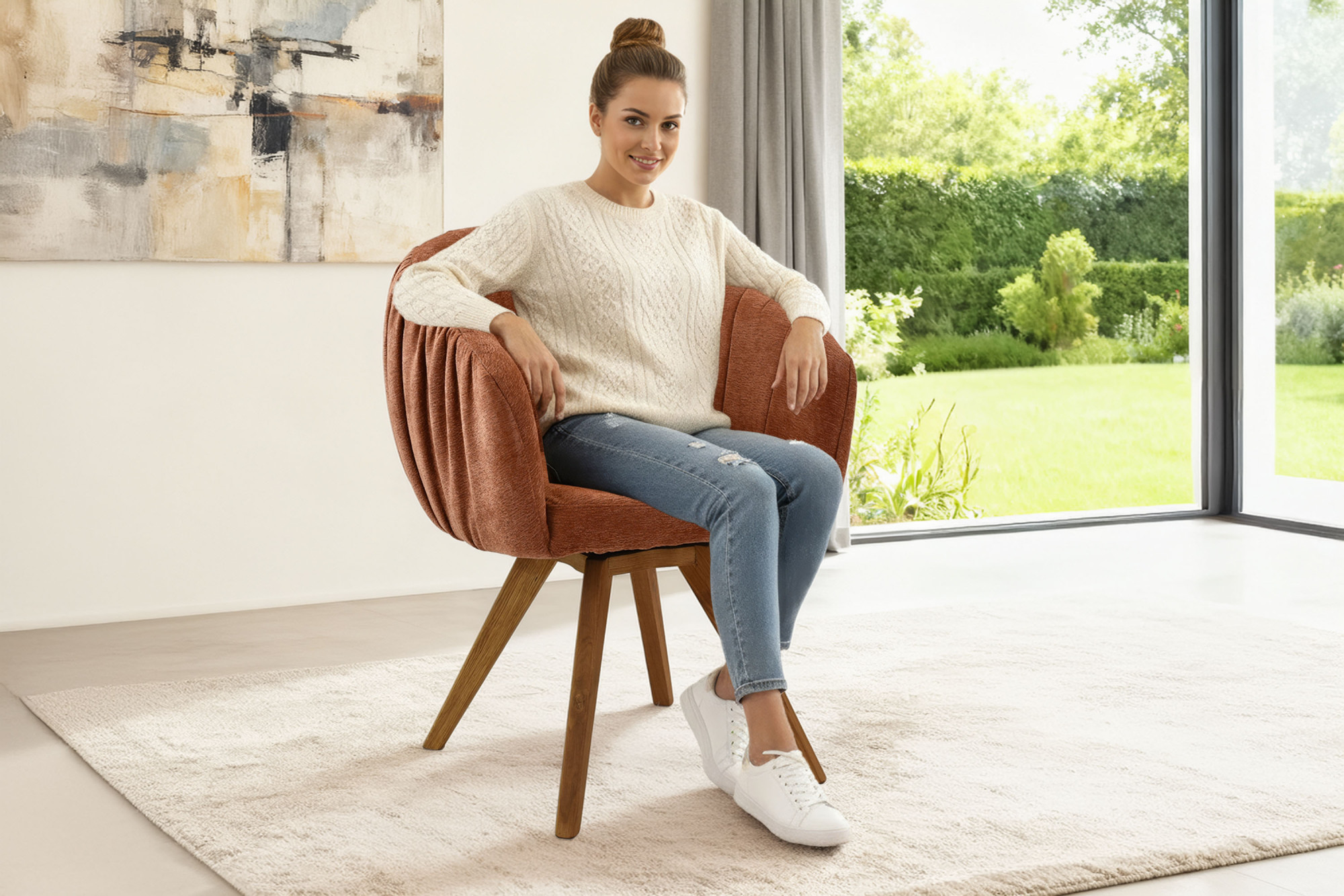 Drehbarer Eichenstuhl mit Armlehnen Elba in Orange – Italienisches Design für moderne Innenräume
