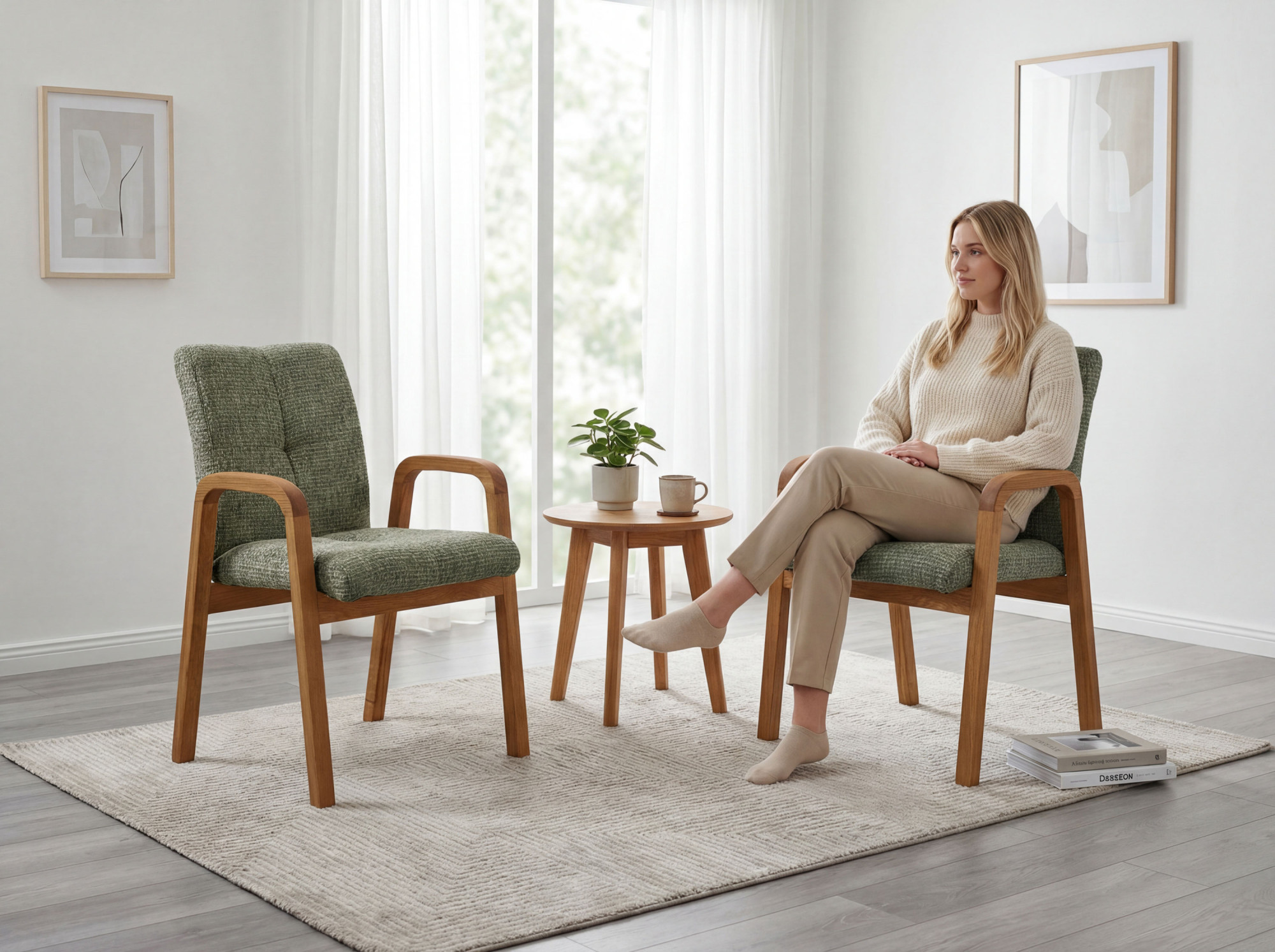 Der Stuhl ist bis zu 120 kg belastbar und konstruktiv für eine dauerhafte und sichere Nutzung ausgelegt. Dank hochwertigem Eichenmassivholz und stabilen Verbindungen ist er auch für robustere Personen stabil und zuverlässig.
