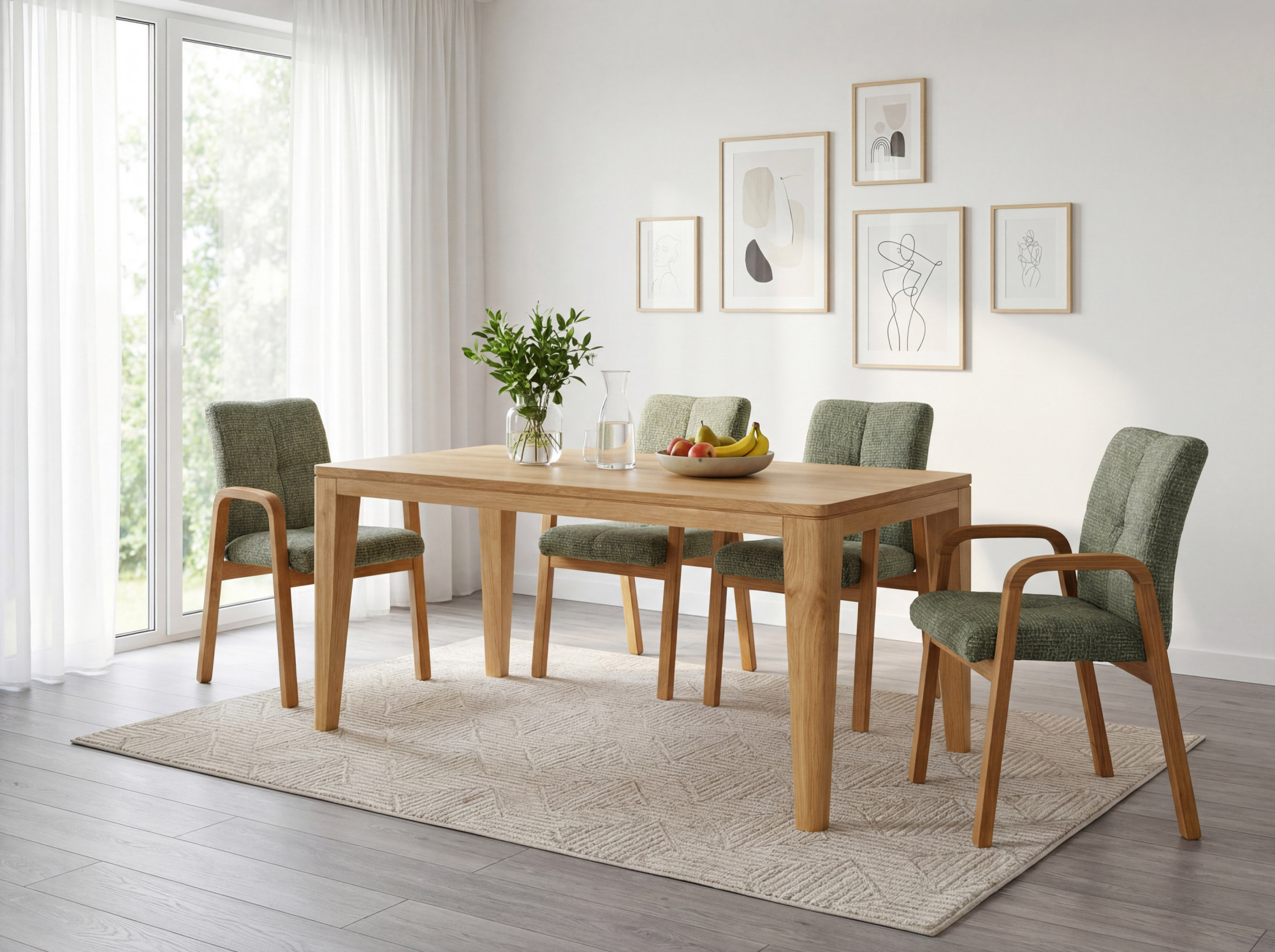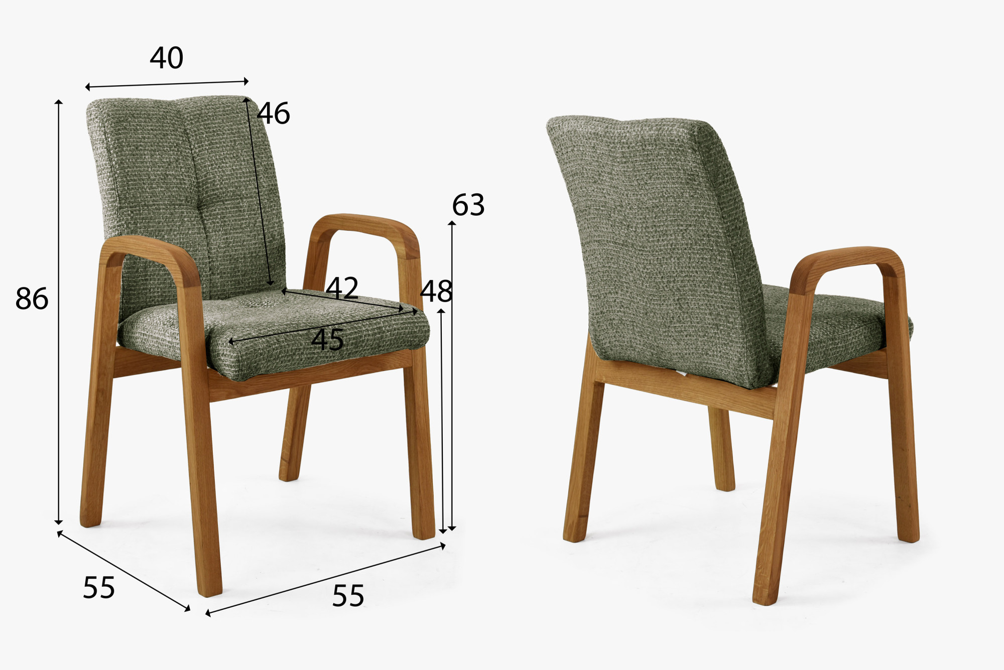 Eichenstuhl mit Armlehnen Ori – Gepolsterter Esszimmerstuhl aus Massivholz