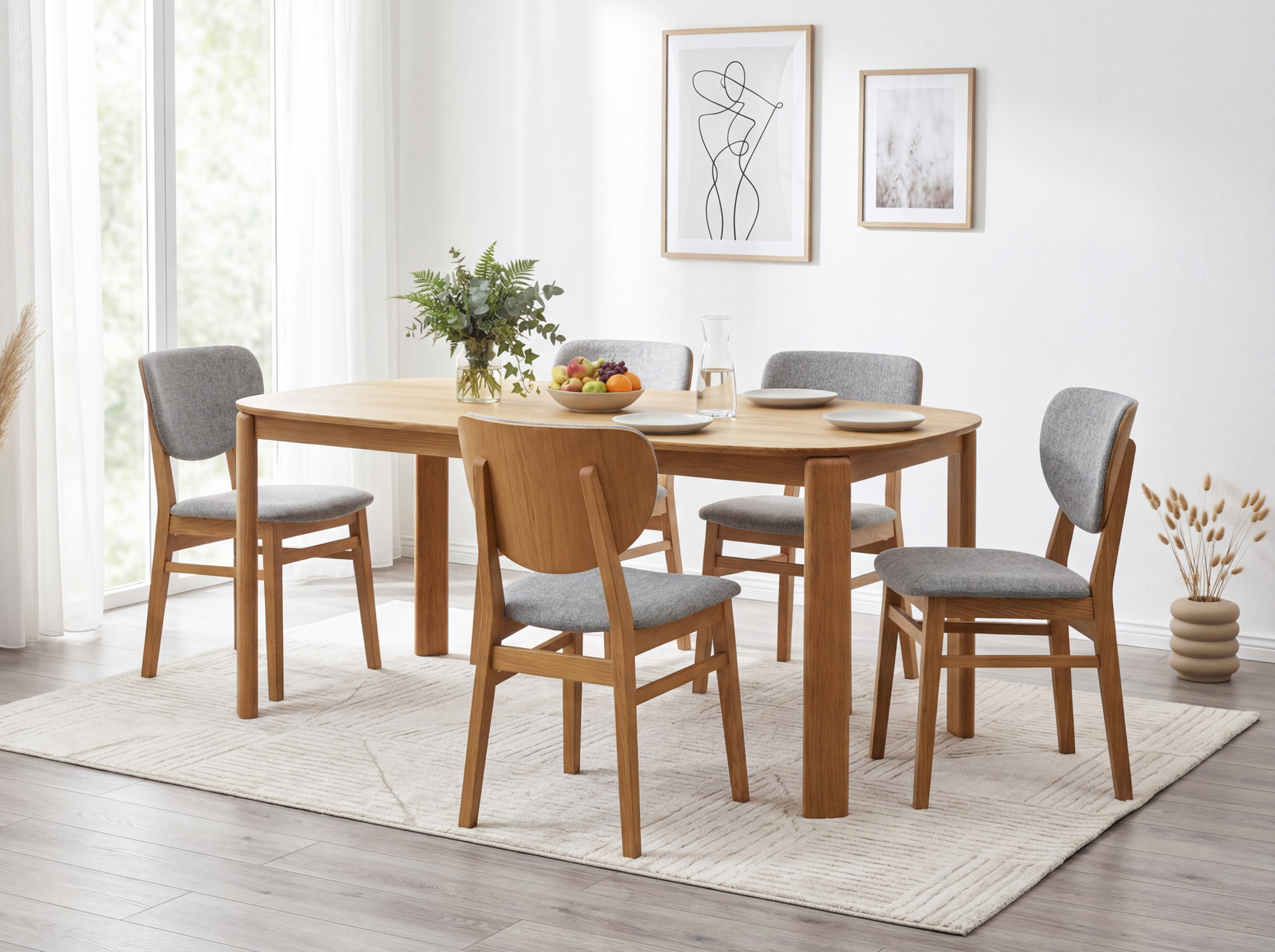 * Auf dem Bild Eichen-Esststuhl Barca und Tisch Robi