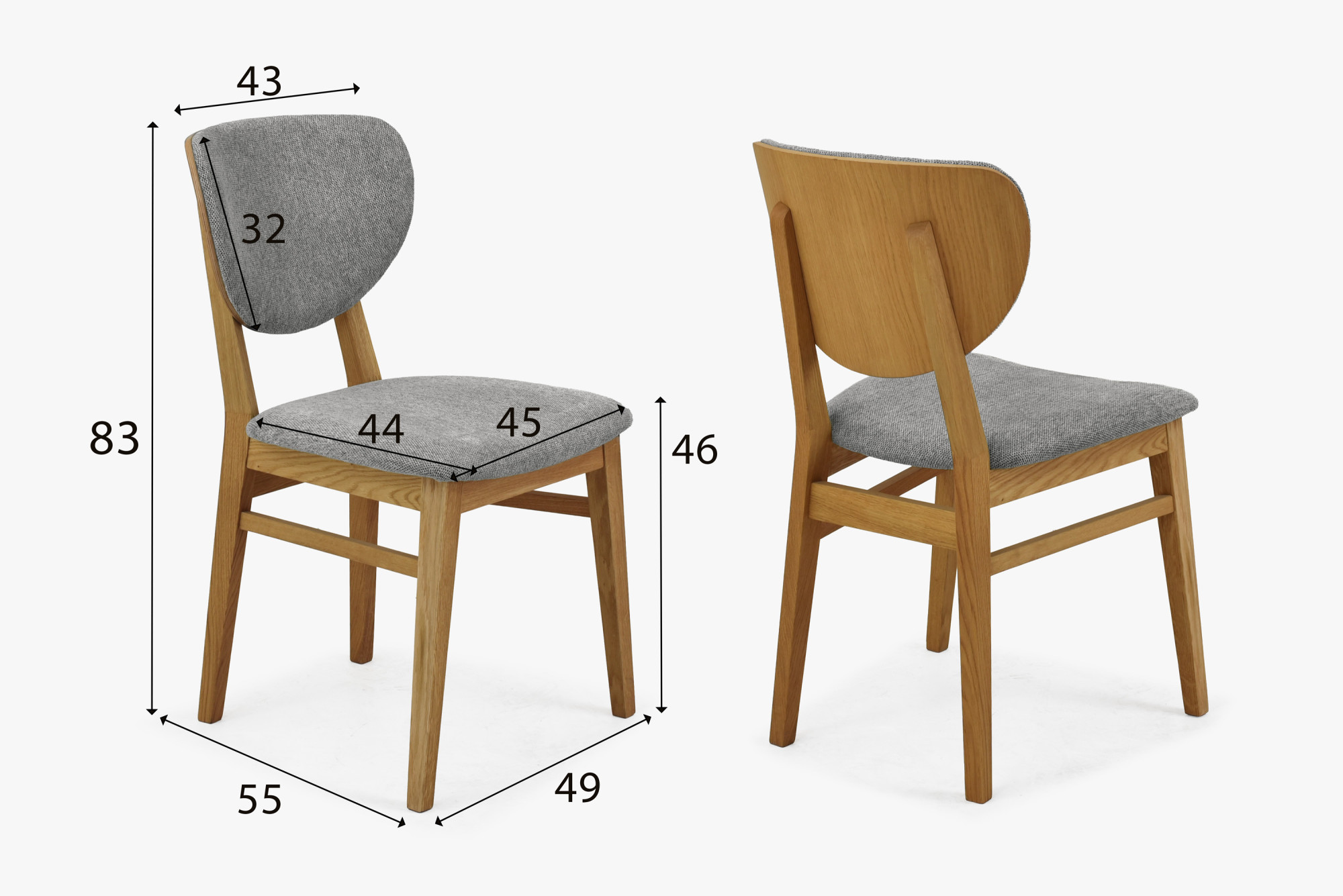 Eichen-Esststuhl Barca grau mit gepolstertem Sitz – hochwertiger Stoff Diosa easy clean