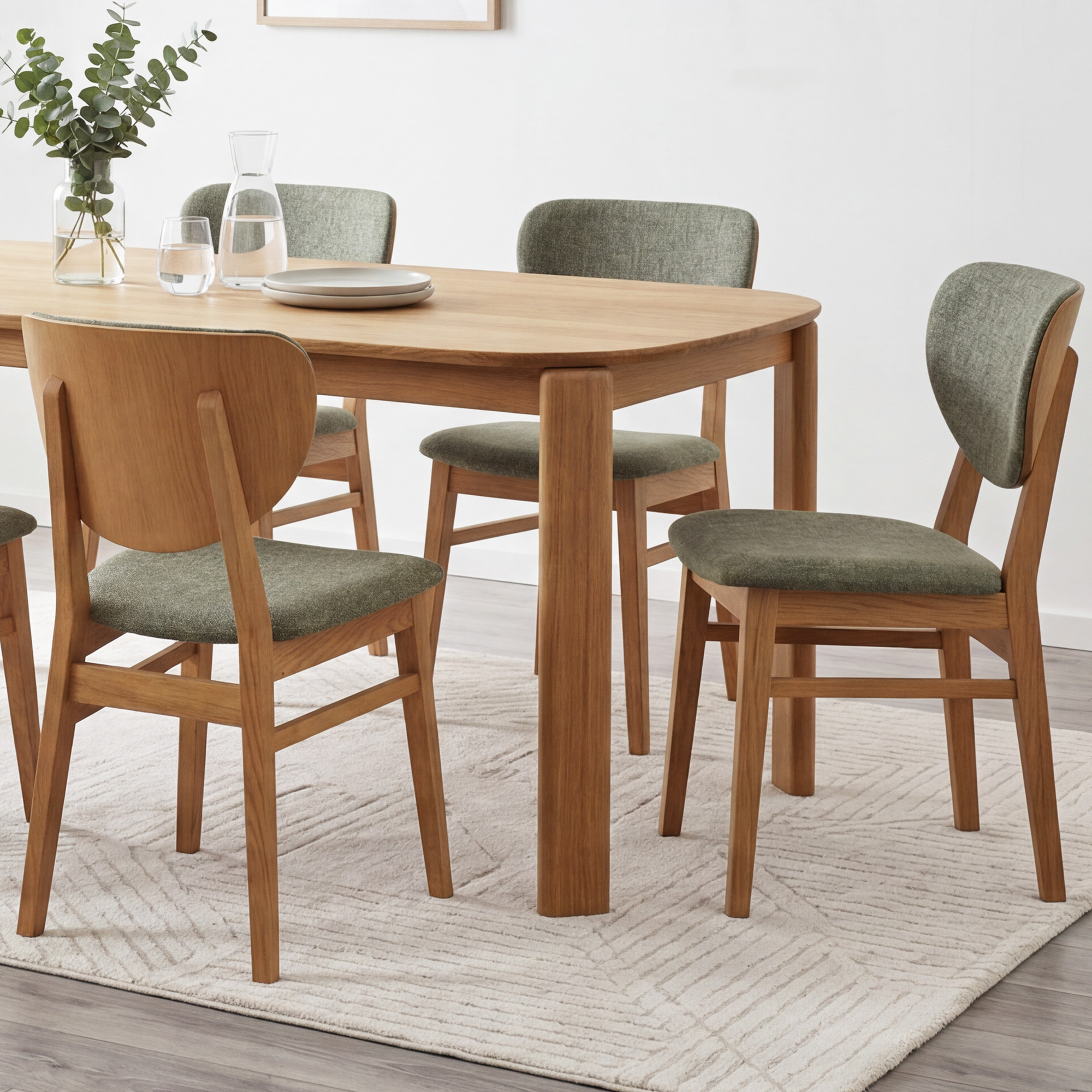 Eiche Esszimmerstuhl mit gepolstertem Sitz - Stoff grün easy clean