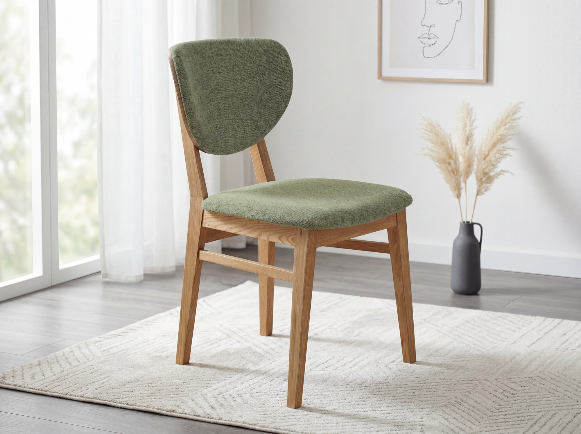 Eiche Esszimmerstuhl Barca grün mit gepolstertem Sitz – hochwertiger Stoff Diosa easy clean