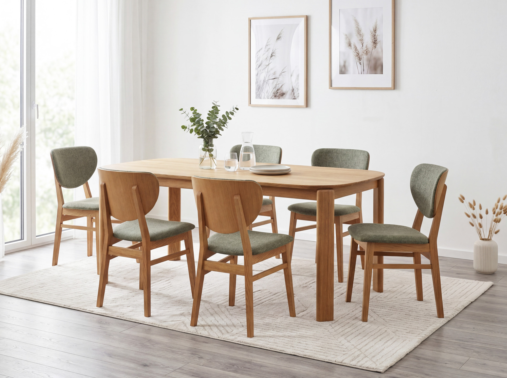 * Im Bild der Eiche Esszimmerstuhl Barca und der Tisch Robi