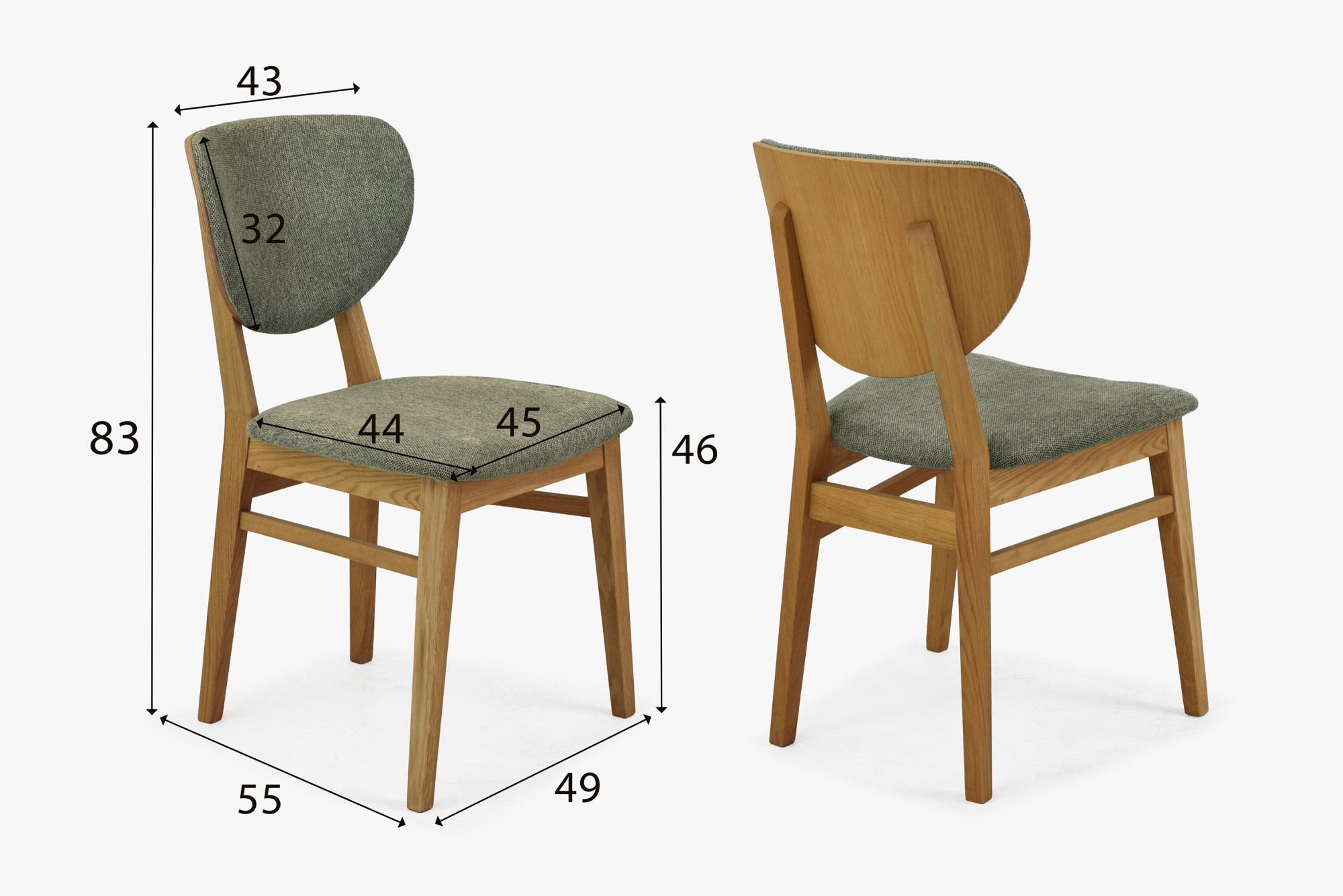 Der gesamte Stuhlrahmen ist aus massivem Eichenholz gefertigt, das mit naturbelassenem Öl im Farbton Natural behandelt wurde. Das Öl schützt die Holzoberfläche und betont gleichzeitig die natürliche Maserung der Eiche wunderschön. Dank der ergonomisch geformten gepolsterten Sitz- und Rückenfläche bietet der Stuhl Barca hohen Komfort, auch bei längerem Sitzen am Tisch. Mit einer Sitzhöhe von 45,5 cm und einer Gesamthöhe von 83 cm ist er ideal für die meisten Esstische. Der Stuhl wird bereits komplett montiert geliefert, sodass Sie ihn sofort nach der Lieferung nutzen können.