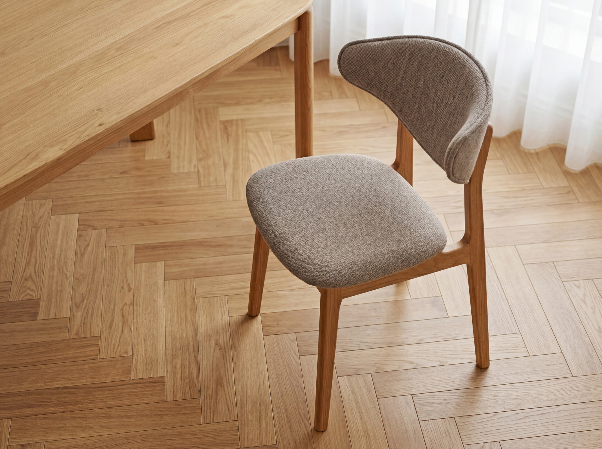 Die Beine bestehen aus massivem Eichenholz und sind mit natürlichem Öl behandelt, das die Oberfläche schützt und die natürliche Maserung hervorhebt. - Ist der Stuhl mit anderen Möbeln kombinierbar?