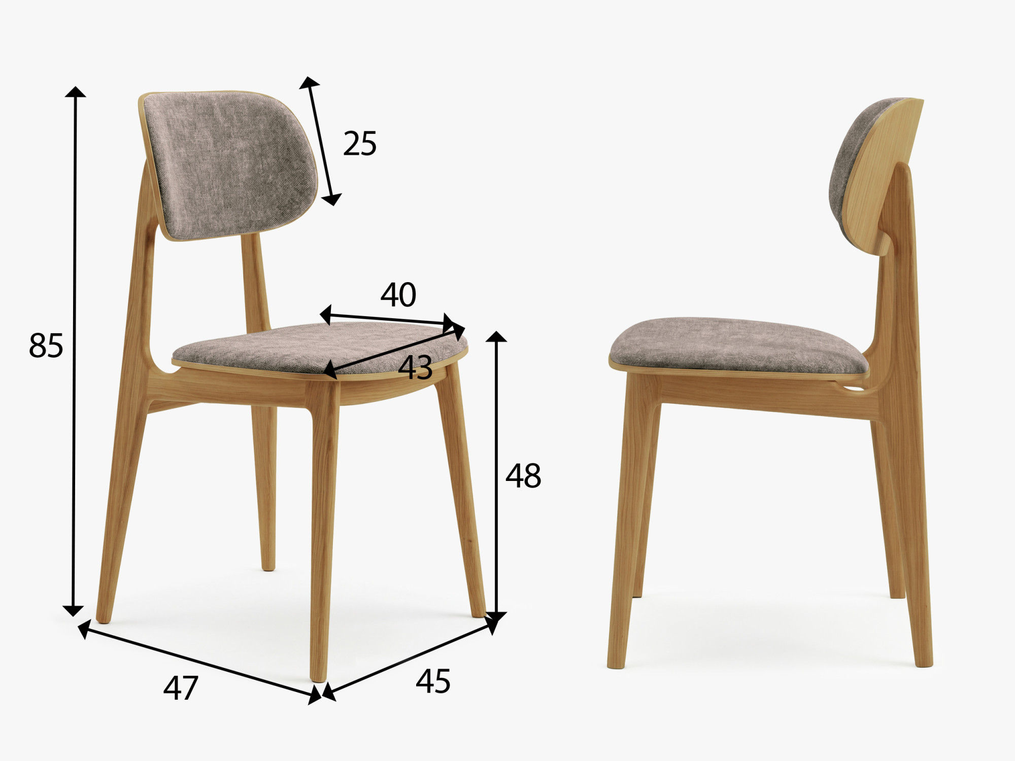 - Sitzhöhe 48 cm für bequemes Sitzen an standardmäßigen Esstischen.