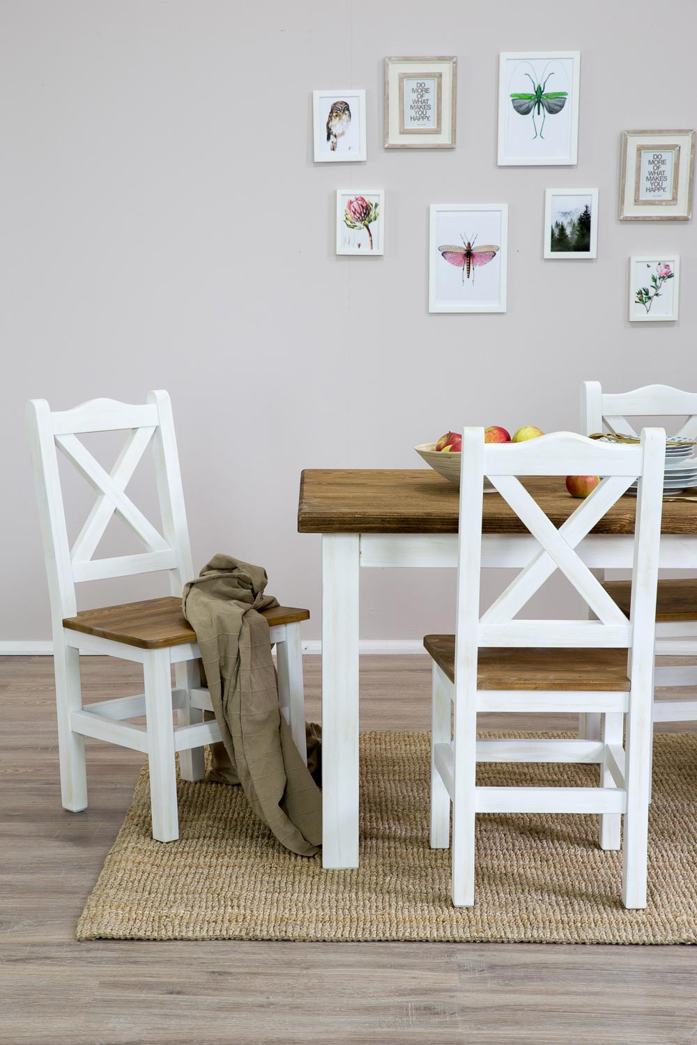Der provenzalische Stuhl hat eine stabile Konstruktion aus Kiefernmassivholz. Dieses ist unter anderem wegen seiner schönen Struktur und Flexibilität beliebt. In der Möbelherstellung zählt es zu den am häufigsten verwendeten Materialien.