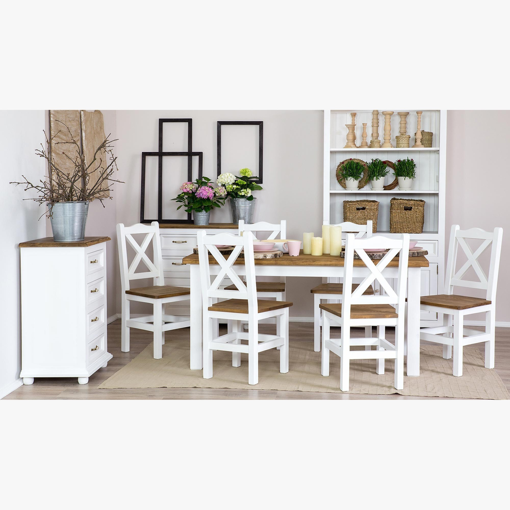Sie können ihn auch im Rahmen des kompletten Esszimmer-Sets Provence erwerben oder einen Esstisch aus unserem Angebot wählen. Der provenzalische Esszimmerstuhl ist Teil der gesamten Provence-Kollektion, sodass Sie weitere Möbel in diesem Stil kaufen können. Für das Esszimmer eignen sich zum Beispiel hervorragend ein Besteckschrank oder eine Kommode. Mit mehreren Elementen derselben Kollektion schaffen Sie im Esszimmer einen absolut einzigartigen, stilvollen Raum!