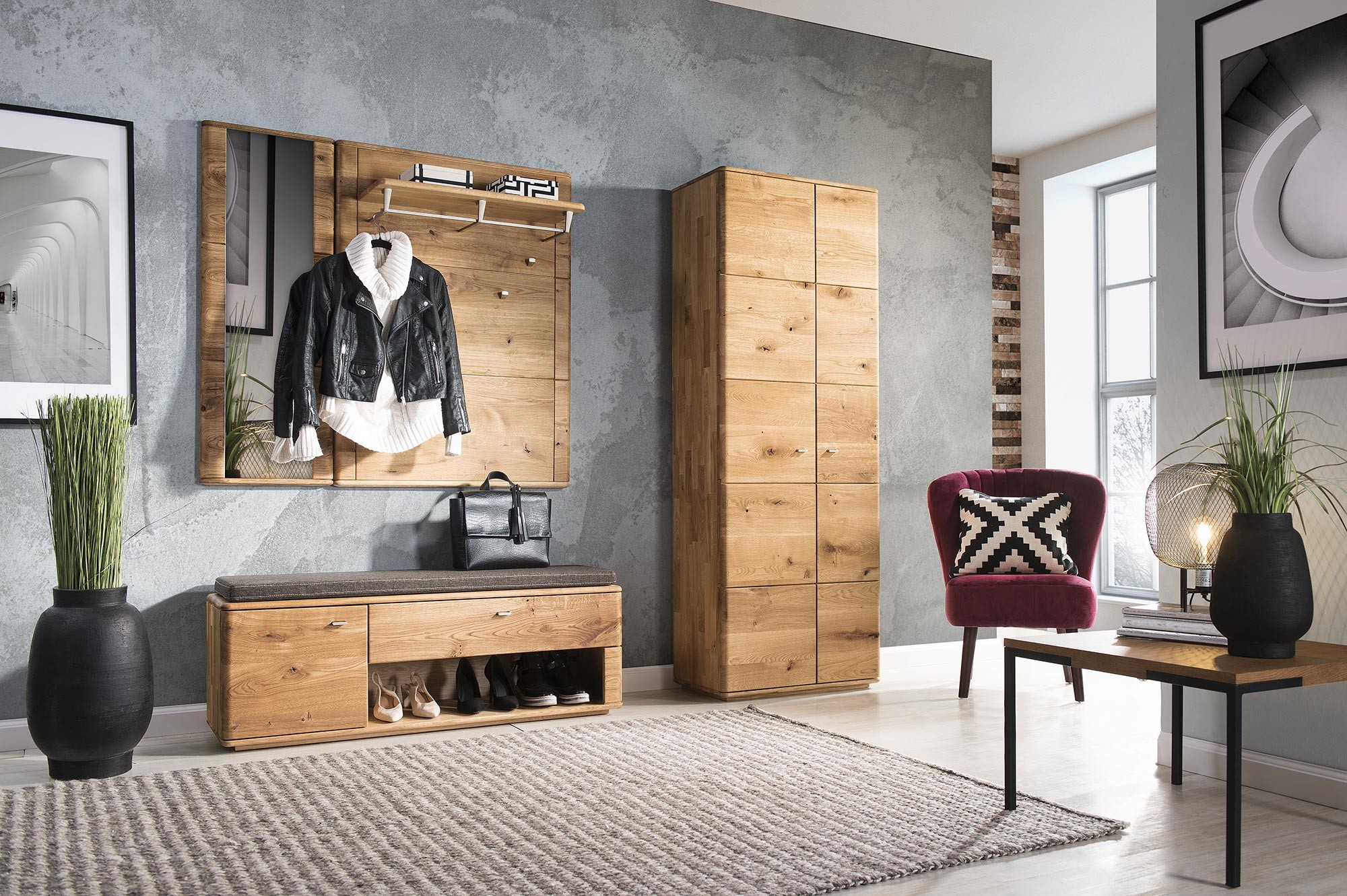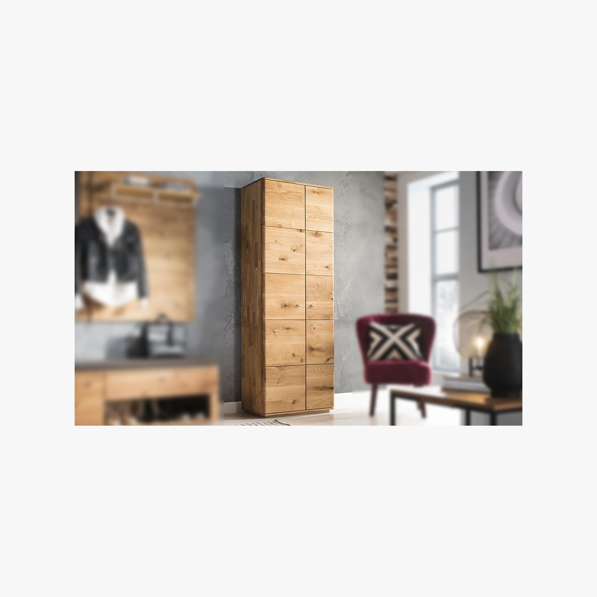 1 x Flurschrank aus massivem Eichenholz, Texas 01