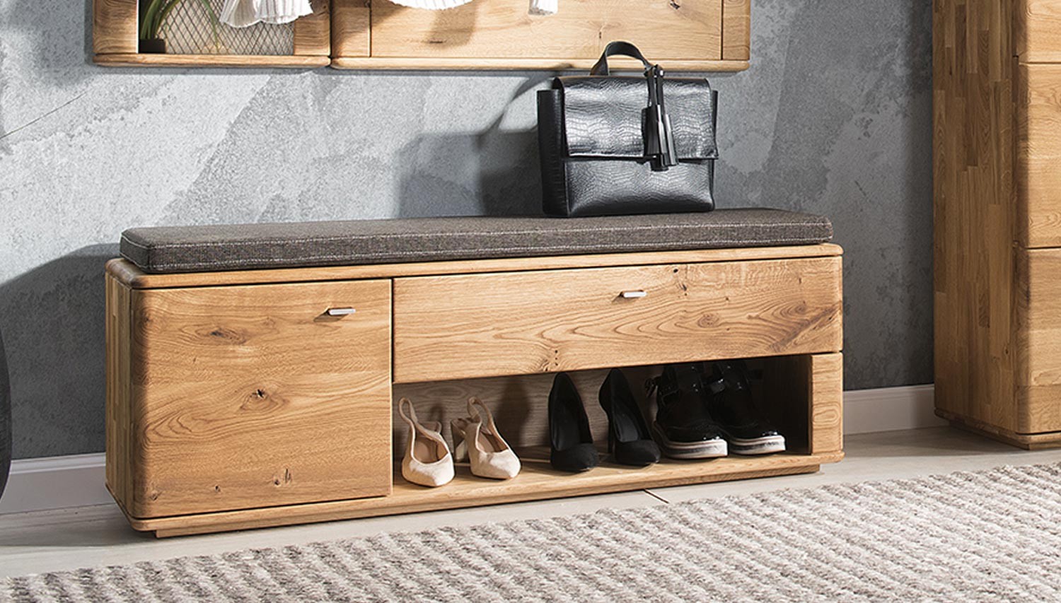 Massive Eichenholz Flurbank mit Soft-Close, naturfarben