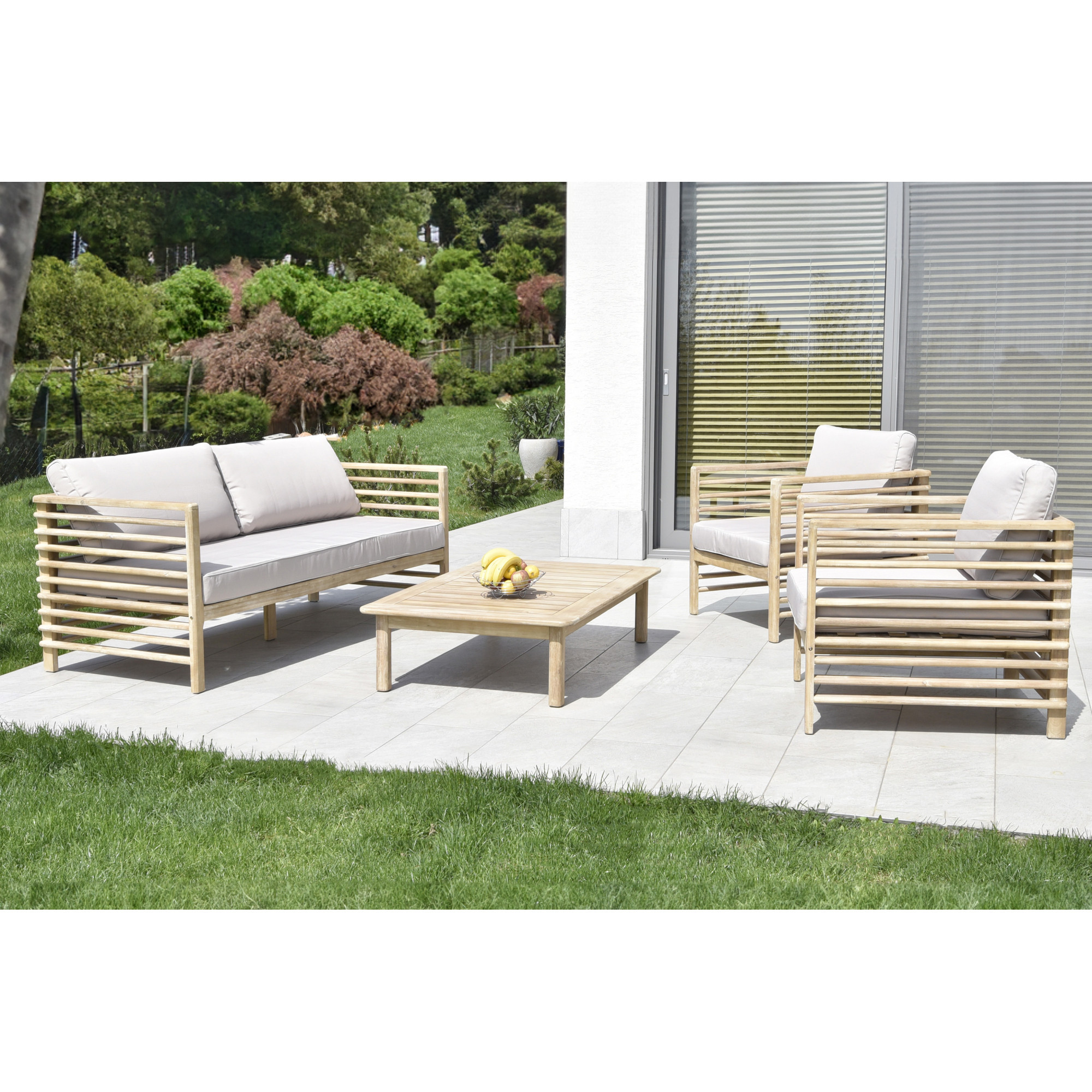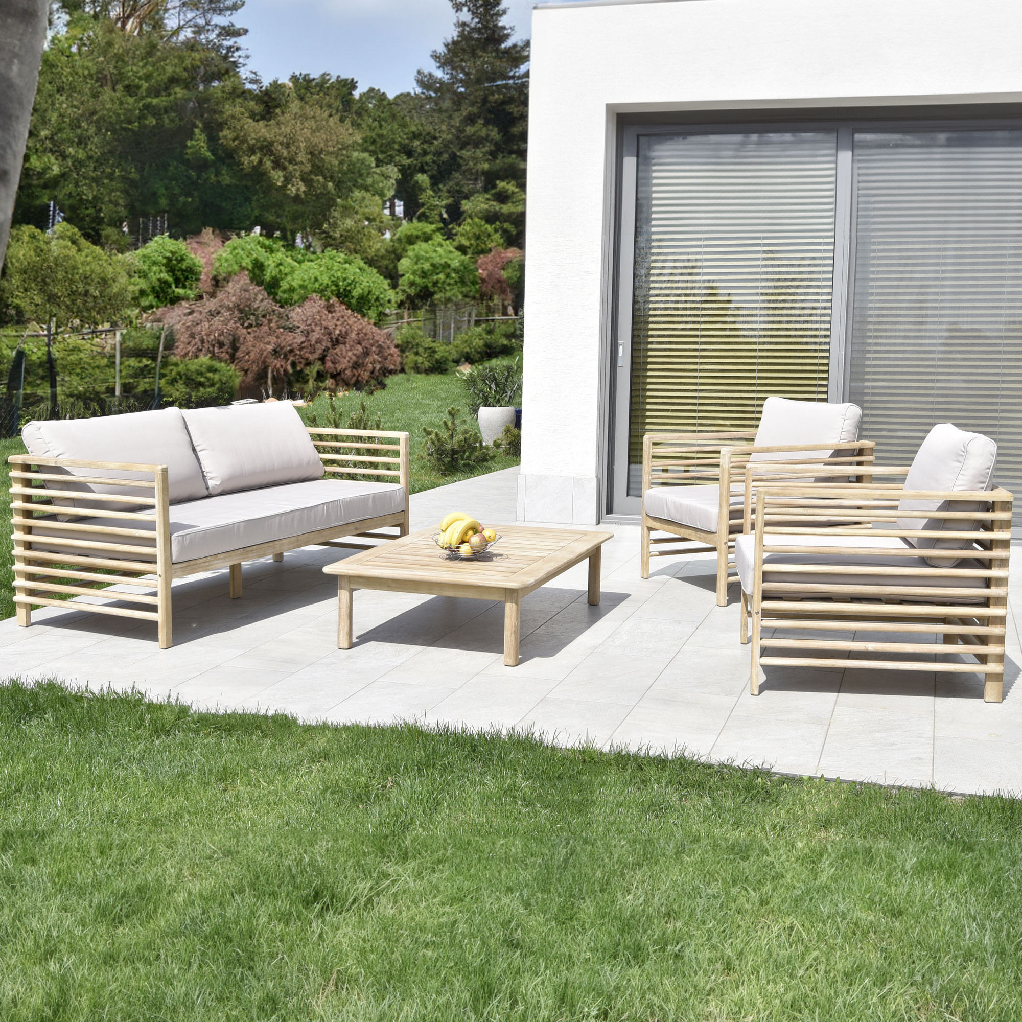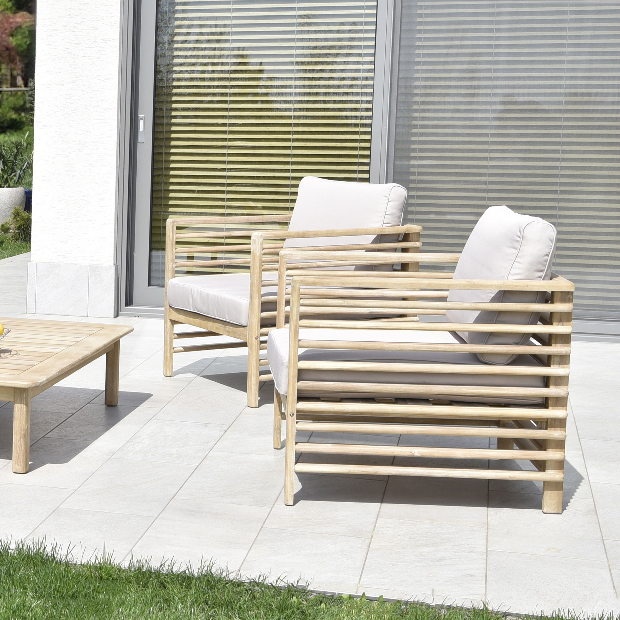 Gartgarnitur Akazienholz hell 2 Sessel Bank Couchtisch Set
