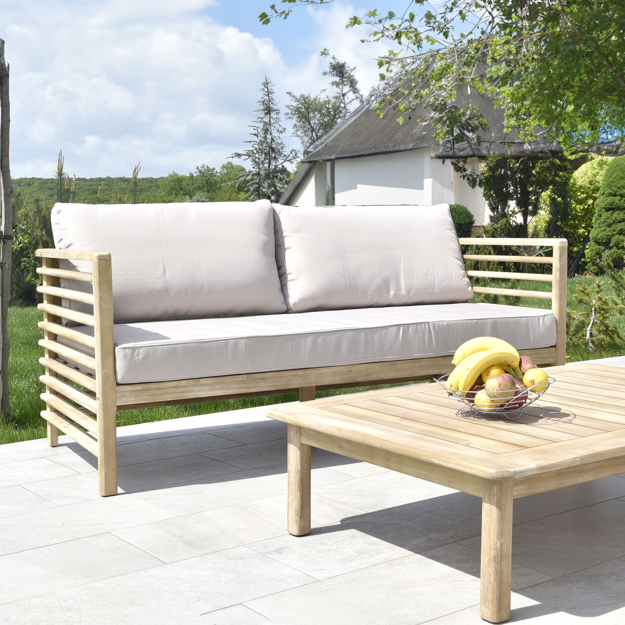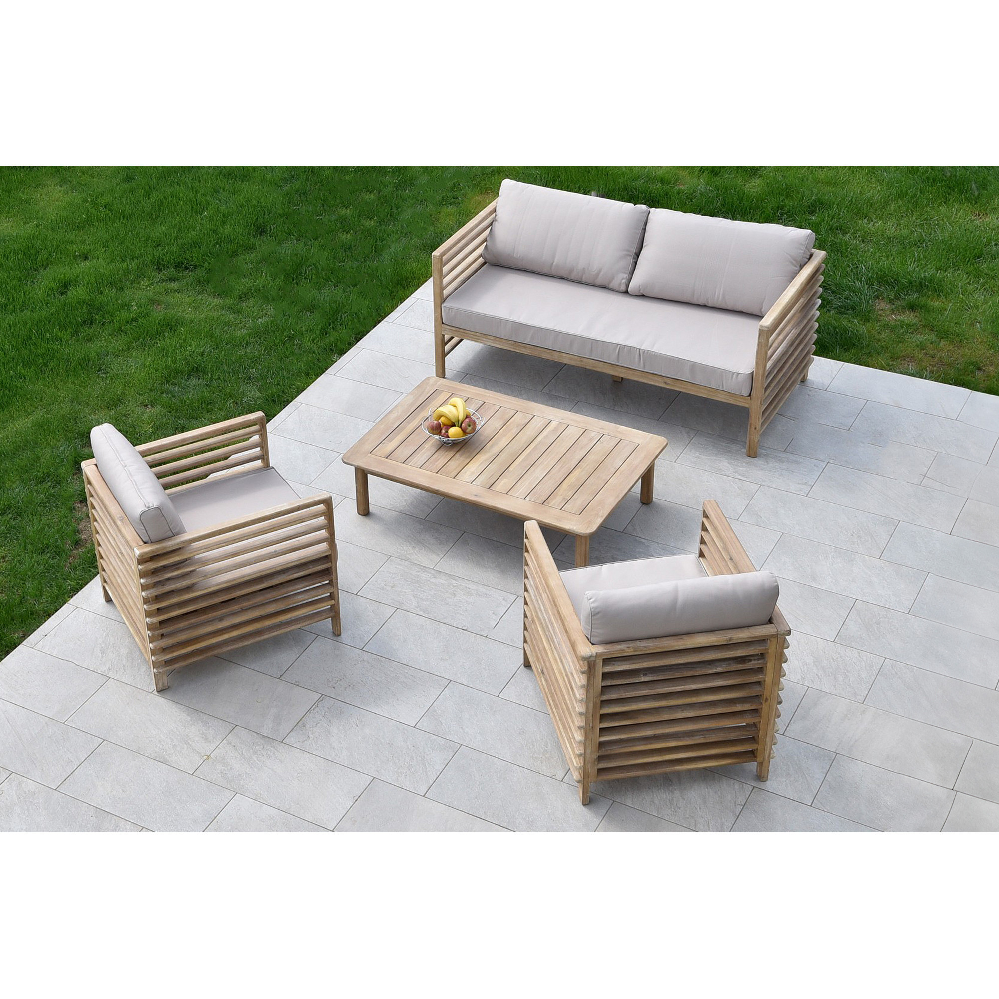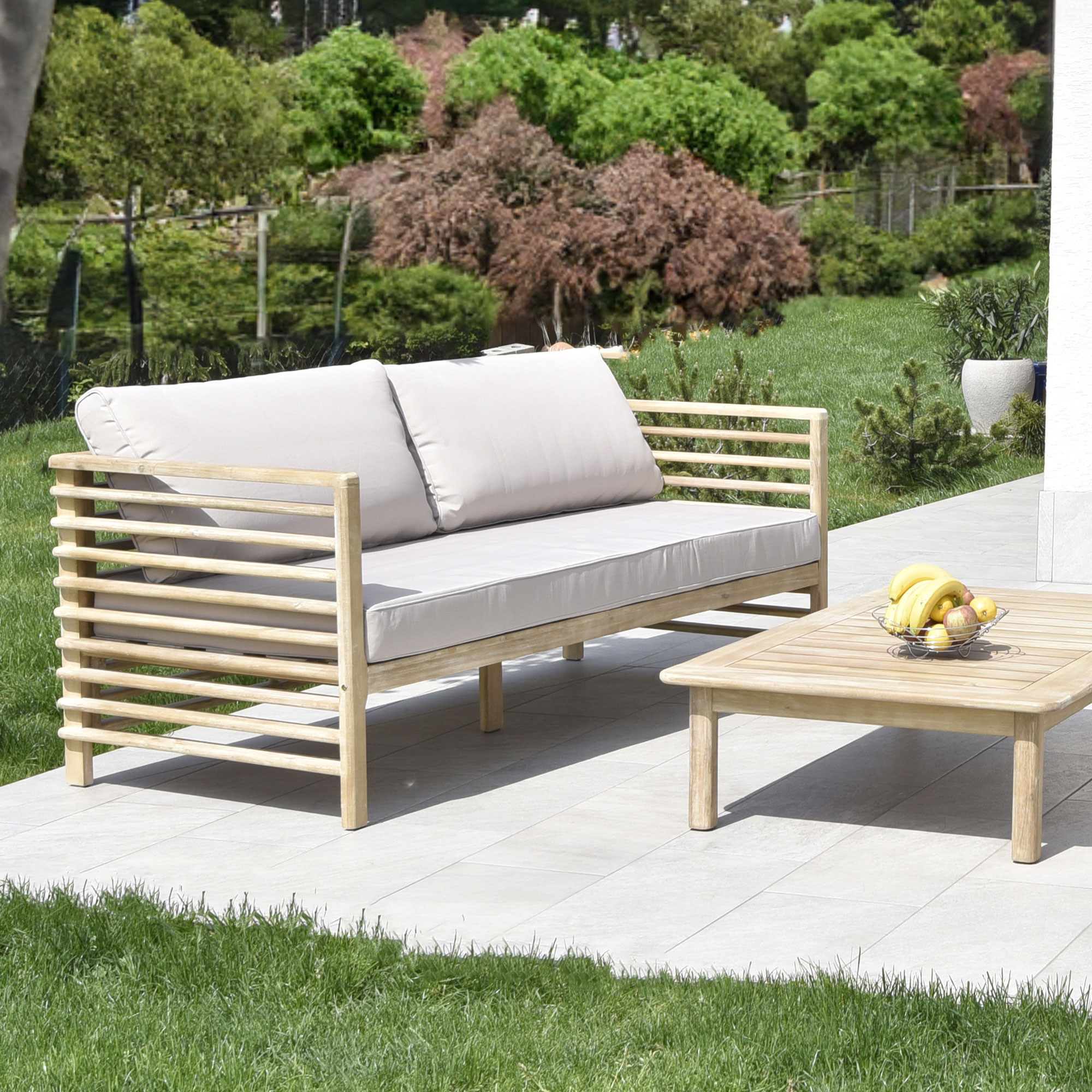 Gartgarnitur Akazienholz hell 2 Sessel Bank Couchtisch Set