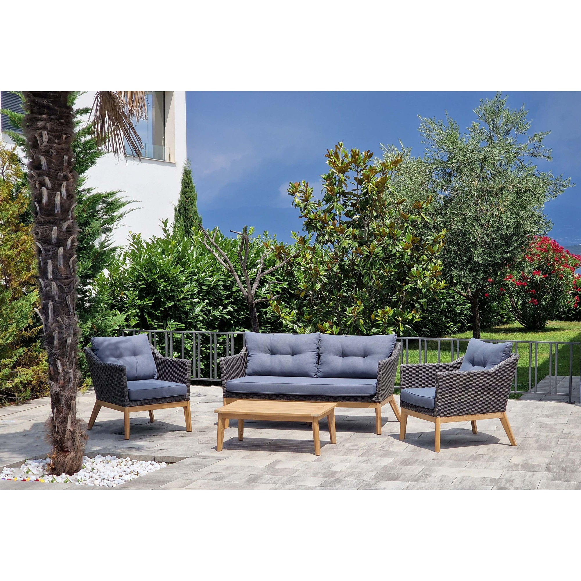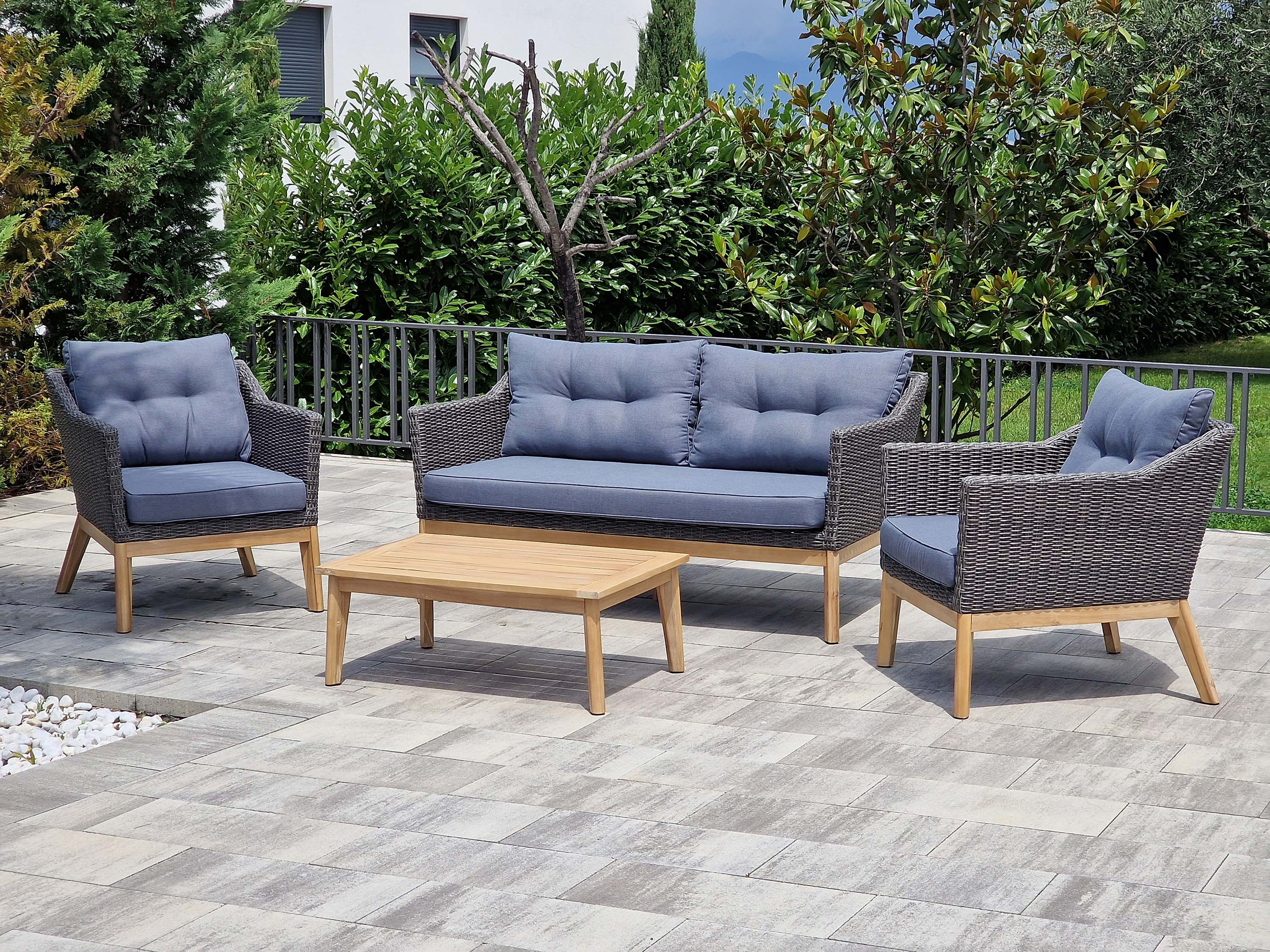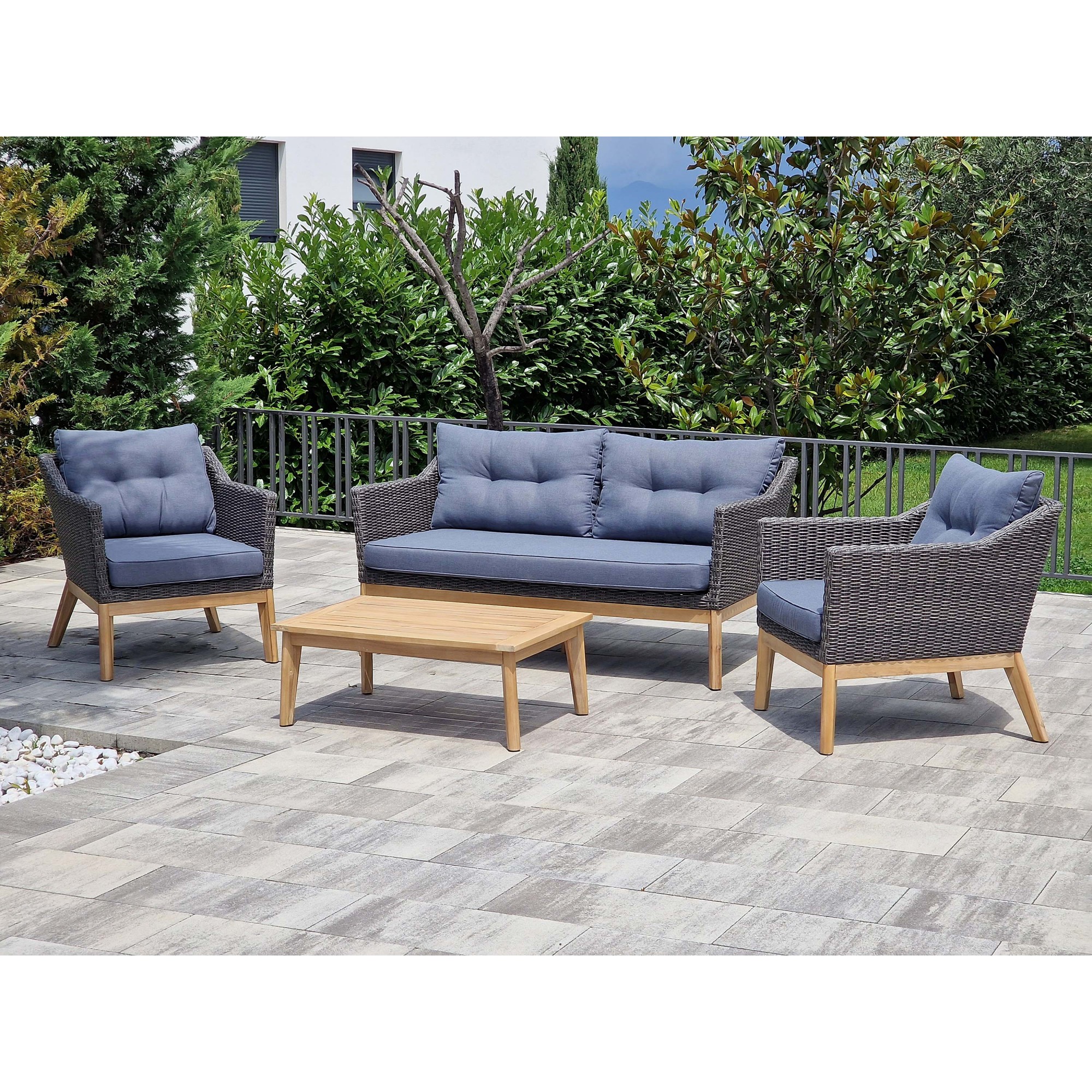 Rattan Gartensitzgruppe 4-teilig dunkelgrau mit Kissen