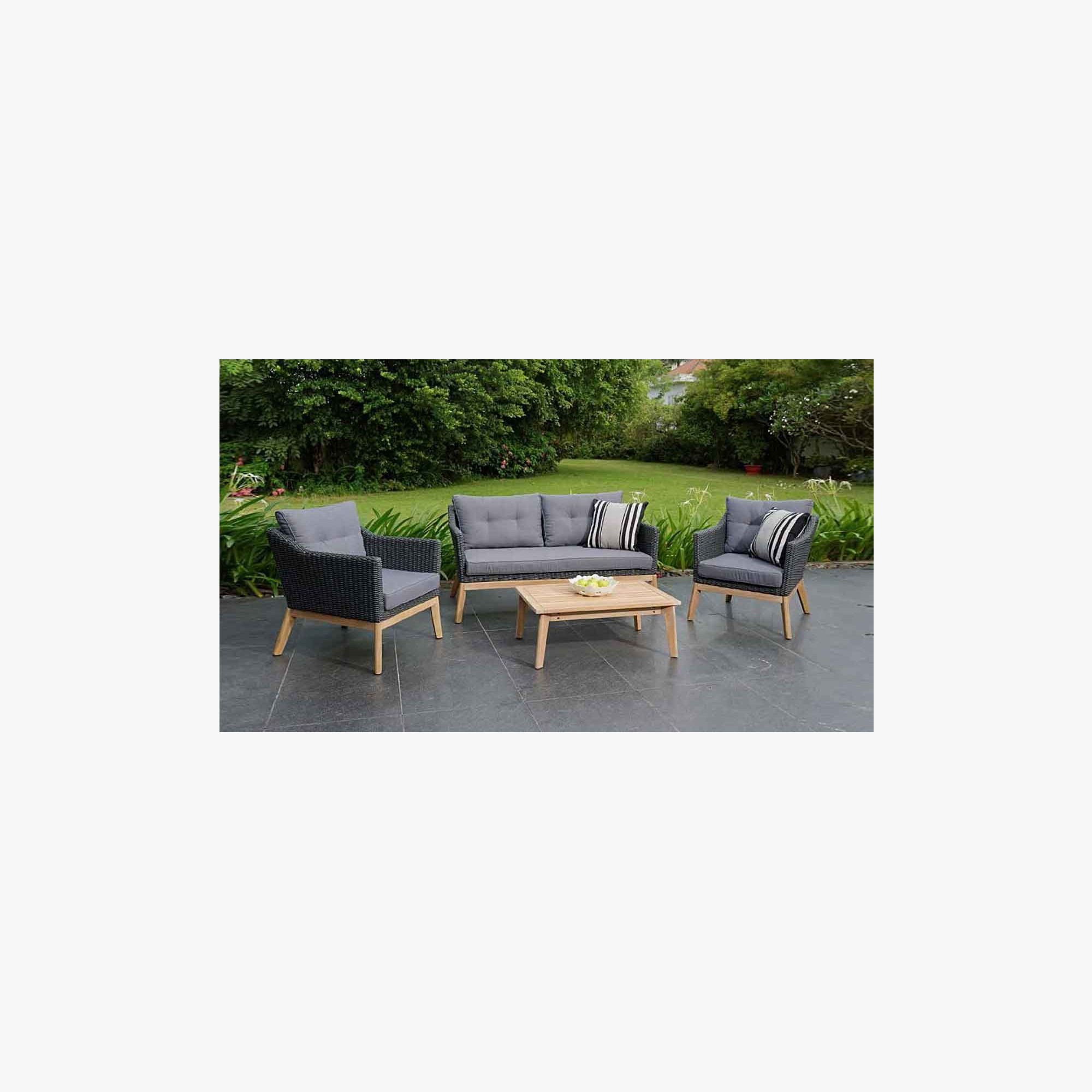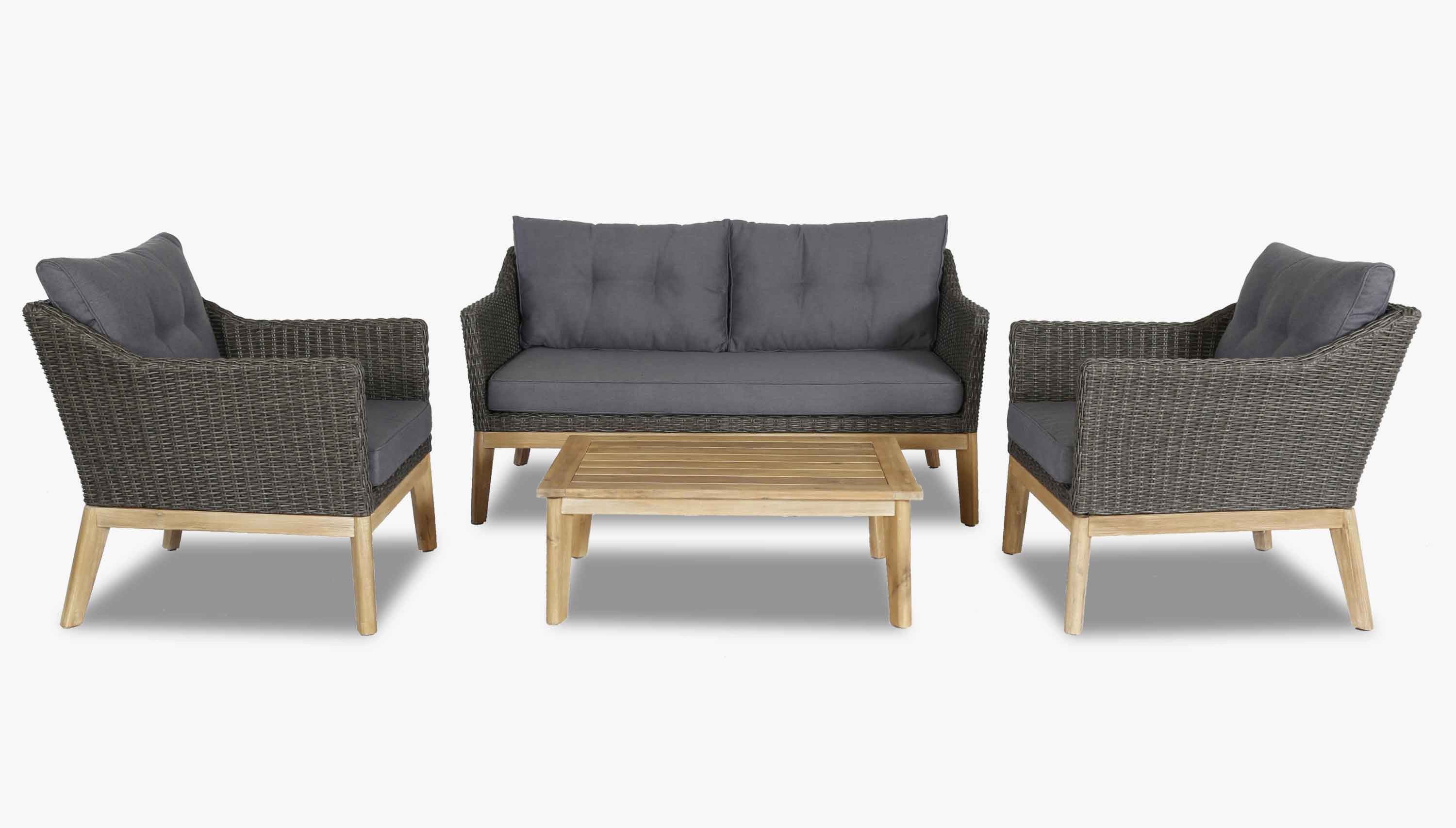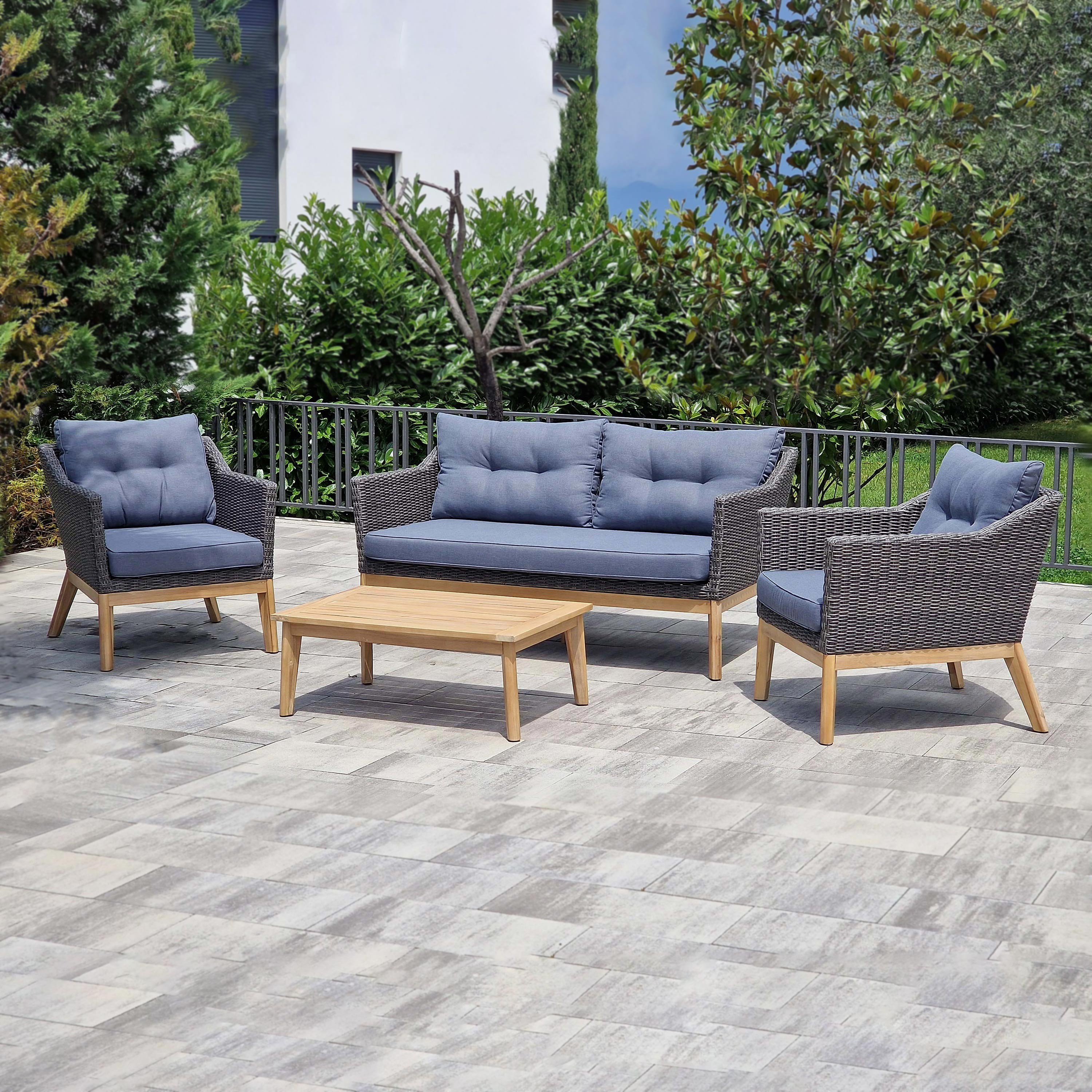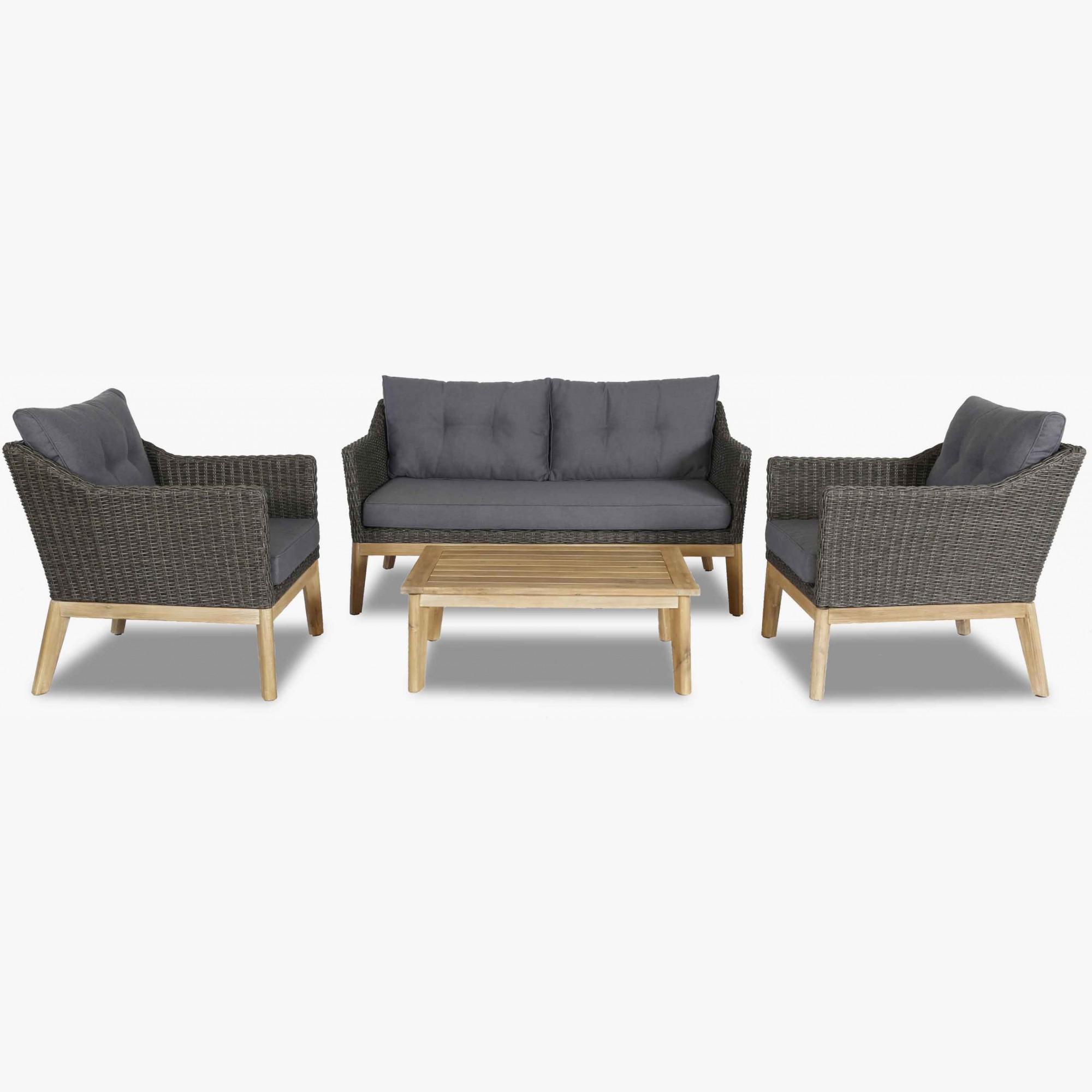 Rattan Gartensitzgruppe 4-teilig dunkelgrau mit Kissen