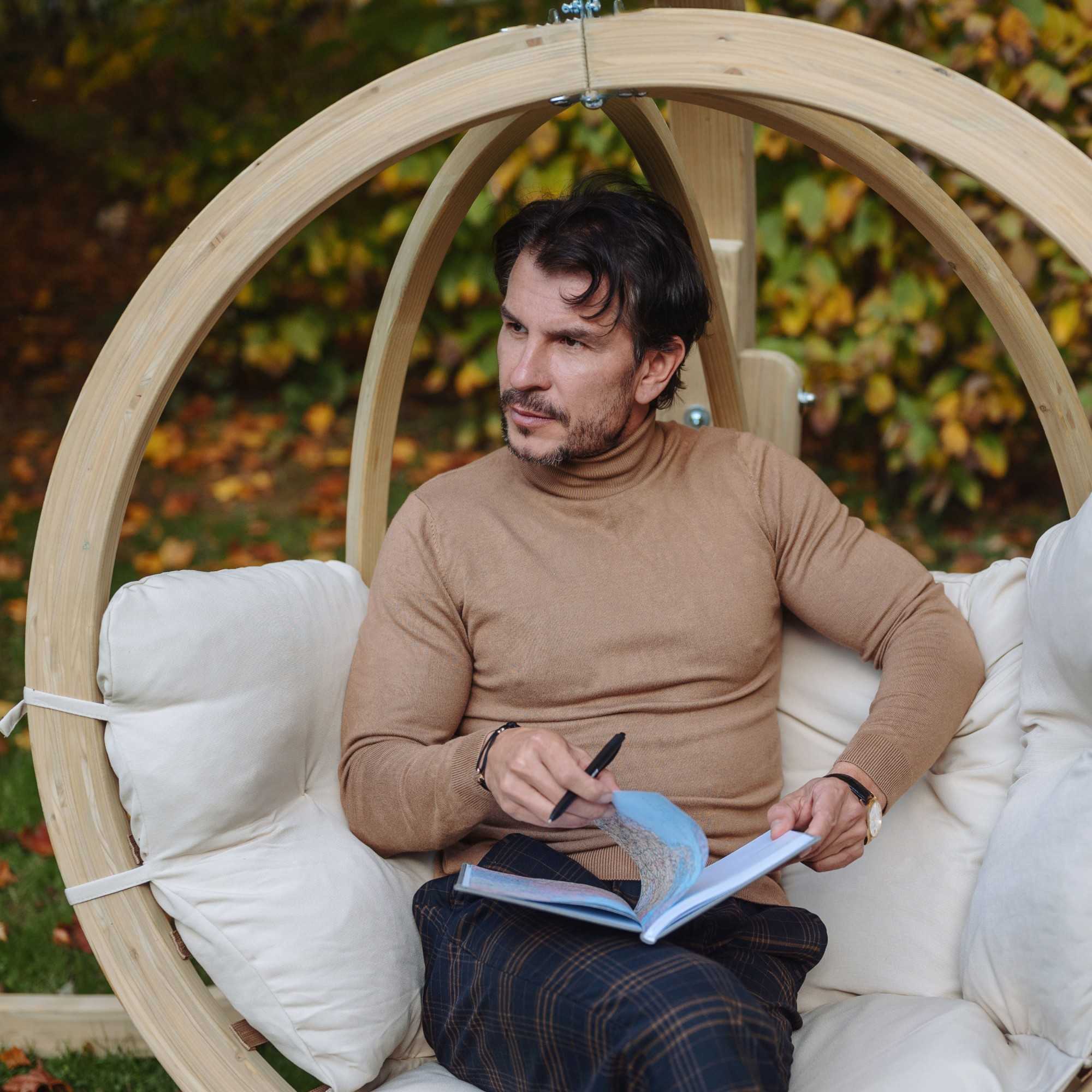 Erleben Sie Gemütlichkeit im Schaukelstuhl aus unserem E-Shop. Auswahlmöglichkeit der Kissenfarbe. Der bequeme Schaukelstuhl bietet Ihnen ein perfektes Erlebnis und Entspannung. Hergestellt aus Fichtenholz. Das Holz ist mit einem speziellen Mittel gegen Feuchtigkeit, Schimmel und Schädlinge oberflächlich behandelt. Korbgröße 120 Durchmesser cm. Der Sitzteil des Korbes besteht aus 100% Baumwolle.