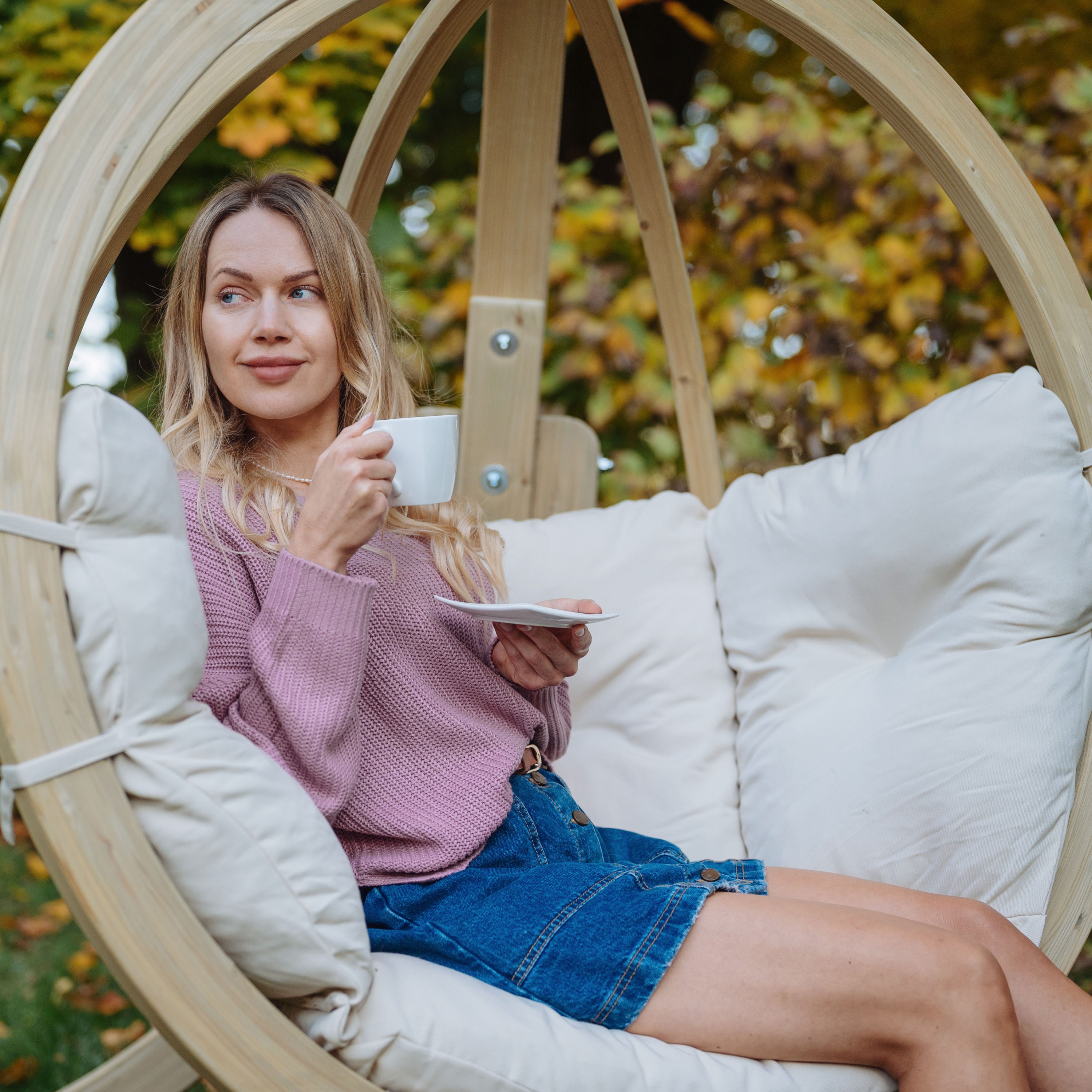 1x Hängesessel: 120x75x120cm (B×T×H), Belastbarkeit 130kg inklusive Kissen mit waschbarem Bezug