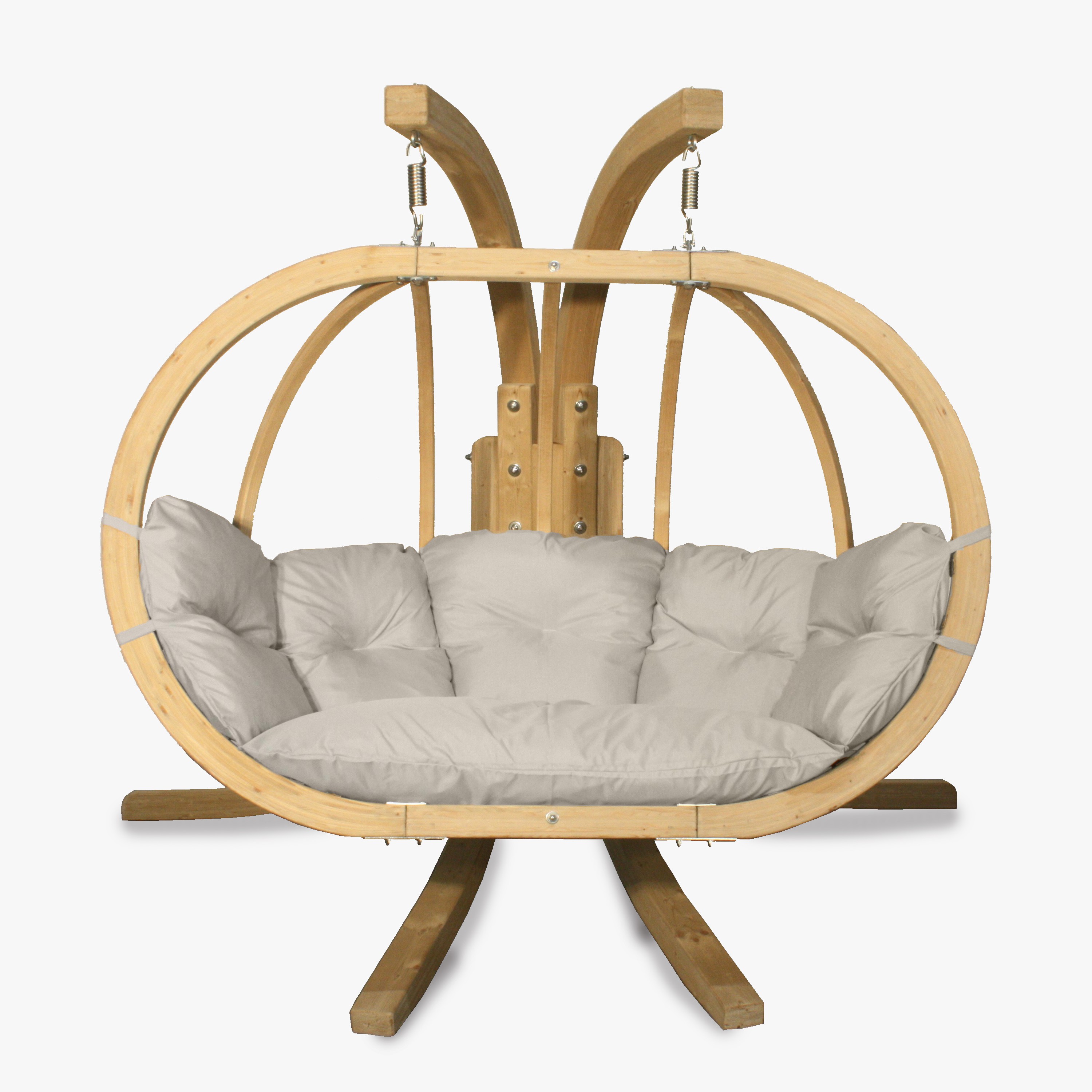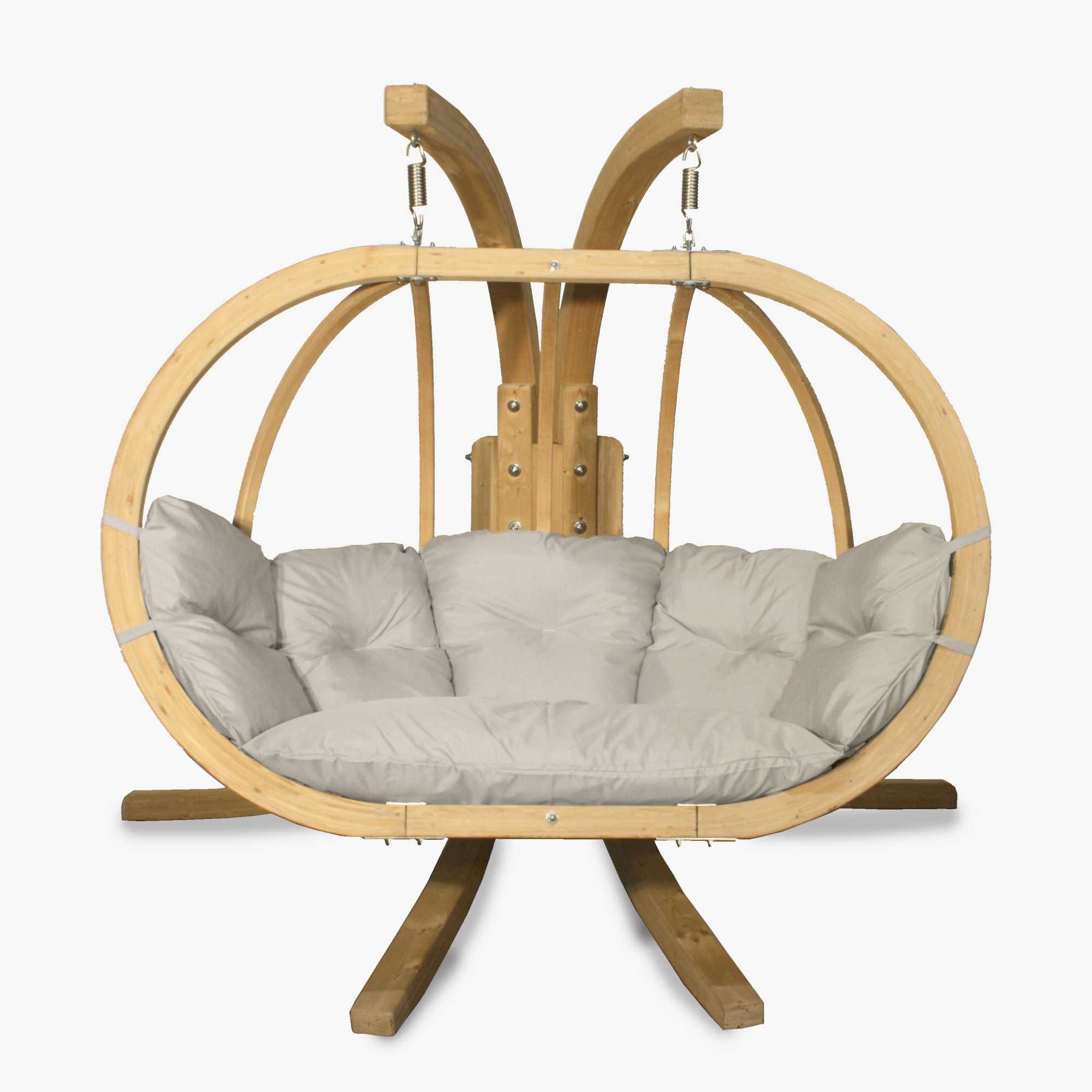 Hängesessel Katka XL mit Kissen. Er besticht durch sein einzigartiges Design und den Komfort bei der Nutzung. Er ist aus widerstandsfähigen Materialien höchster Qualität gefertigt. Der Stuhl bietet bequem Platz für 2 Personen und wird für alle Jahreszeiten sowie für alle Arten von Innen- und Gartengestaltungen empfohlen. Er eignet sich hervorragend als Rückzugsort im Wohnzimmer, auf der Terrasse oder im Garten, aber auch in Hotels, Cafés oder SPA-Bereichen. Der Rahmen des Korbs und des Ständers ist aus imprägniertem Schichtfichtenholz gefertigt. Der Stuhl ist mit einem bequemen Kissen ausgestattet, gefüllt mit PUR-Schaum und bezogen mit 100% Polyesterstoff Cleanaboo, der schmutzabweisend ist.