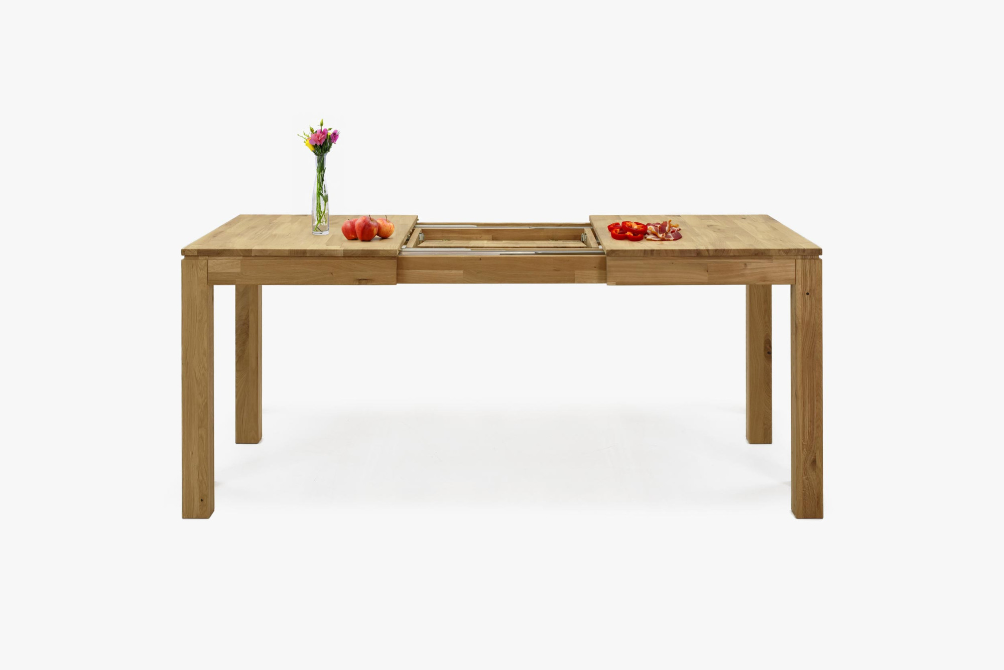 Der Mechanismus ist in der Konstruktion verborgen. Sie ziehen einfach die Tischplatte heraus und vergrößern die Abmessung auf 170 × 80 cm.