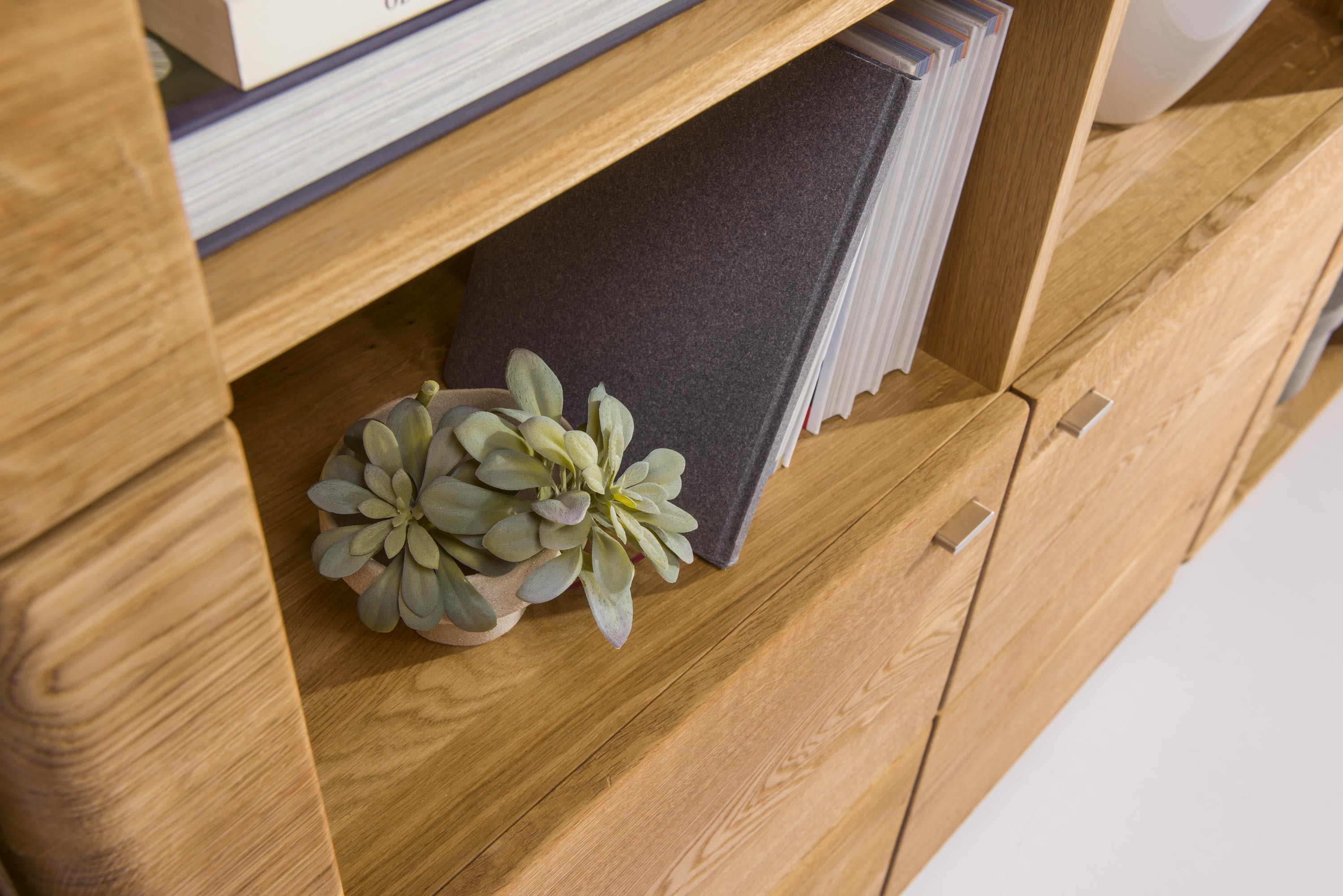 Luxuriöses Eichenregal Texas bietet genau so viel Stauraum, wie Sie benötigen. Genau so viel Ablagefläche, wie Sie nutzen. Es repräsentiert durch sein Aussehen. Mit seiner Praktikabilität begeistert es jeden, der sich entscheidet, es nach Hause zu holen. Wenn Sie die Kommode Texas erwerben, holen Sie sich auch ein Stück Natur ins Haus. Sie ist nämlich 100% natürlich, hergestellt aus sorgfältig ausgewähltem Naturholz. Von der natürlichen Verarbeitung werden Sie sowohl optisch als auch haptisch überzeugt. Greifen Sie einfach danach, schauen Sie es sich an. Natürliche Unvollkommenheiten des Holzes, wie Äste und unterschiedliche Risse, bleiben erhalten, um das perfekte Erscheinungsbild von Naturmöbeln zu gewährleisten. Die Kommode bietet eine oberste Ablagefläche, die Sie erreichen können.