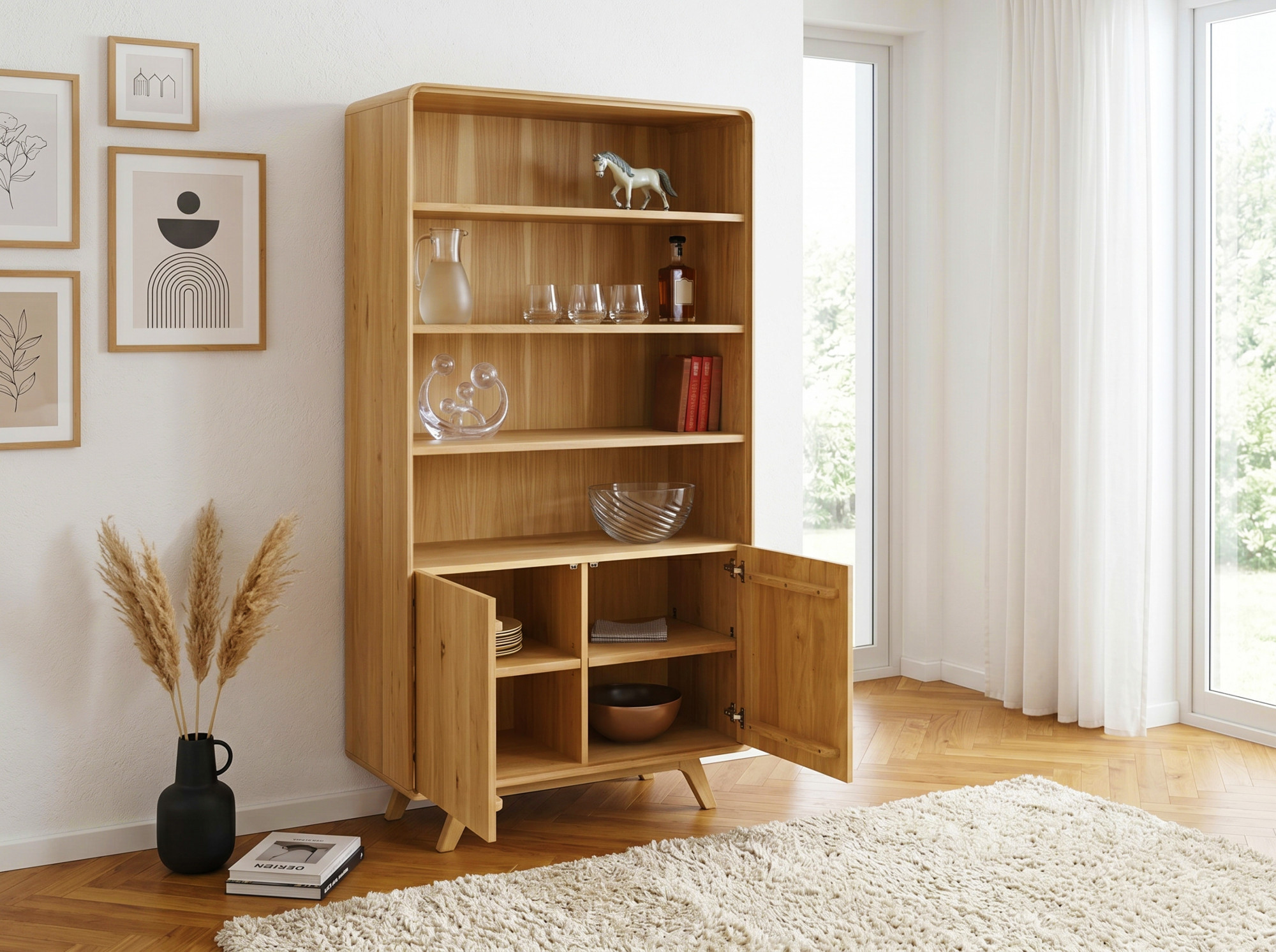 - 4 offene Regalböden für Bücher, Glas, Dekoration und persönliche Dinge