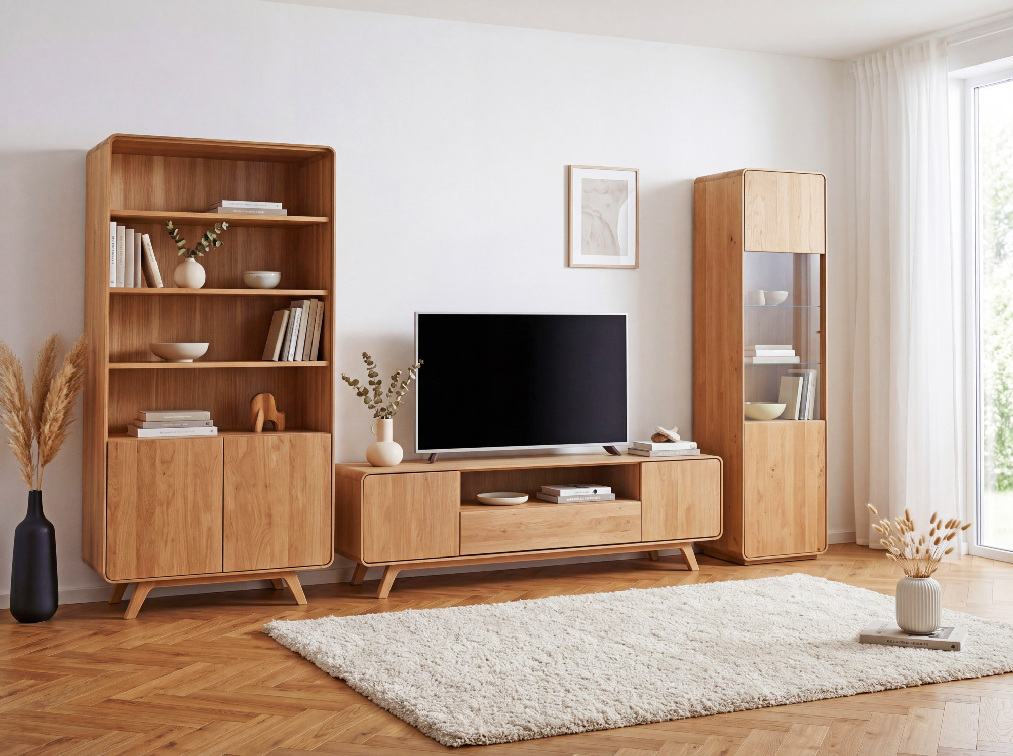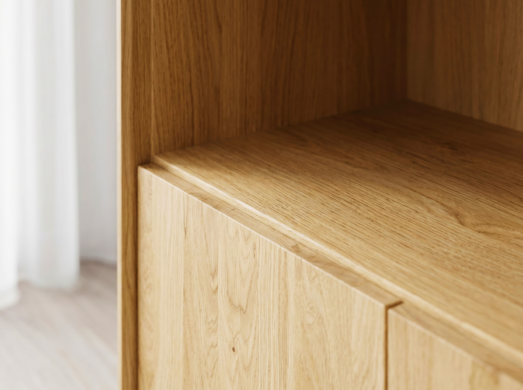 - Farbton Eiche natur, der dem Interieur ein natürliches und zeitloses Aussehen verleiht