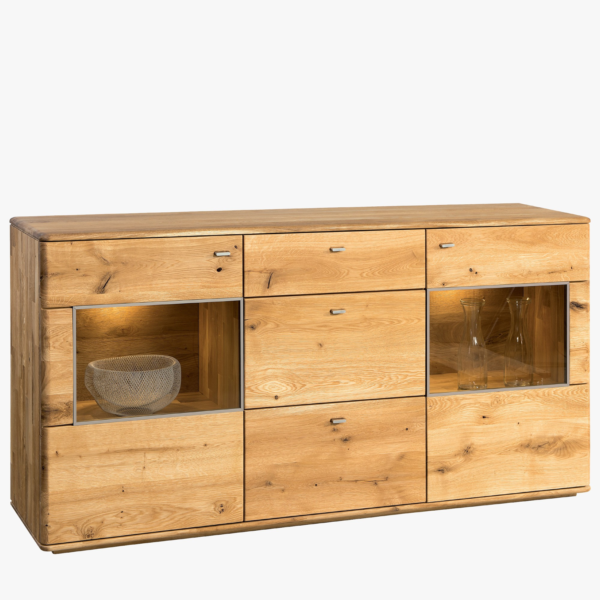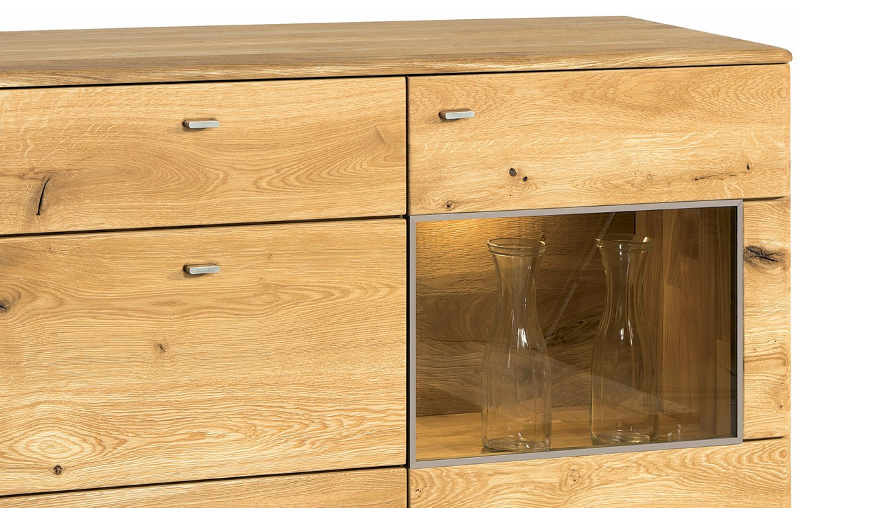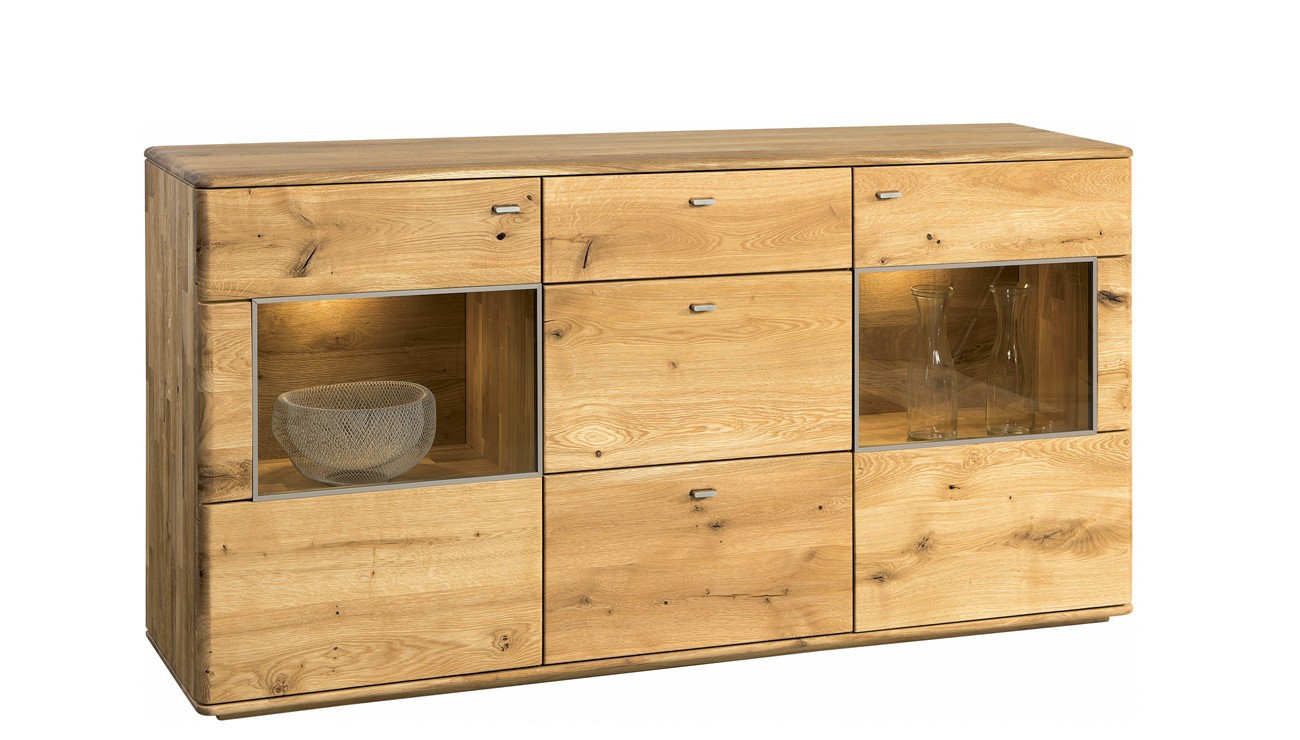 Kommode Texas Eiche natural mit Schubladen und Glastüren