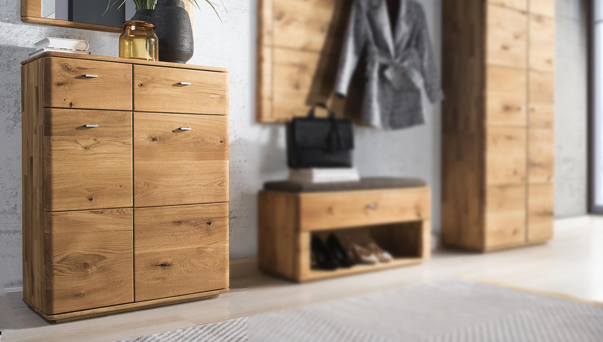 Kommode - Eiche Massiv Schuhschrank, Texas 10