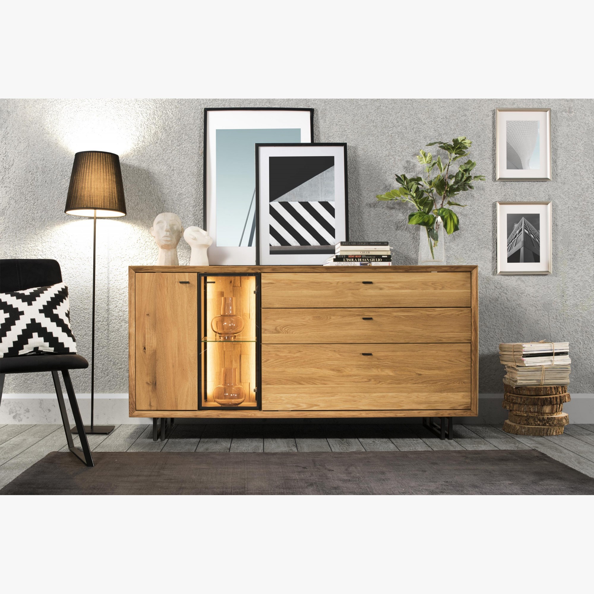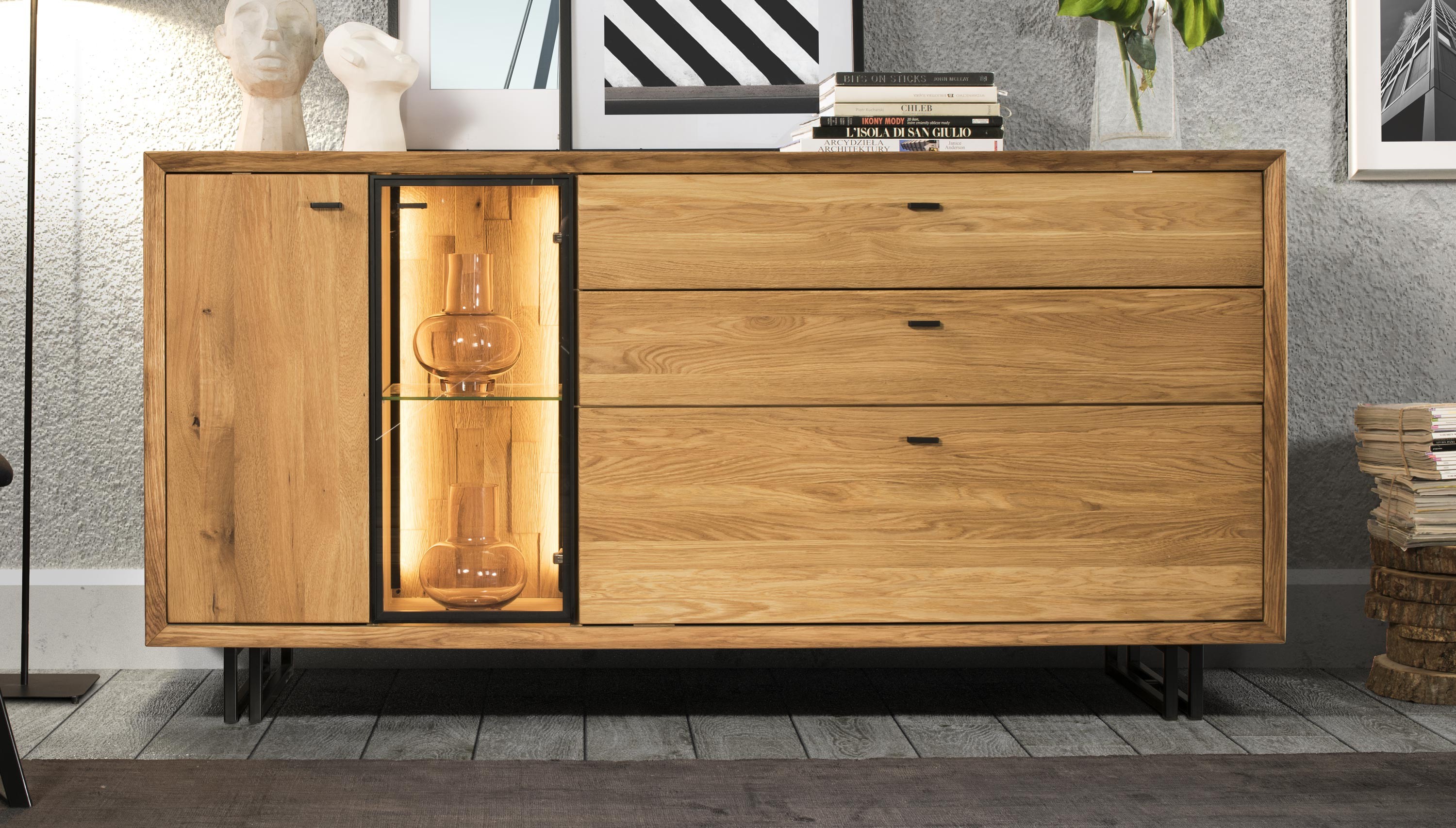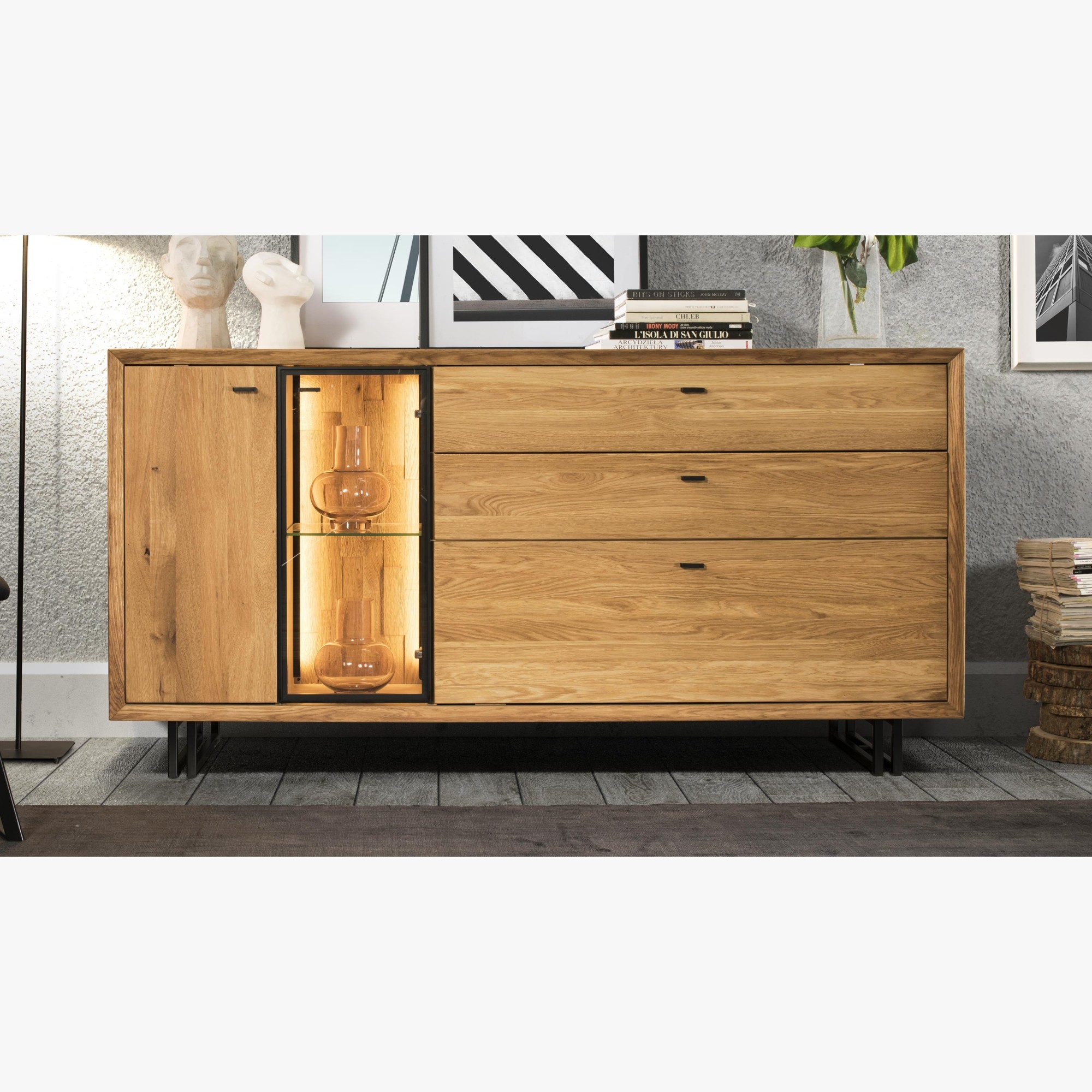 Große Eichenkommode auf Metallbeinen, Vilo 49
