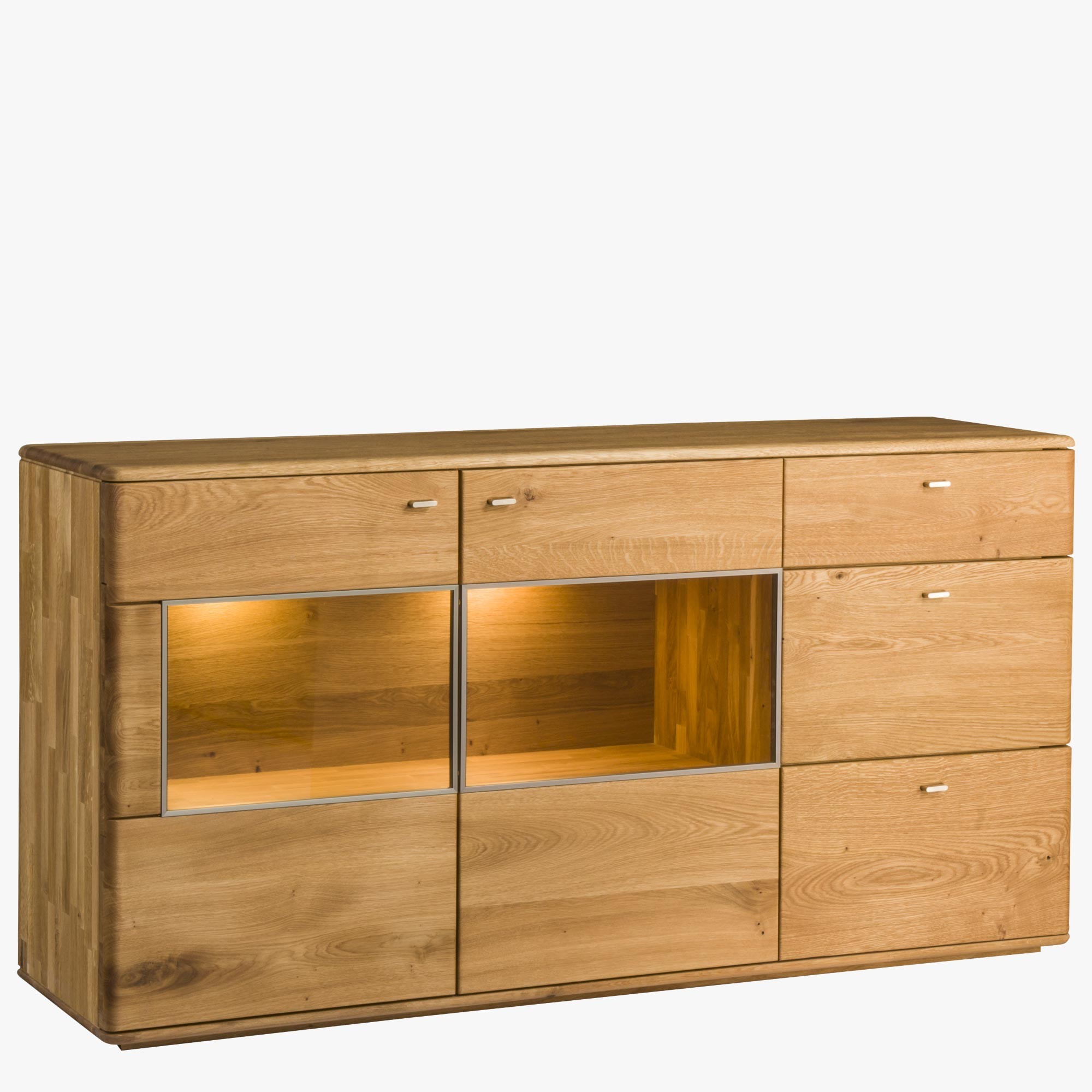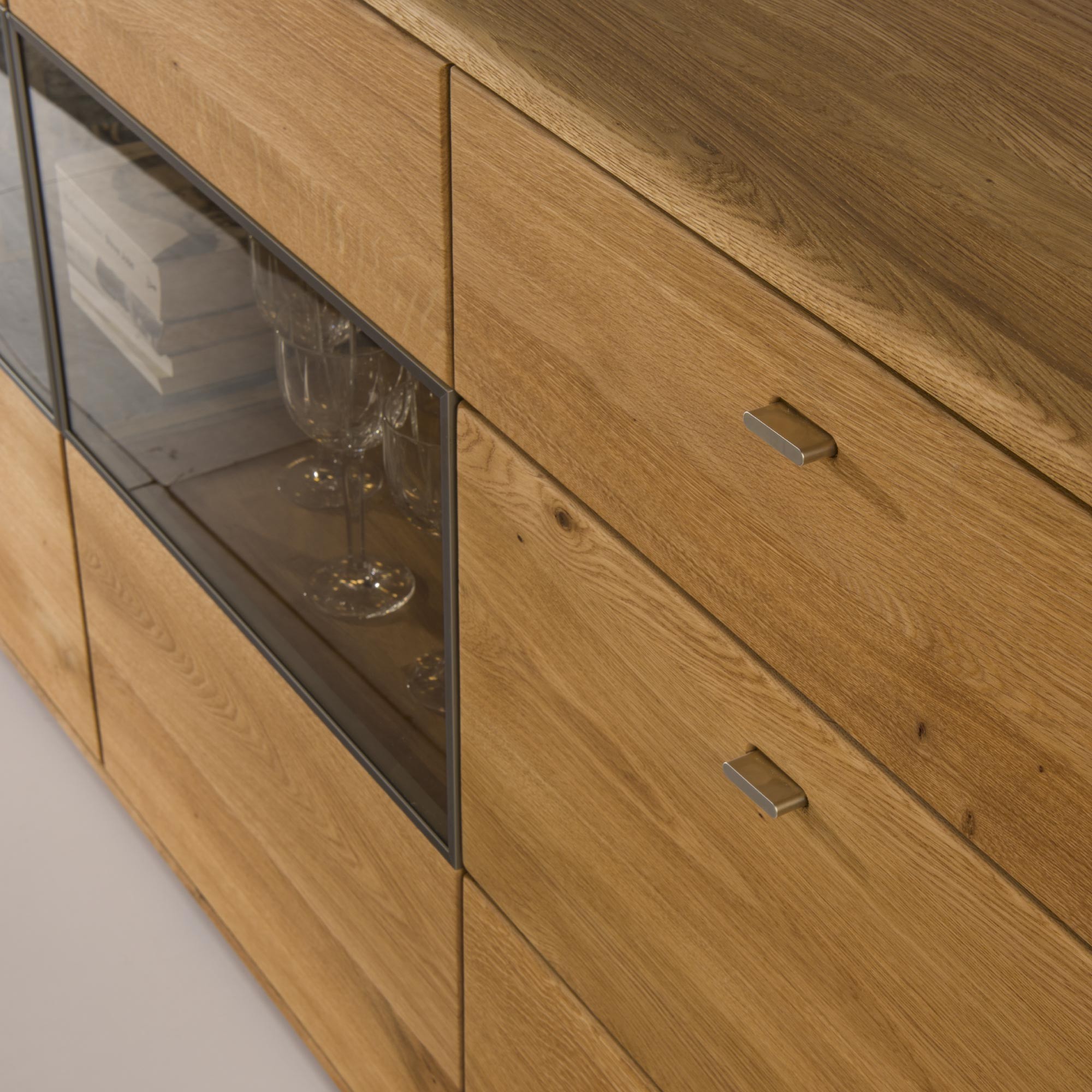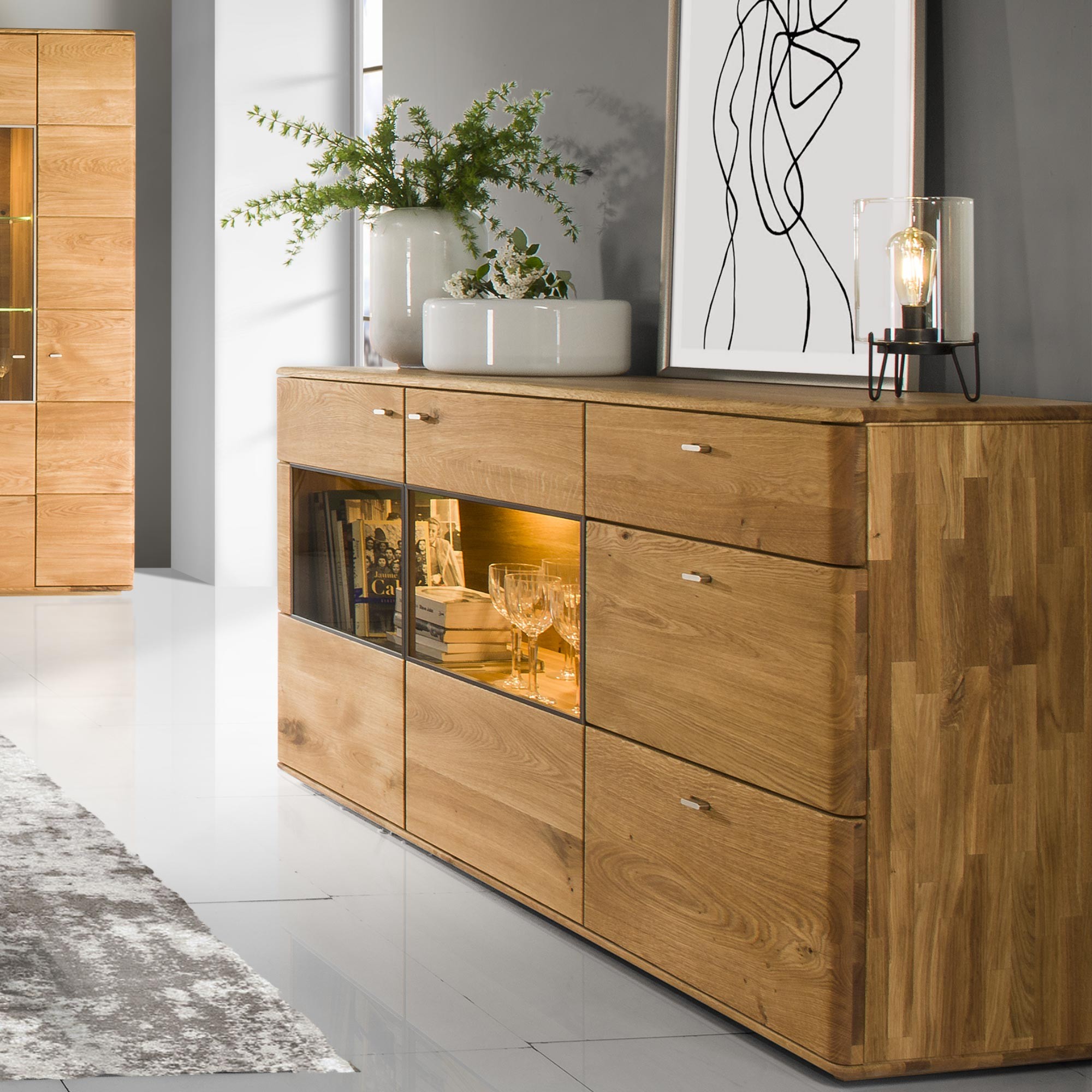 Massive Eichenkommode Texas mit Glas, 5-türig, 175 cm