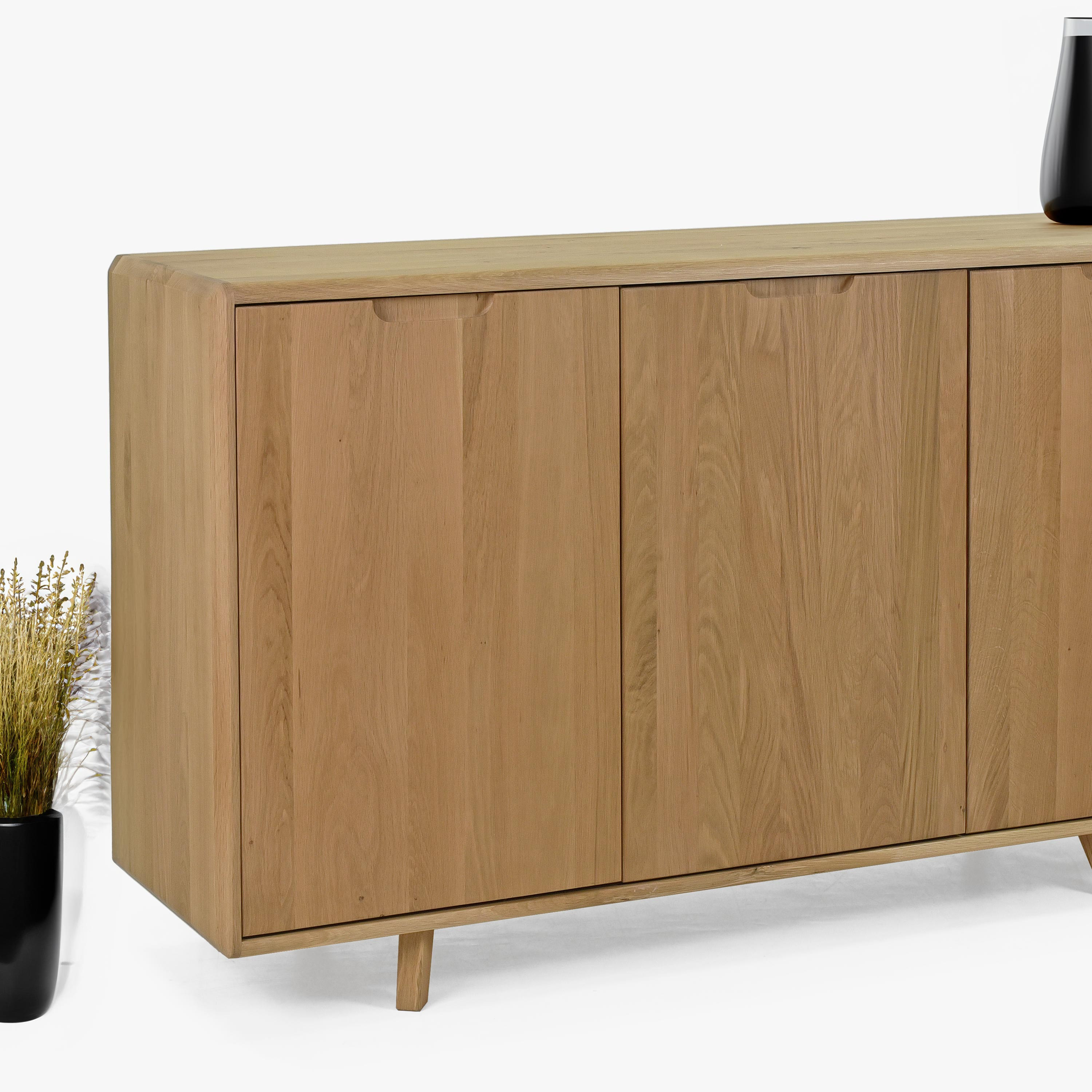 Neue Kollektion Eichenmöbel 2024: Entdecken Sie die Schönheit des modernen skandinavischen Designs in unserer exklusiven Kollektion, vorgestellt im Jahr 2024. Diese einzigartige Kollektion ist das Ergebnis der Verbindung minimalistischen Stils und der ausschließlichen Verwendung natürlicher Materialien. Jedes Möbelstück wird aus reinem Eichenholz gefertigt, einschließlich der Seiten, Innenkorpusse, Oberseiten sowie der Fronttüren und Schubladen. Der Fokus auf Detail und Qualität zeigt sich von den abgerundeten Kanten bis zur überdurchschnittlichen Stärke des äußeren Korpus von bis zu 2,5 cm, was eine hohe Widerstandsfähigkeit und lange Lebensdauer der Möbel garantiert.