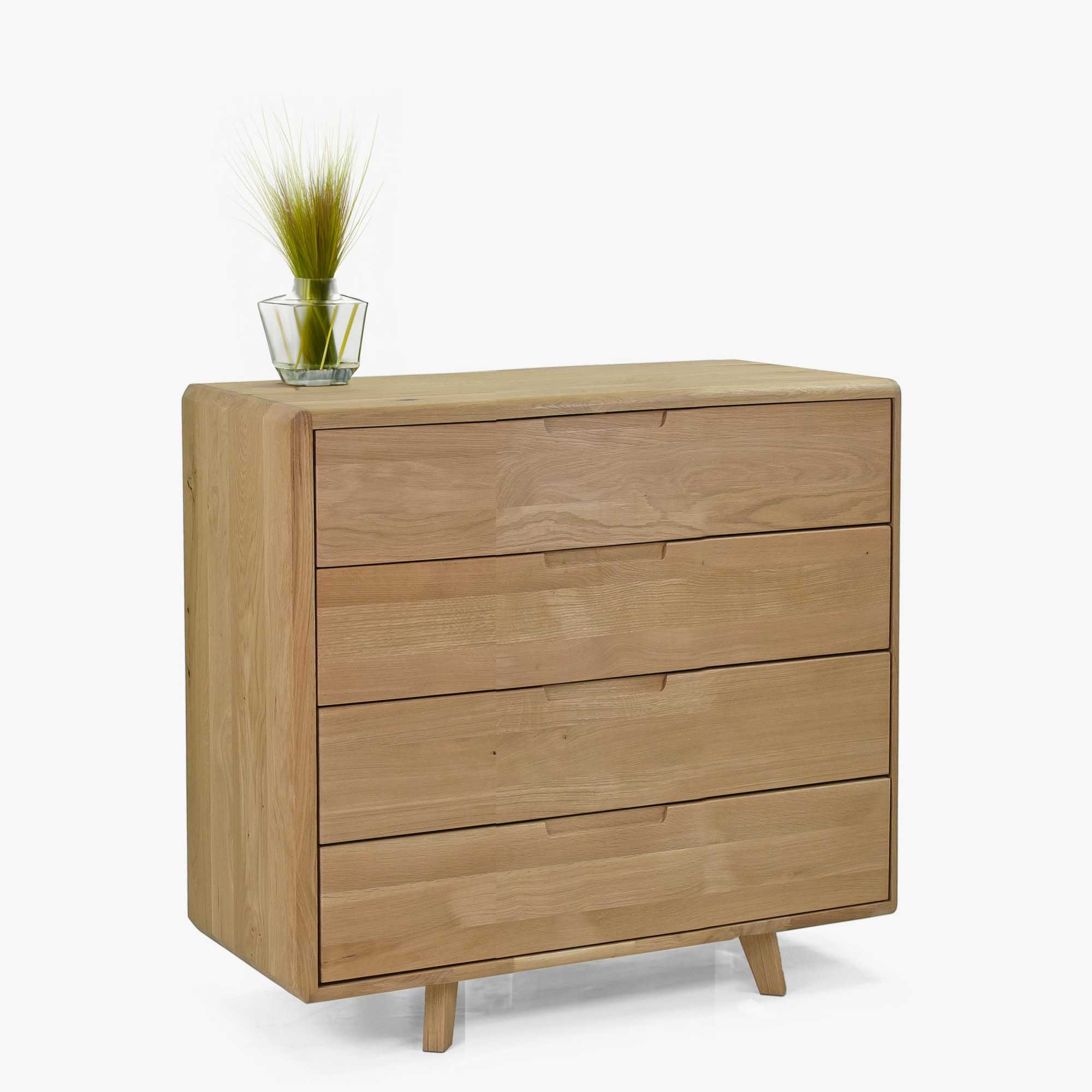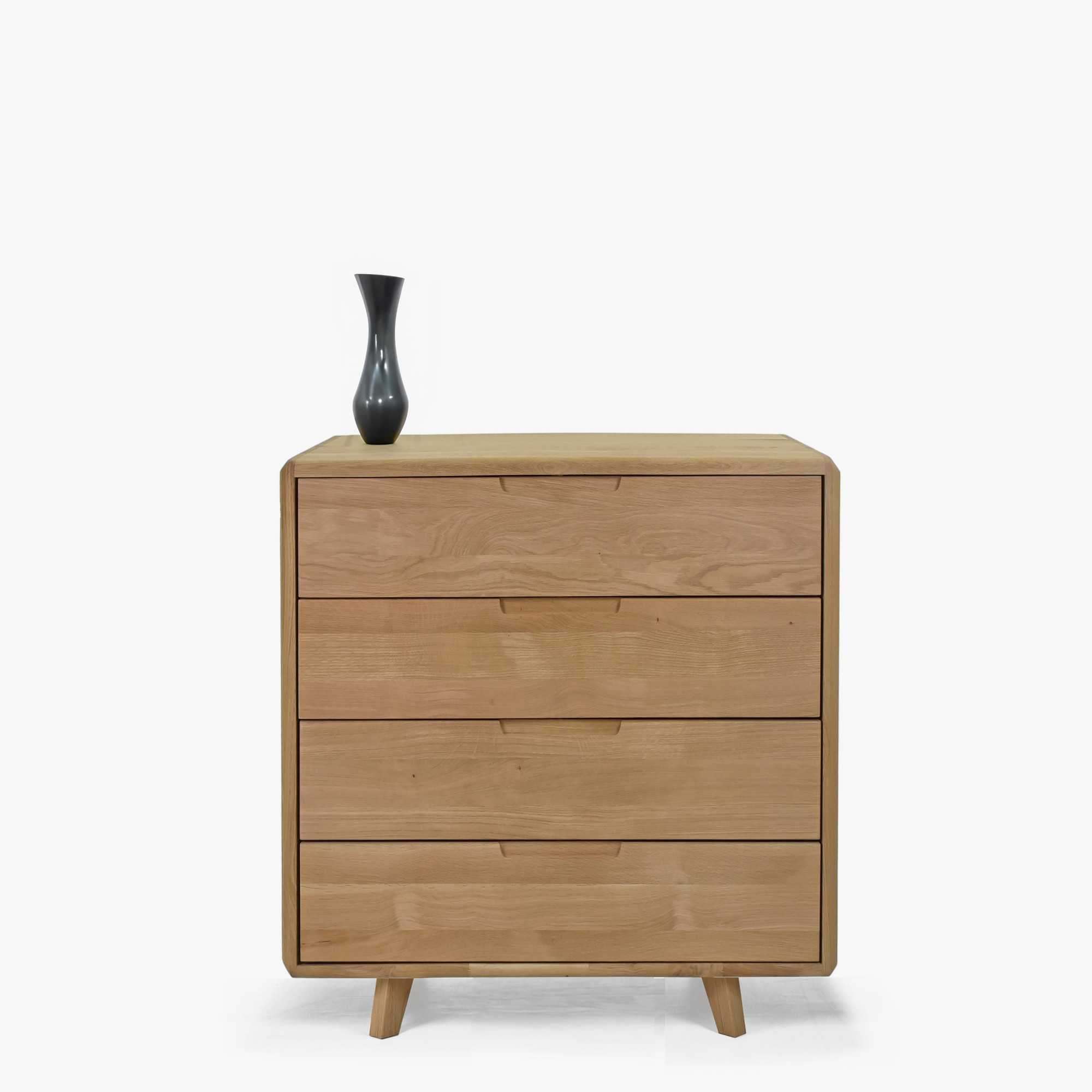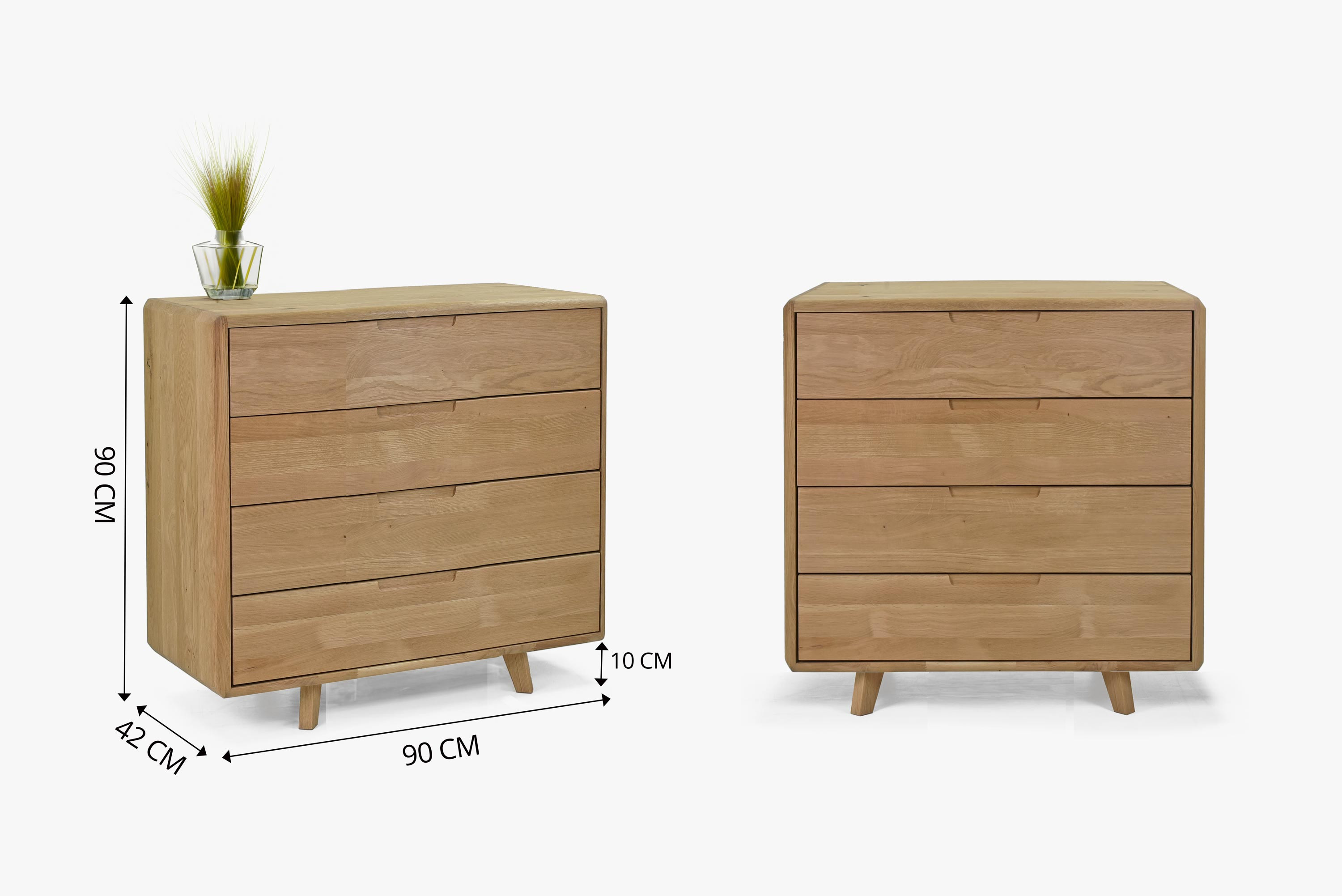 Auf den ersten Blick besticht die Kommode durch ihre vier Schubladenreihen, die reichlich Stauraum für Ihre Notwendigkeiten bieten. Jede Schublade ist mit einem Soft-Close-Mechanismus für ein leiseres und angenehmeres Öffnen ausgestattet. Mit einer Breite von 90 cm ist die Kommode die ideale Wahl für Schlafzimmermöbel, eignet sich aber auch für das Wohnzimmer oder den Flur.