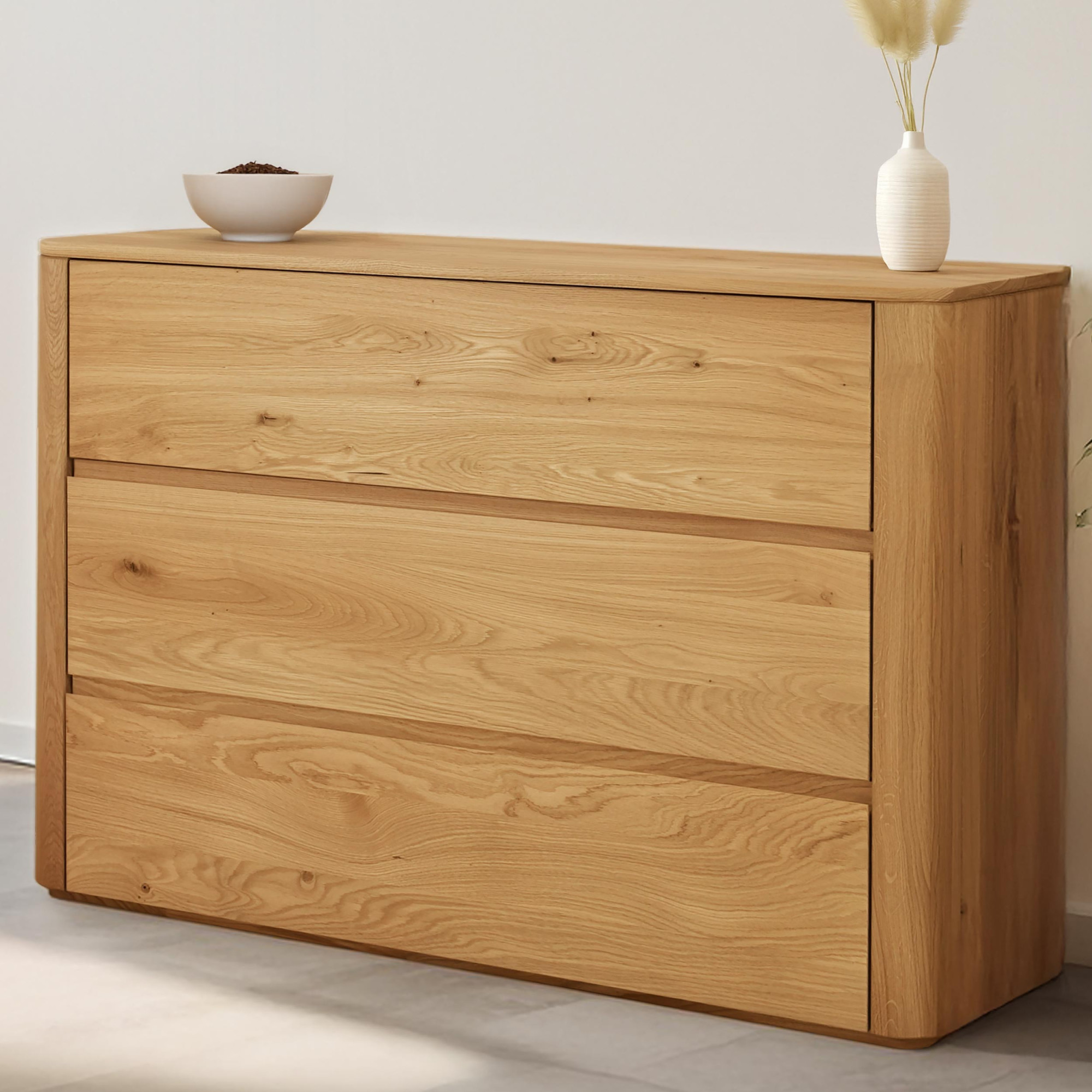 Eichenkommode 120 cm breit mit Schubladen naturholz