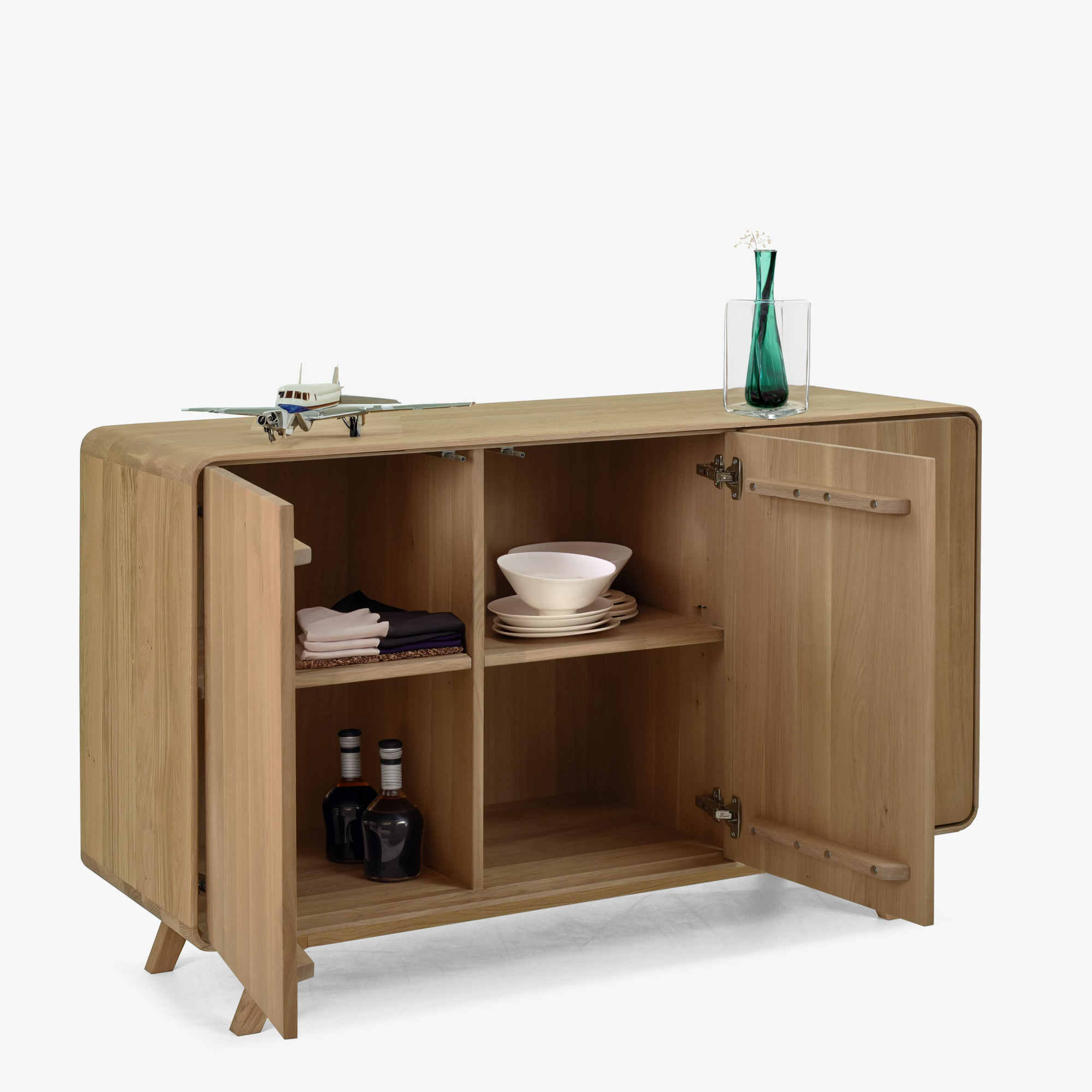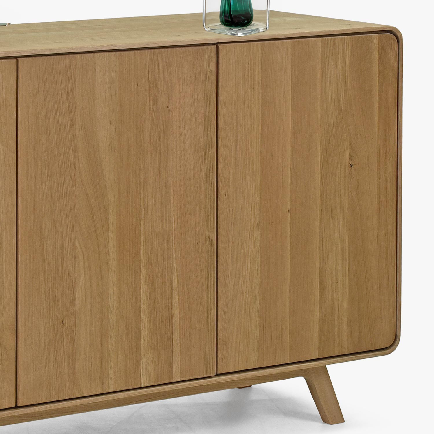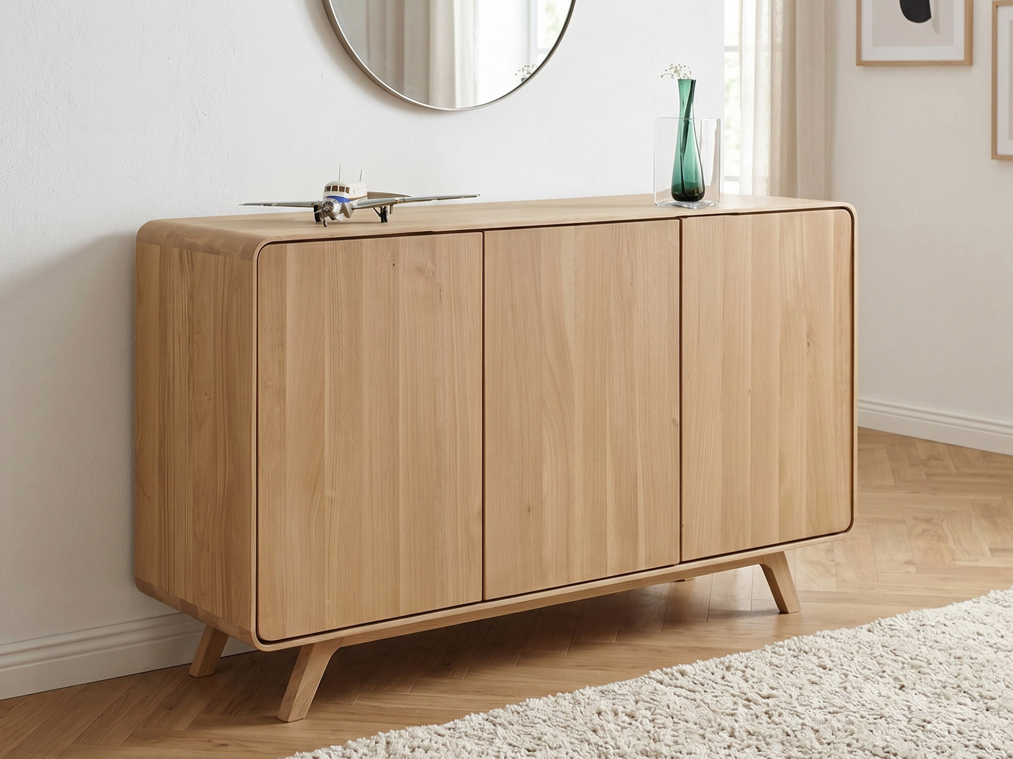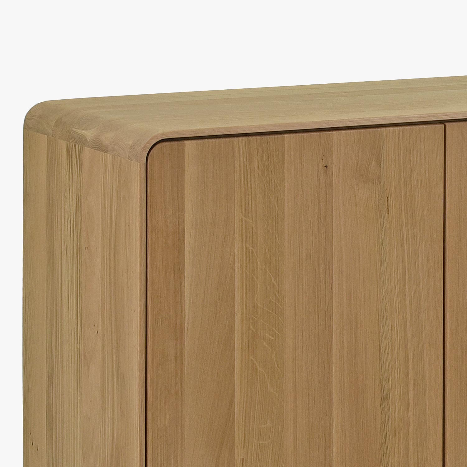 Neue Eichenmöbel-Kollektion 2024: Erleben Sie den Zauber modernen skandinavischen Designs mit unserer exklusiven Reihe, die 2024 auf den Markt gebracht wurde. Diese einzigartige Kollektion verbindet minimalistische Ästhetik mit der Auswahl ausschließlich natürlicher Materialien. Jedes Stück ist sorgfältig aus Eichenholz gefertigt, einschließlich Seitenwände, innere Rahmen, Oberplatten, Türen und Schubladen. Die Verpflichtung zu Detail und Qualität zeigt sich in jedem Schritt, von sanft abgerundeten Ecken bis hin zur überdurchschnittlichen Stärke der Außenflächen von bis zu 2,5 cm, was zu außergewöhnlicher Robustheit und Langlebigkeit unserer Möbel beiträgt. Besonderes Augenmerk gilt den abgerundeten Ecken, die dem Möbelstück einen Hauch von Luxus verleihen.